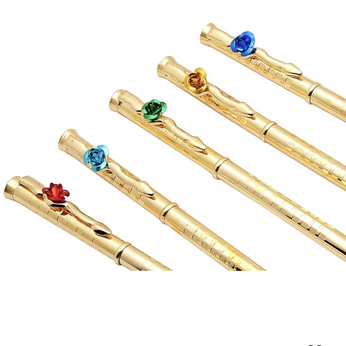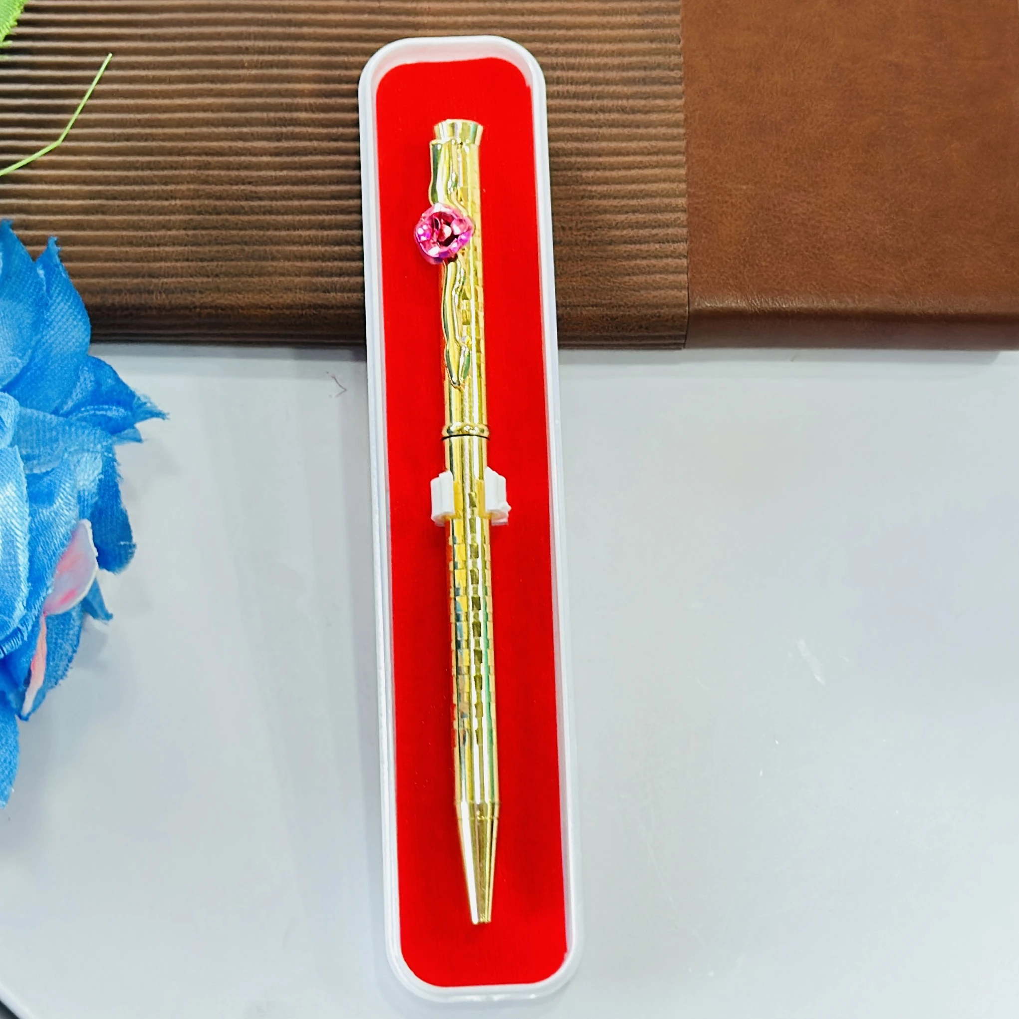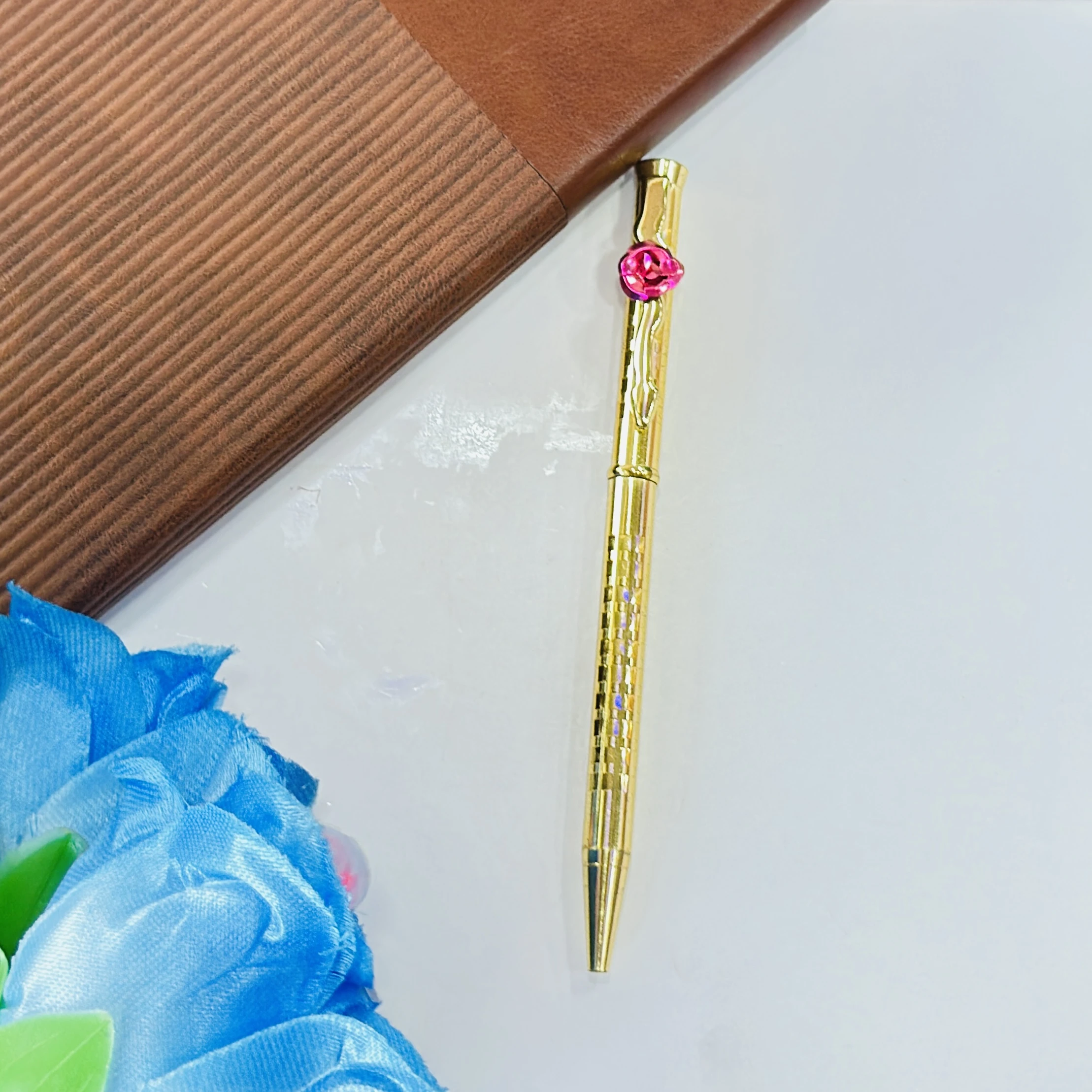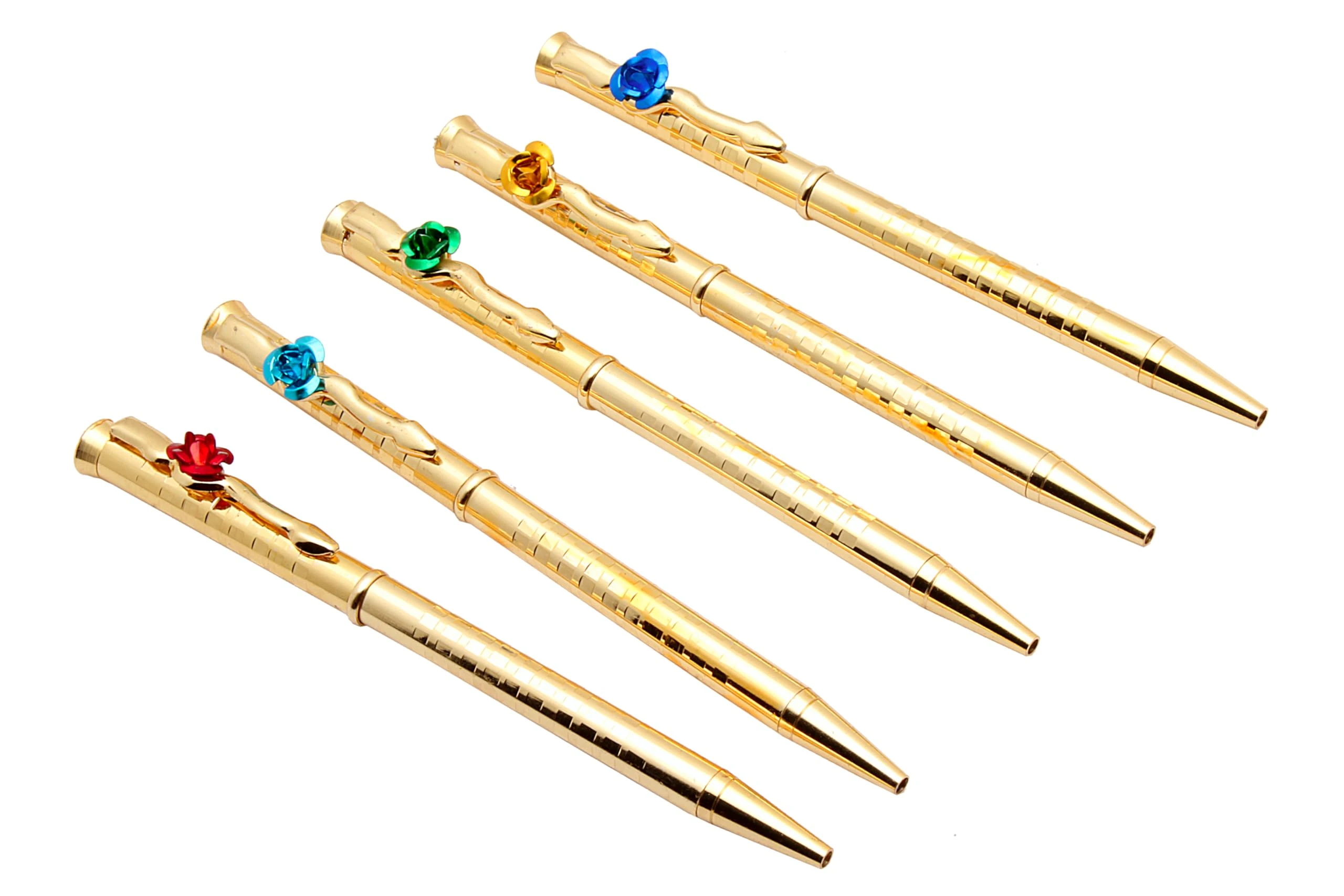 👉 Theme :- Rose On Clip Ballpoint Pens Golden Sleek Metal Body Blue Refill