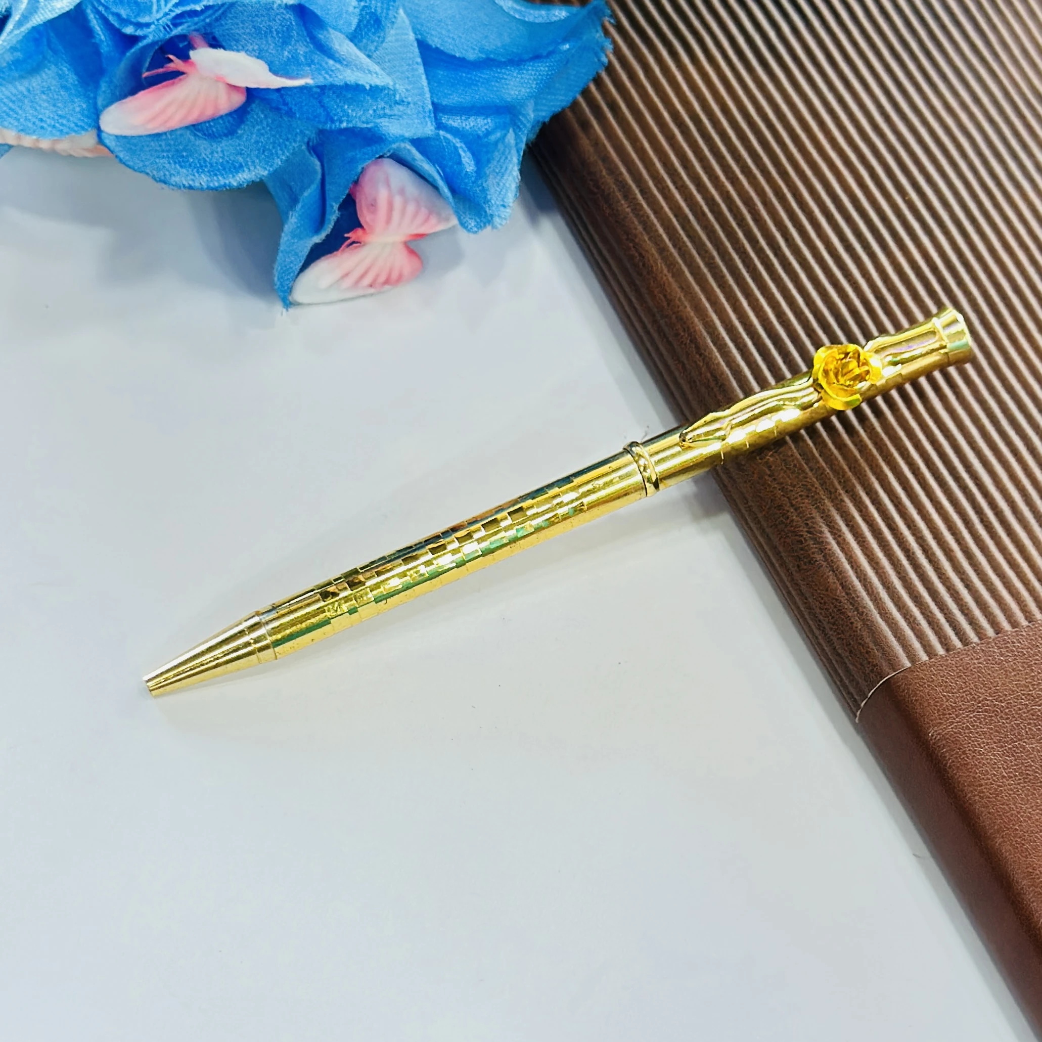 👉 Theme :- Rose On Clip Ballpoint Pens Golden Sleek Metal Body Blue Refill