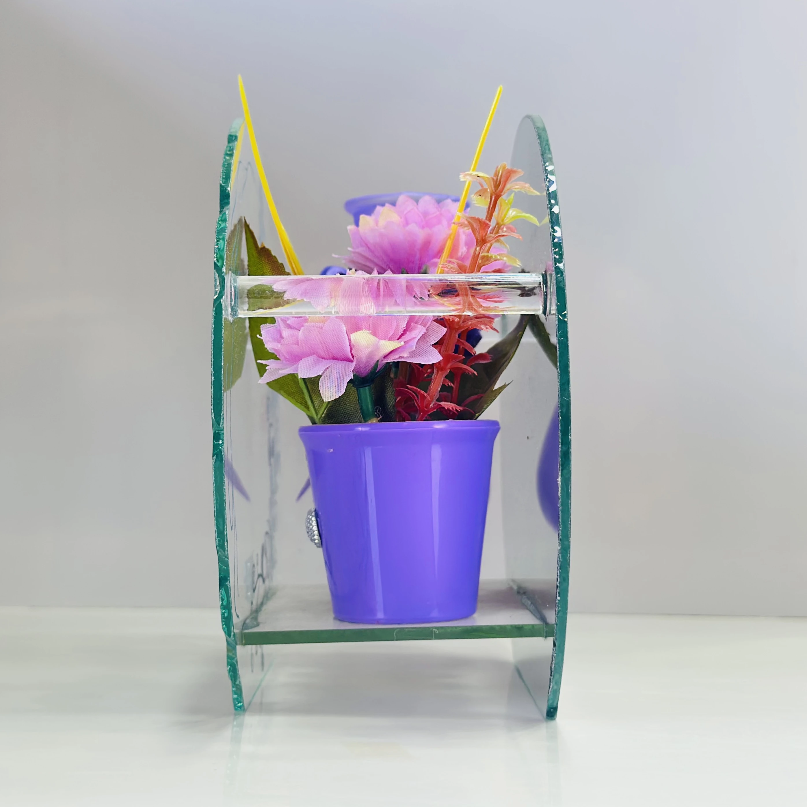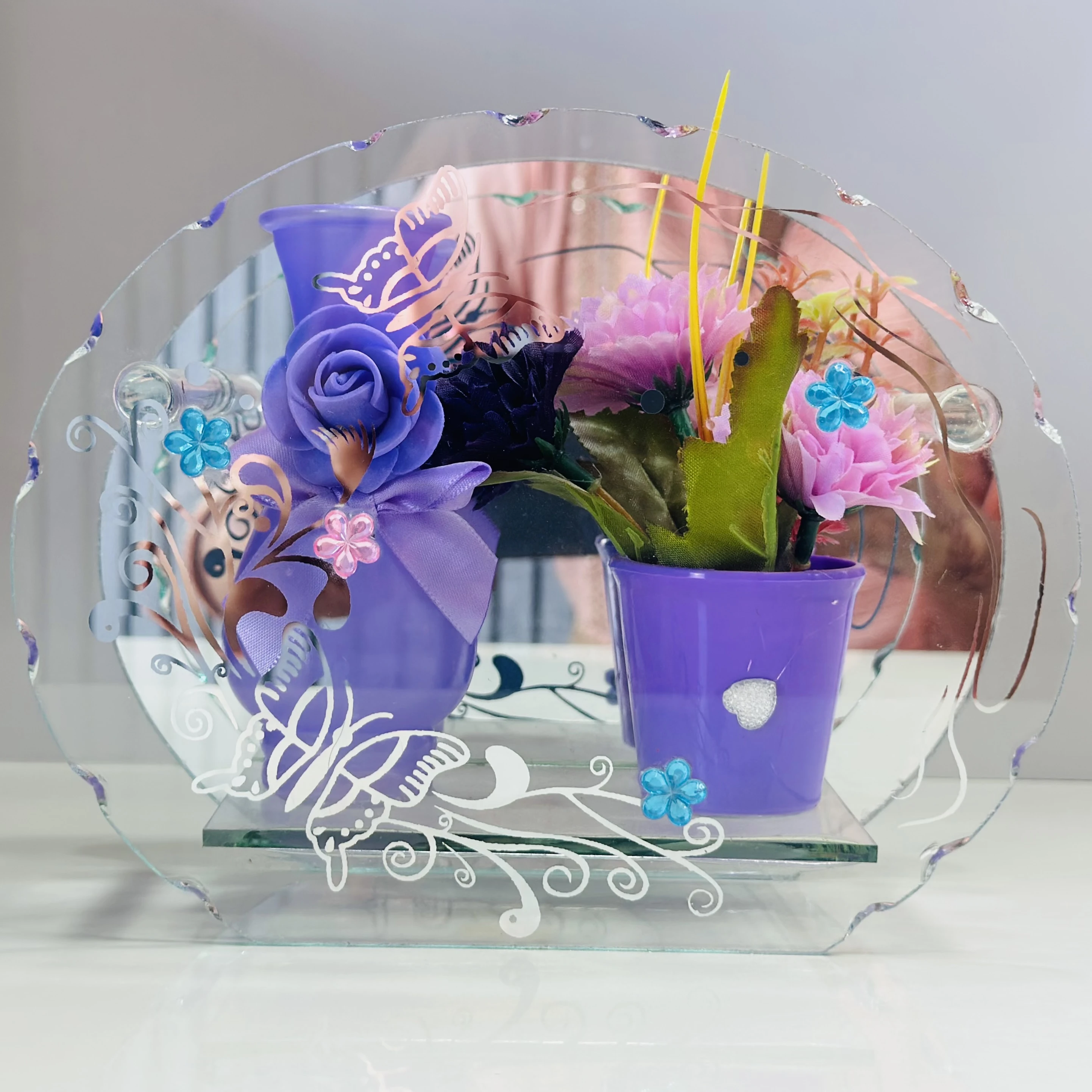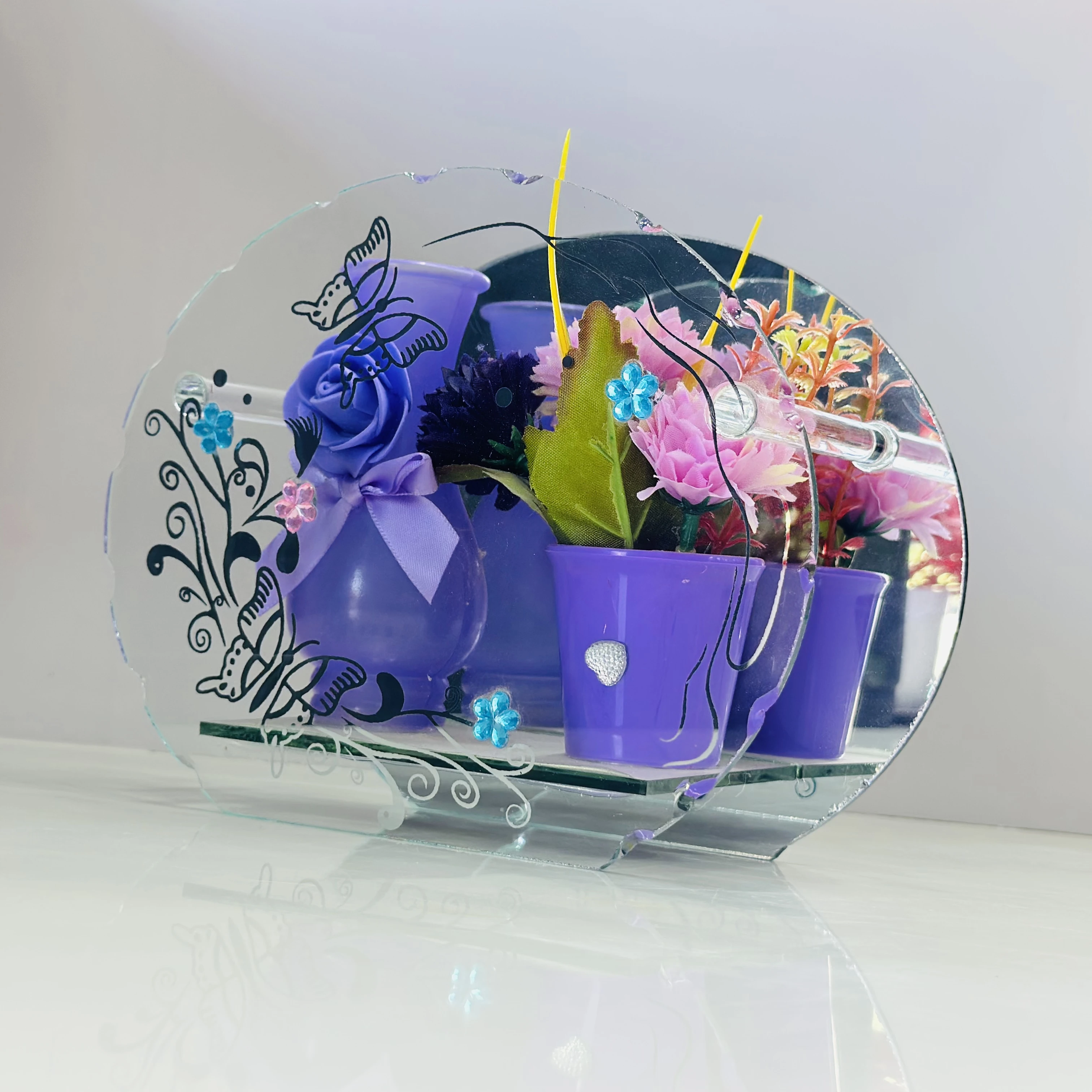 👉 Theme :- decorative glass showpiece with a reflective mirror.