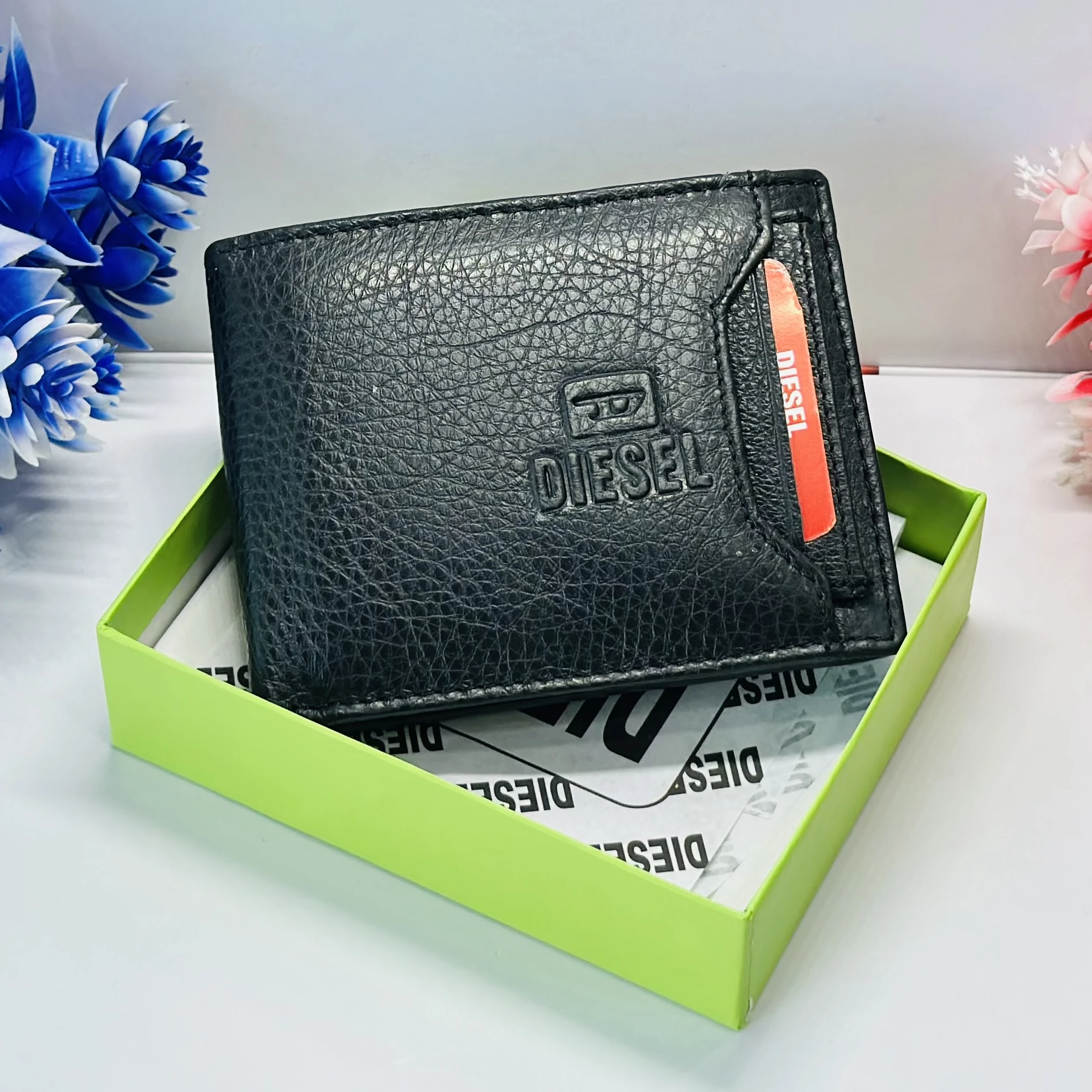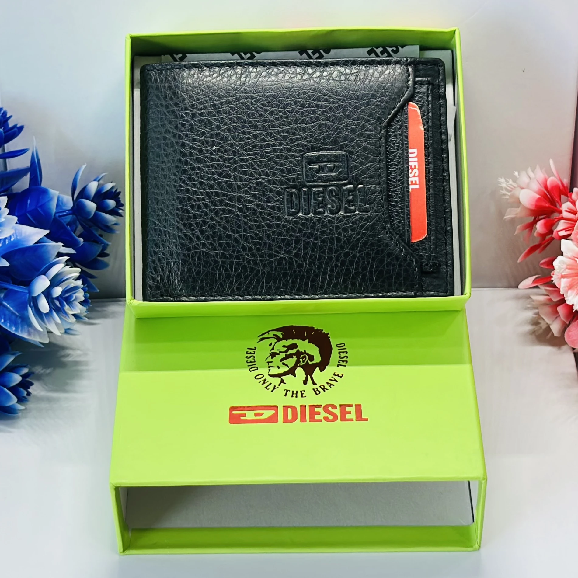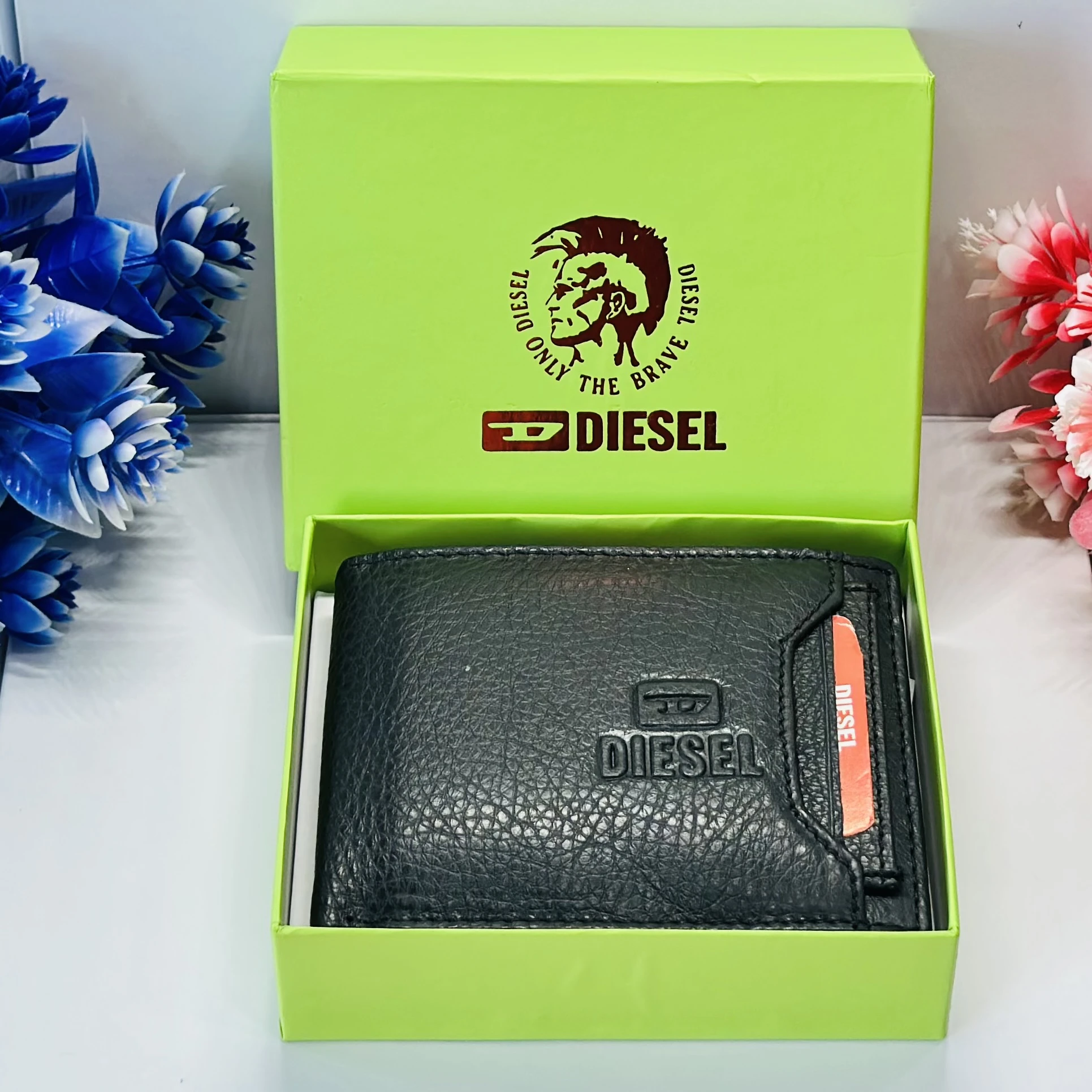 👉 Theme :- Diesel bi-fold wallet in black grainy leather.