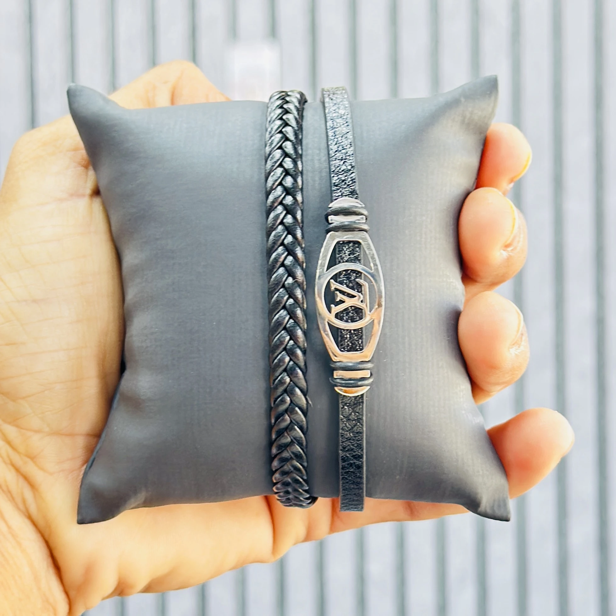 men's braided leather bracelet featuring a Nike branded metallic element.