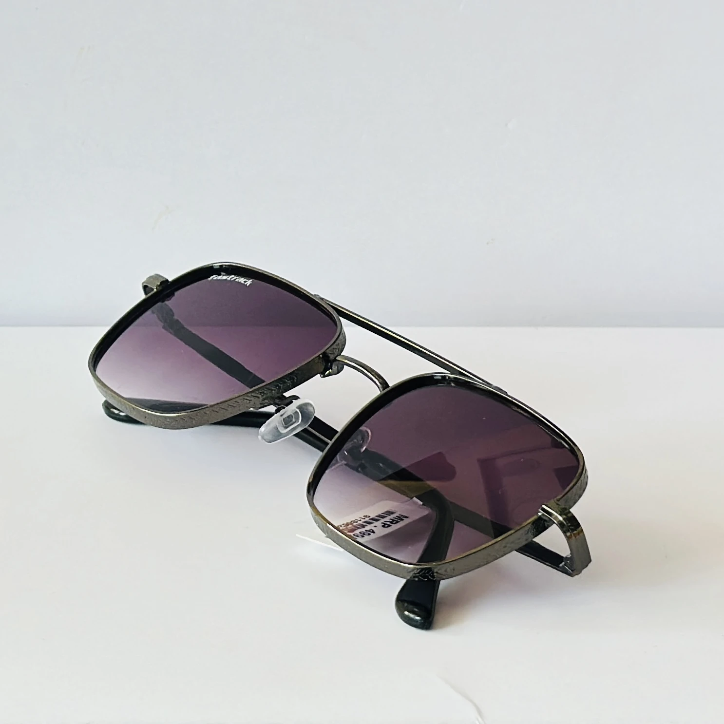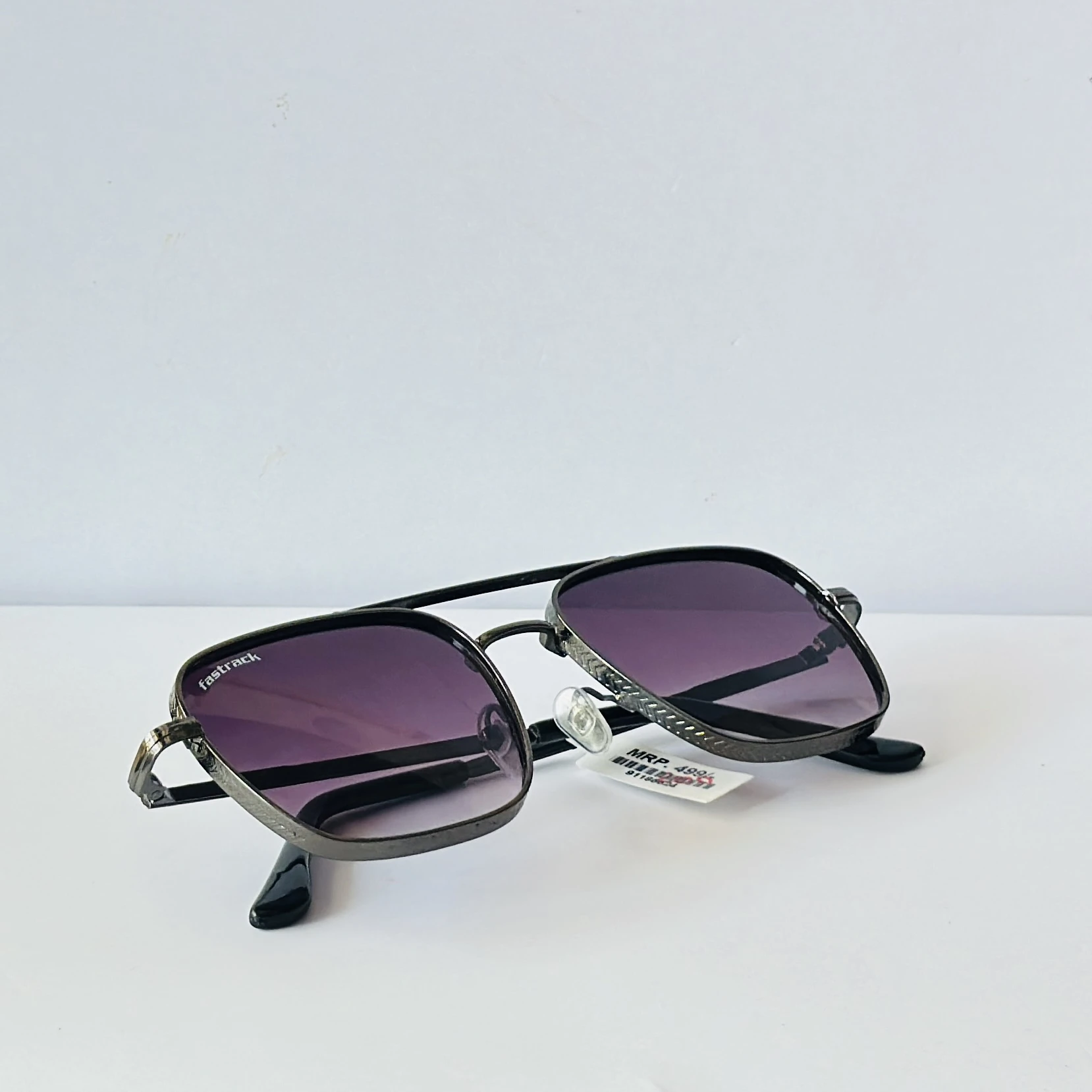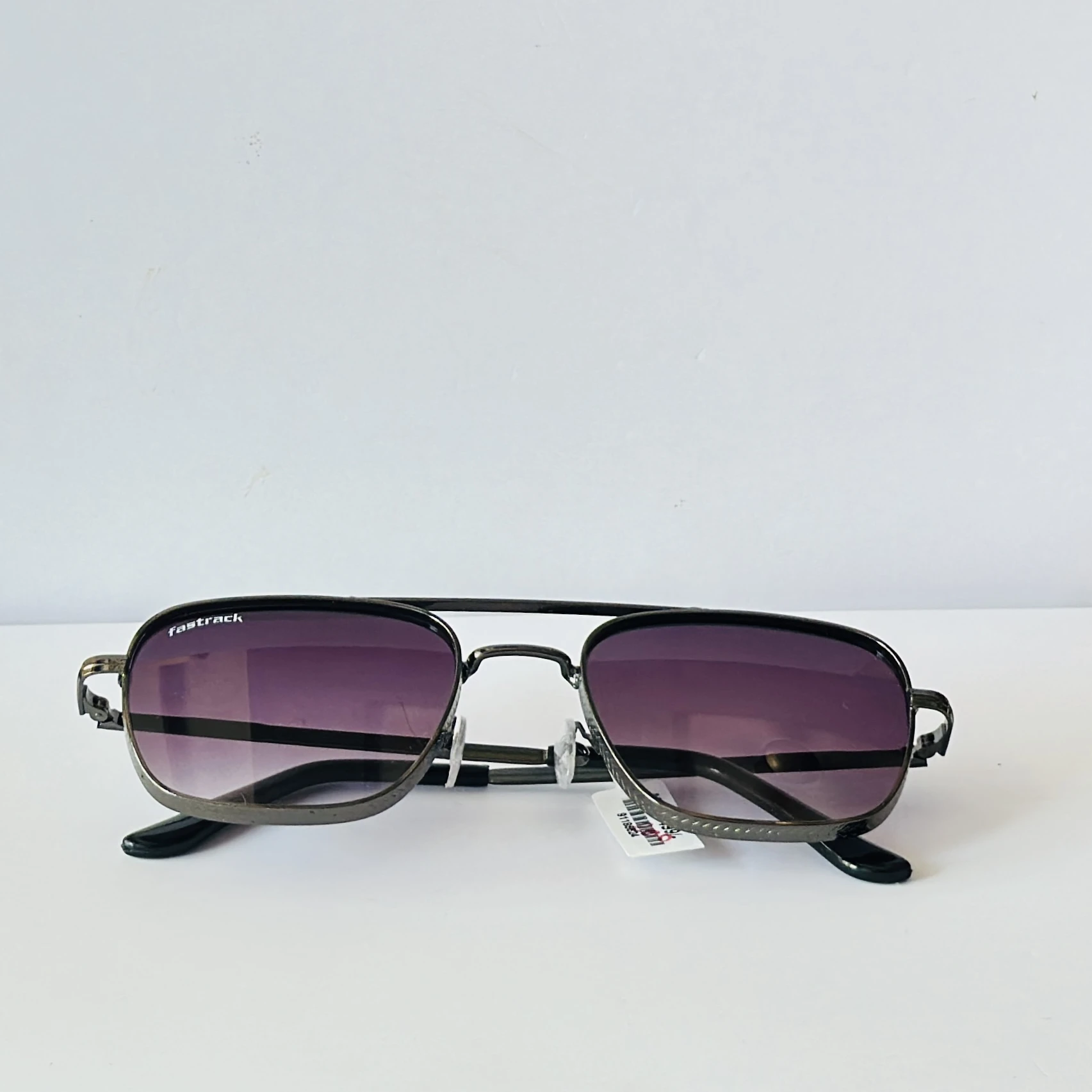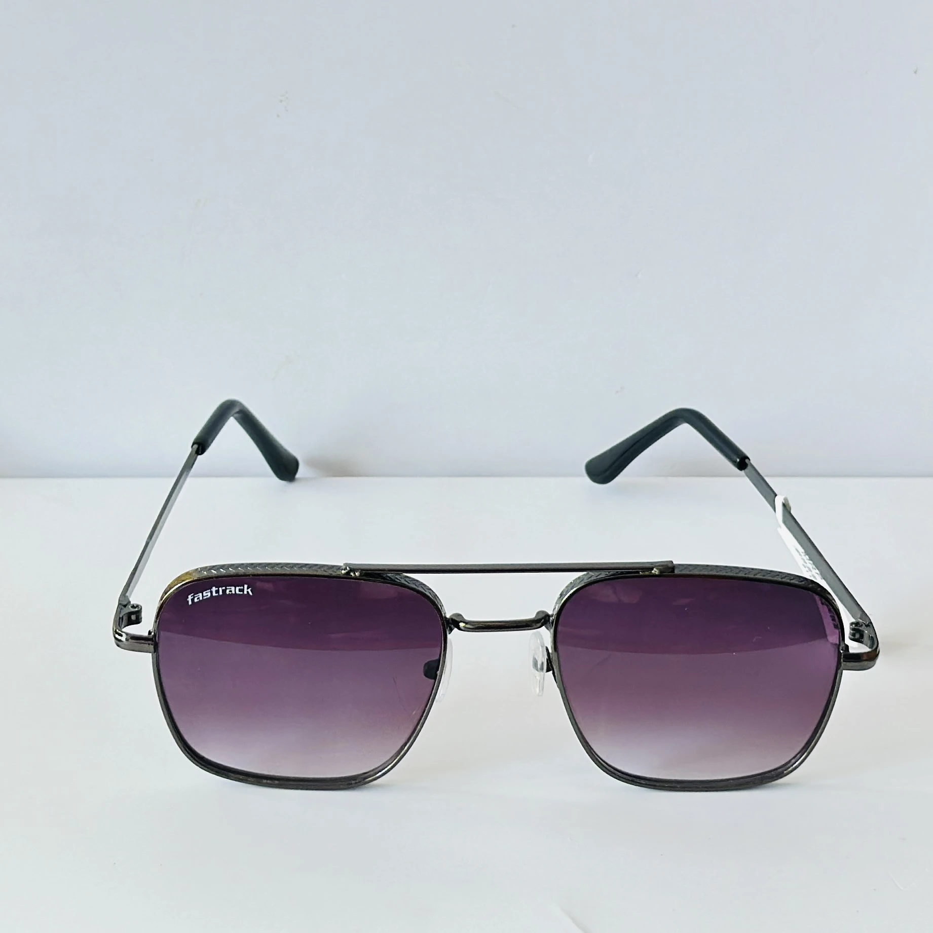 👉 Theme :- Fastrack branded sunglasses featuring a metal full-rim aviator-style frame and gradient violet lenses.