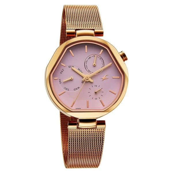 👉Theme : Fastrack Tick Tock Quartz Multifunction Pink Dial Stainless Steel Strap Watch For Girls