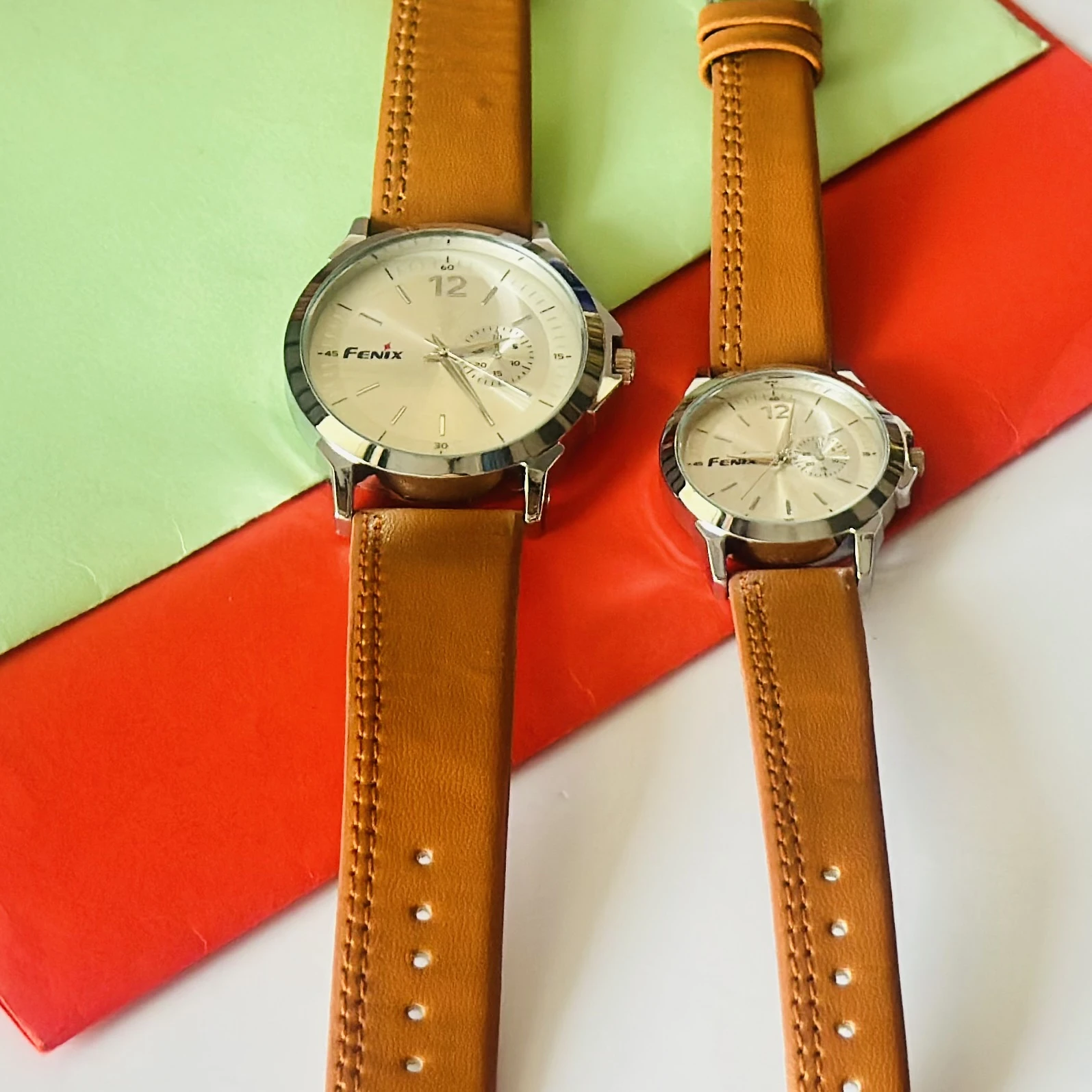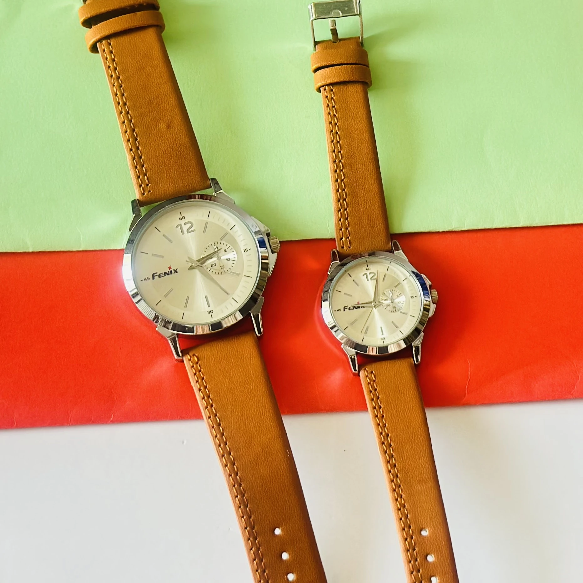 👉 Theme :- Fenix analog quartz wrist watches with brown leather straps.