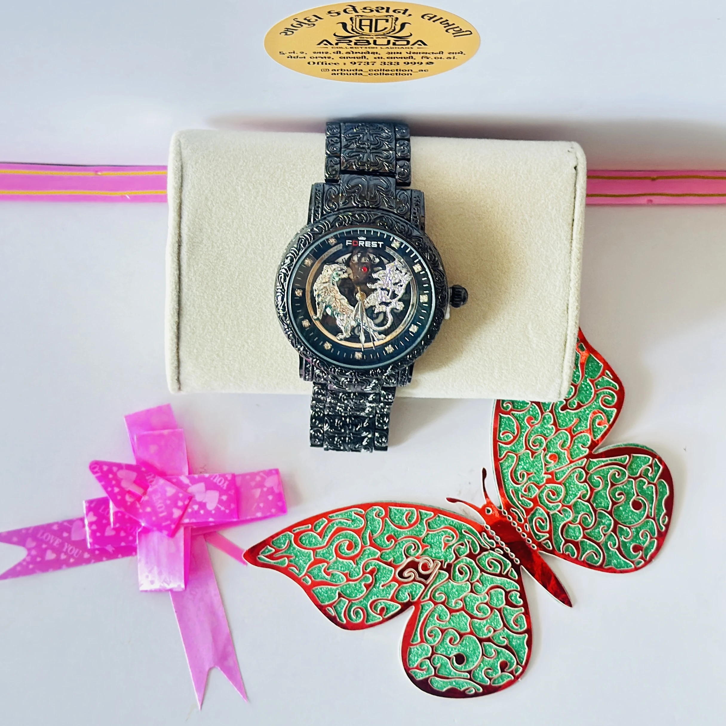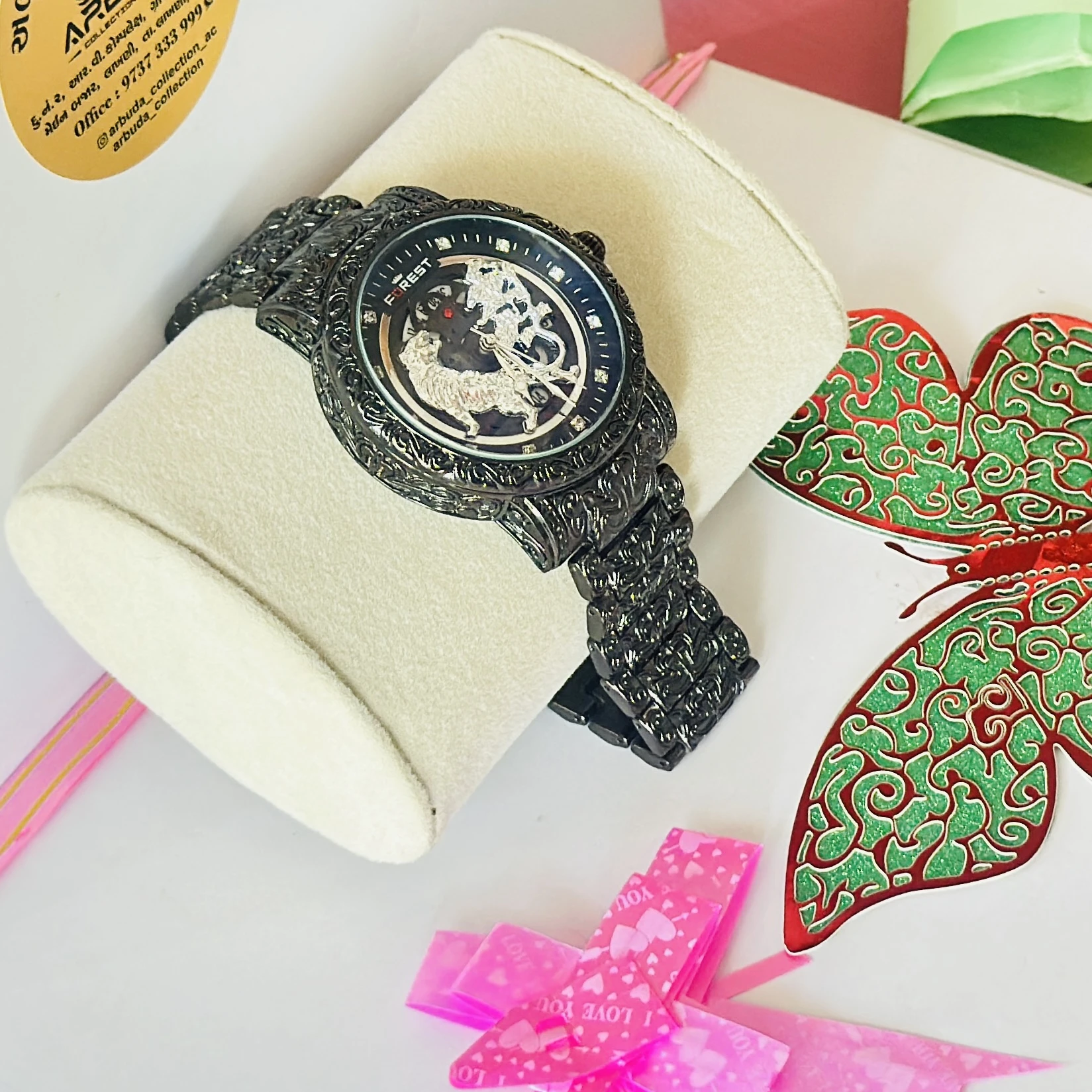 👉 Theme :- Forest Luxury Lion Curved Dial Bracelet Unisex Wrist Watch.