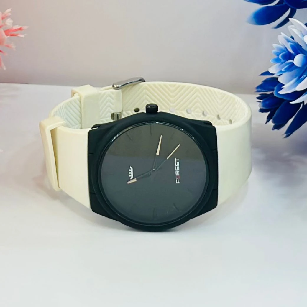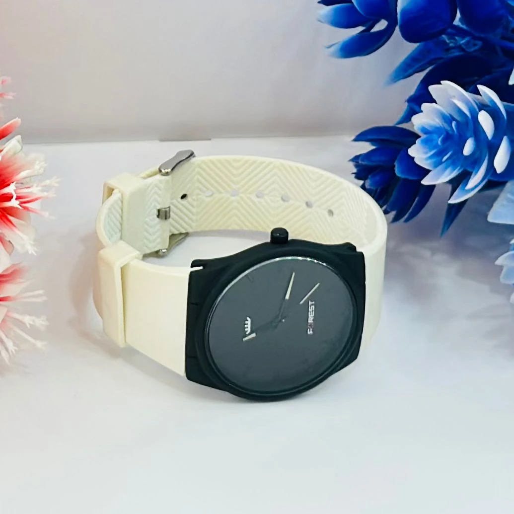 👉 Theme :- Forest Men's All-White Analog Watch Round Dial