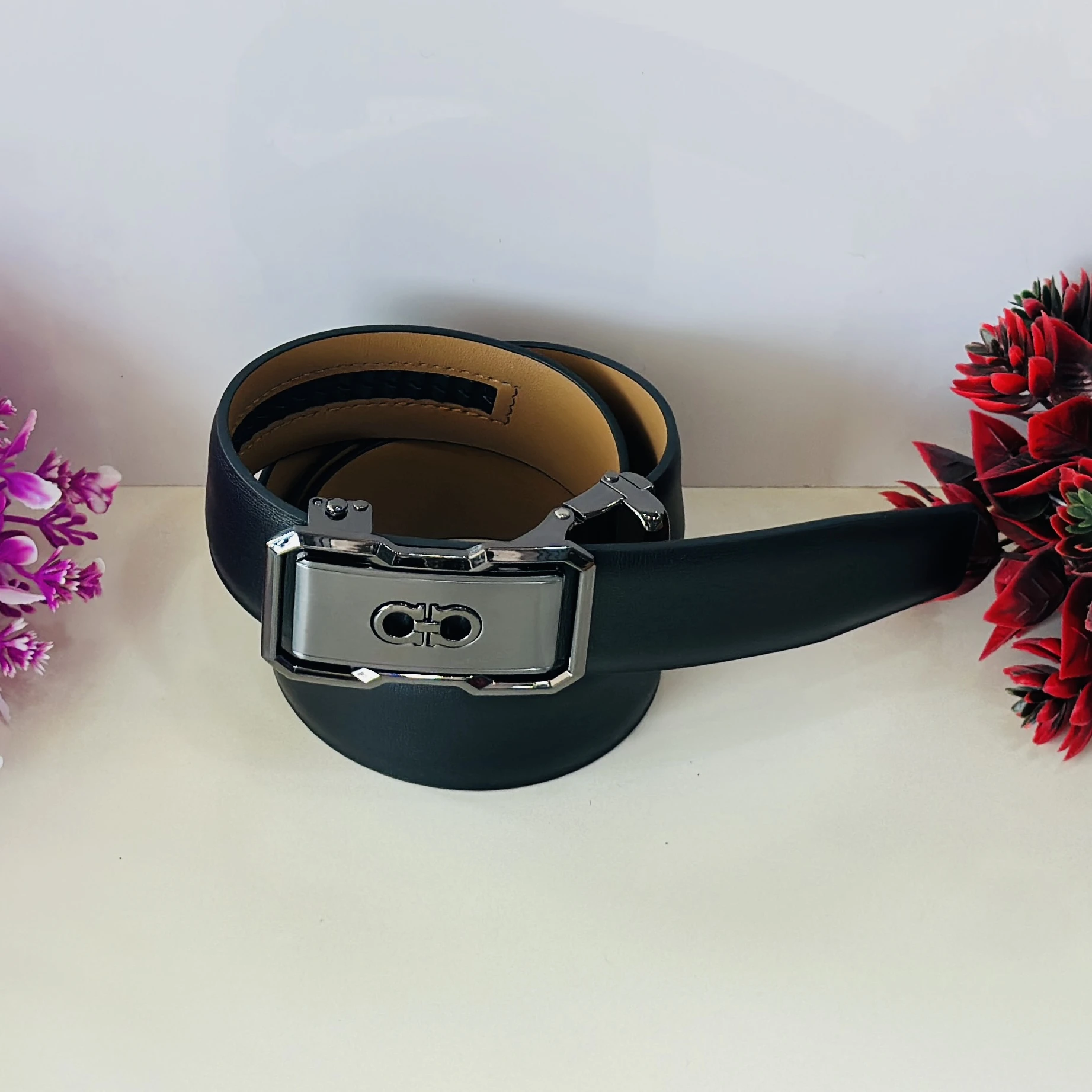 👉 Theme :- Gancini belt in black calfskin leather