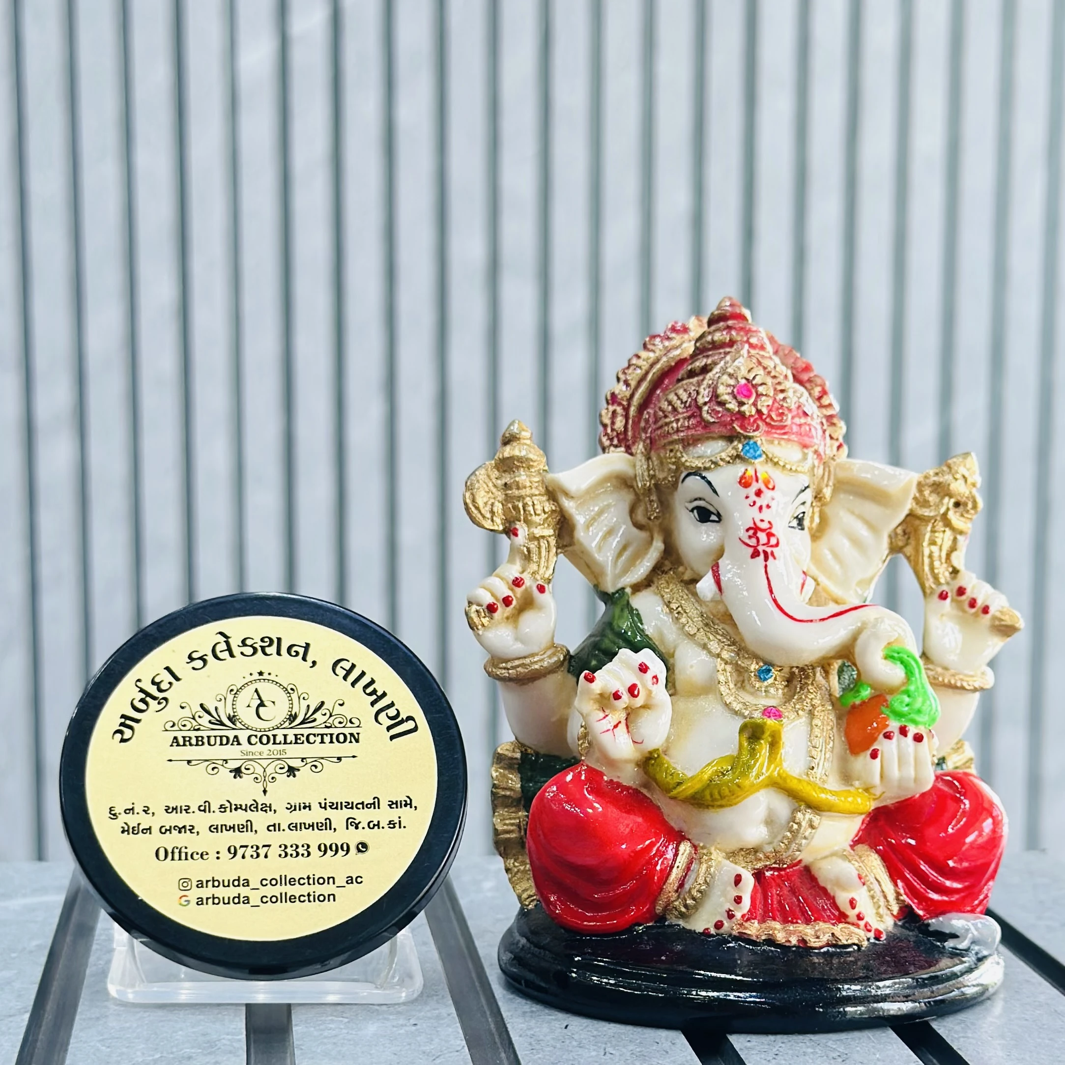 *✅ ARBUDA COLLECTION ✅* *✅9737333999✅* Theme :- Ganpati bapa murti Brand :- arbuda collection lakhani Colour:- mixed Style:- traditional Material:- imported cality Dimensions :- 4 hight, 2 width Uses :- office desk,mandir, pooja Room… Cleaning:- wipe clean with a dry cloth Origin:- made in India by local artists Other words:- limited addition…