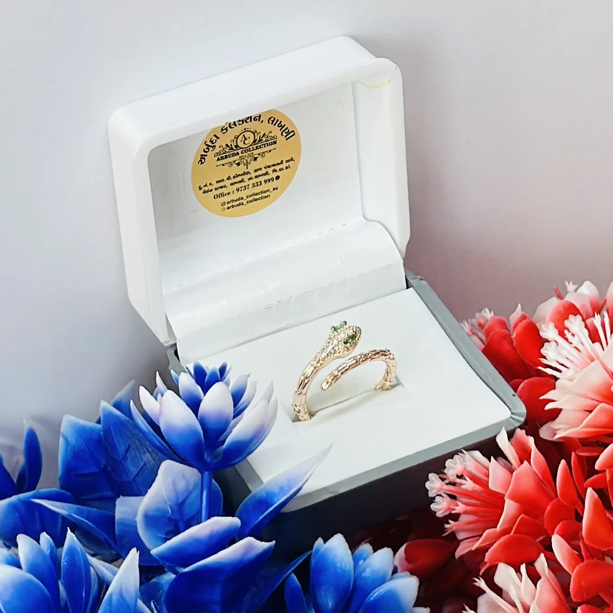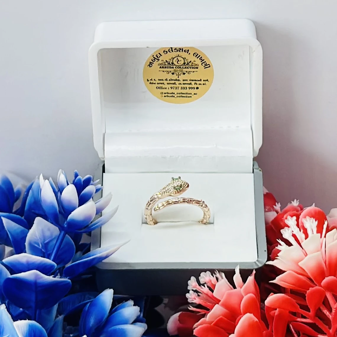 👉 Theme :-Gold and diamond snake-design ring
