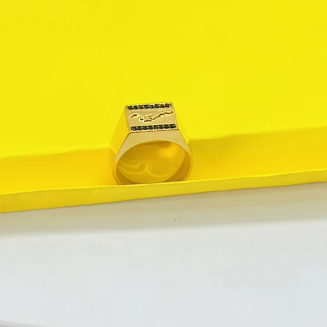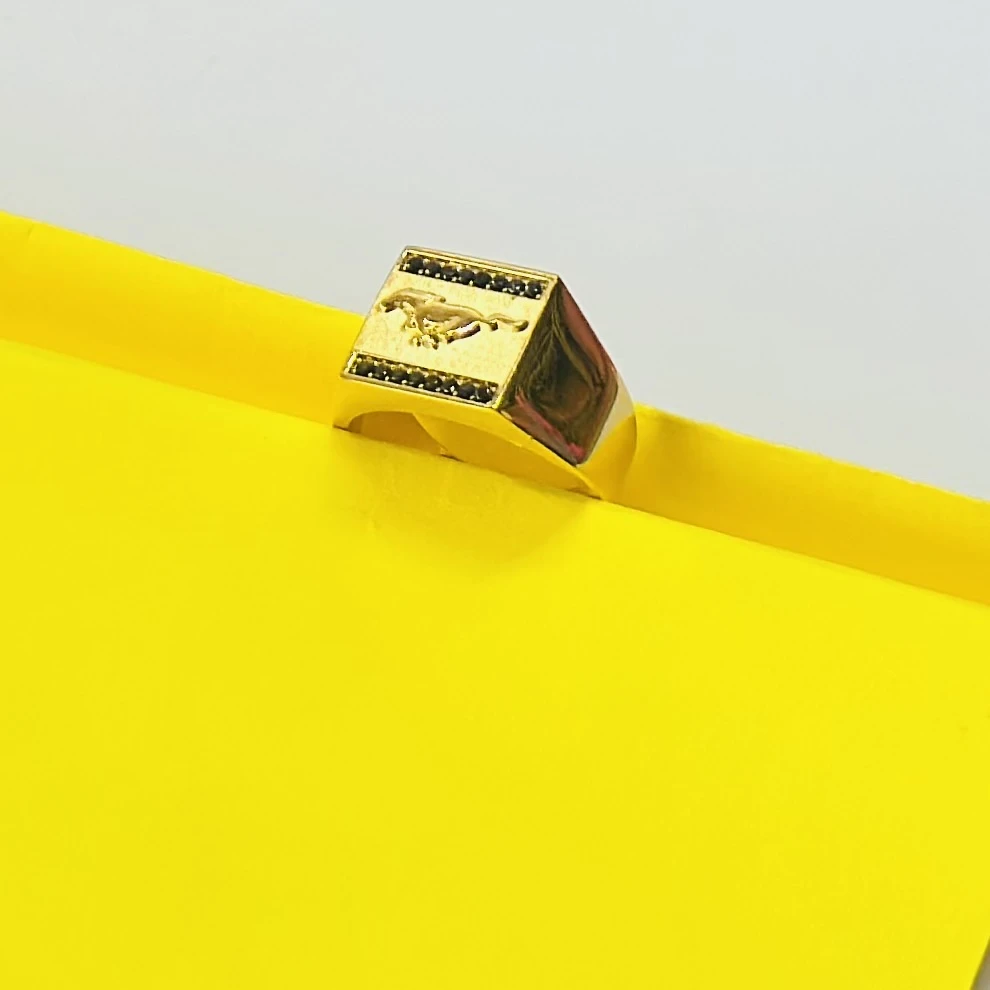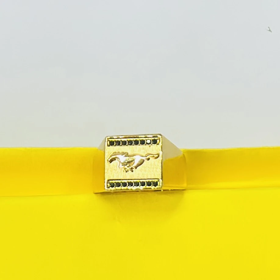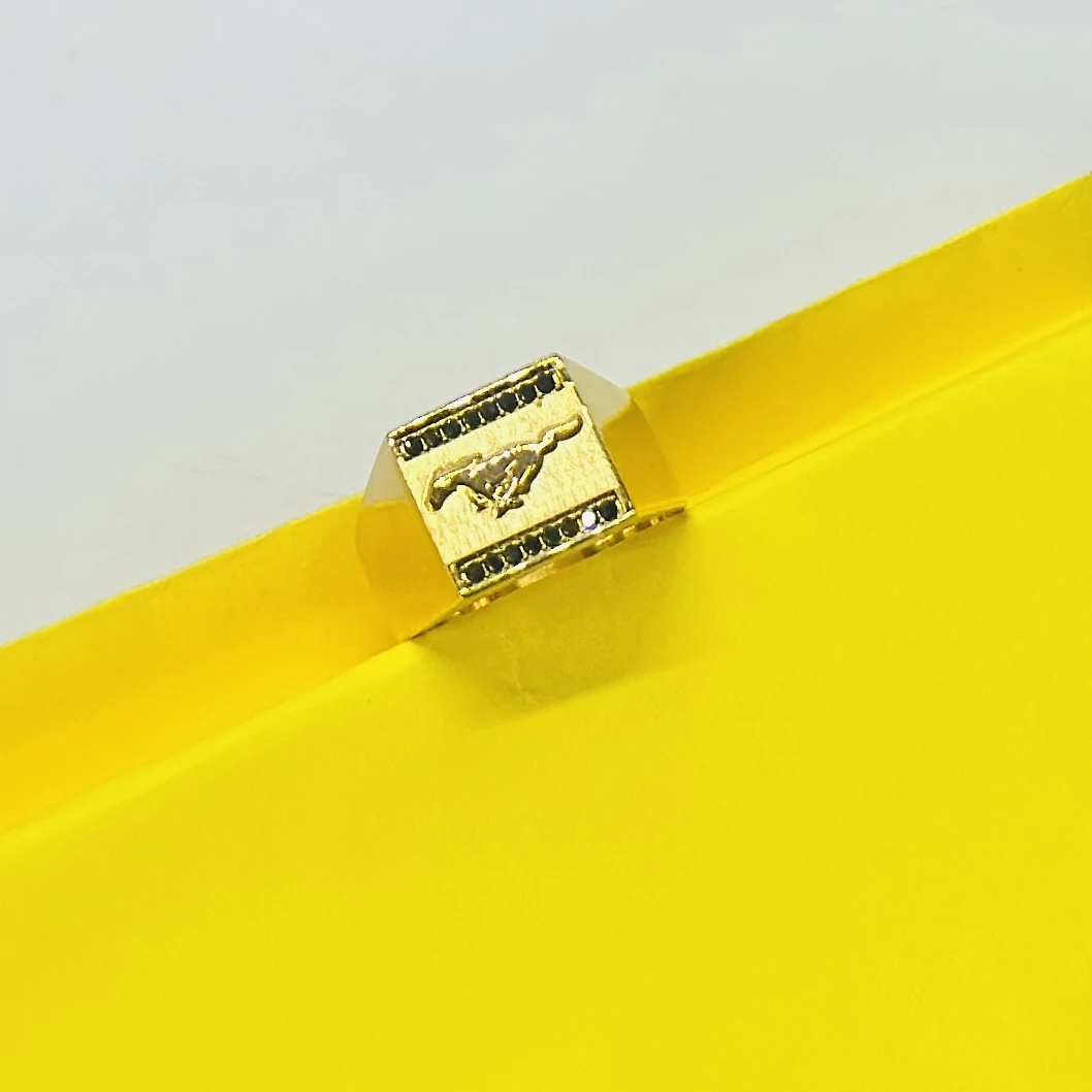 👉 Theme :- Gold plated men's ring featuring the Mercedes-Benz logo and black accent stones