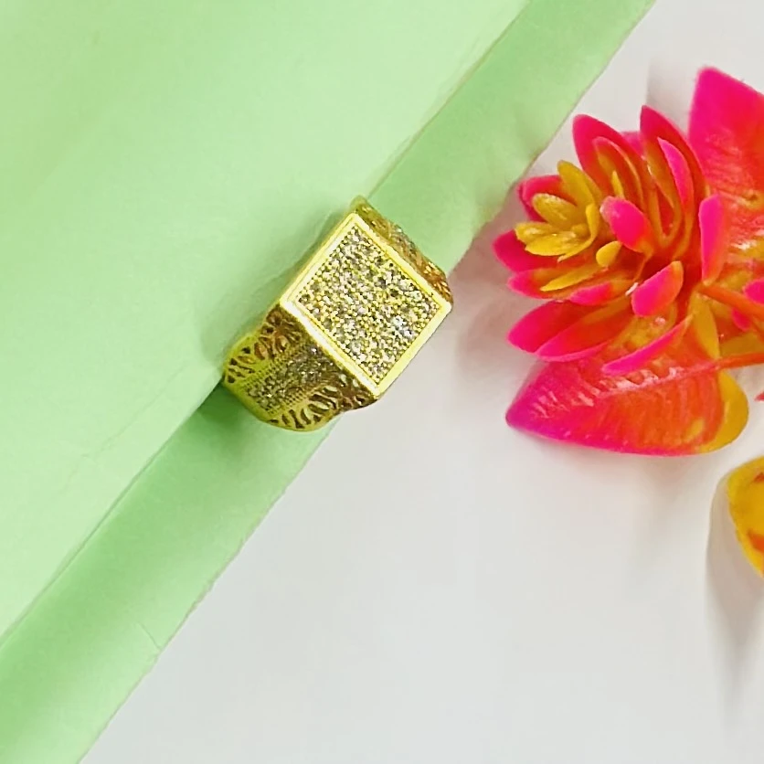 👉 Theme :- Gold plated brass ring with American diamonds.