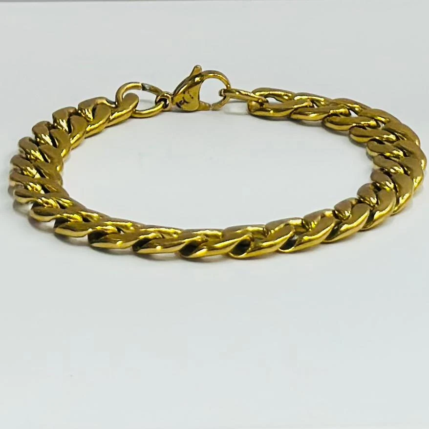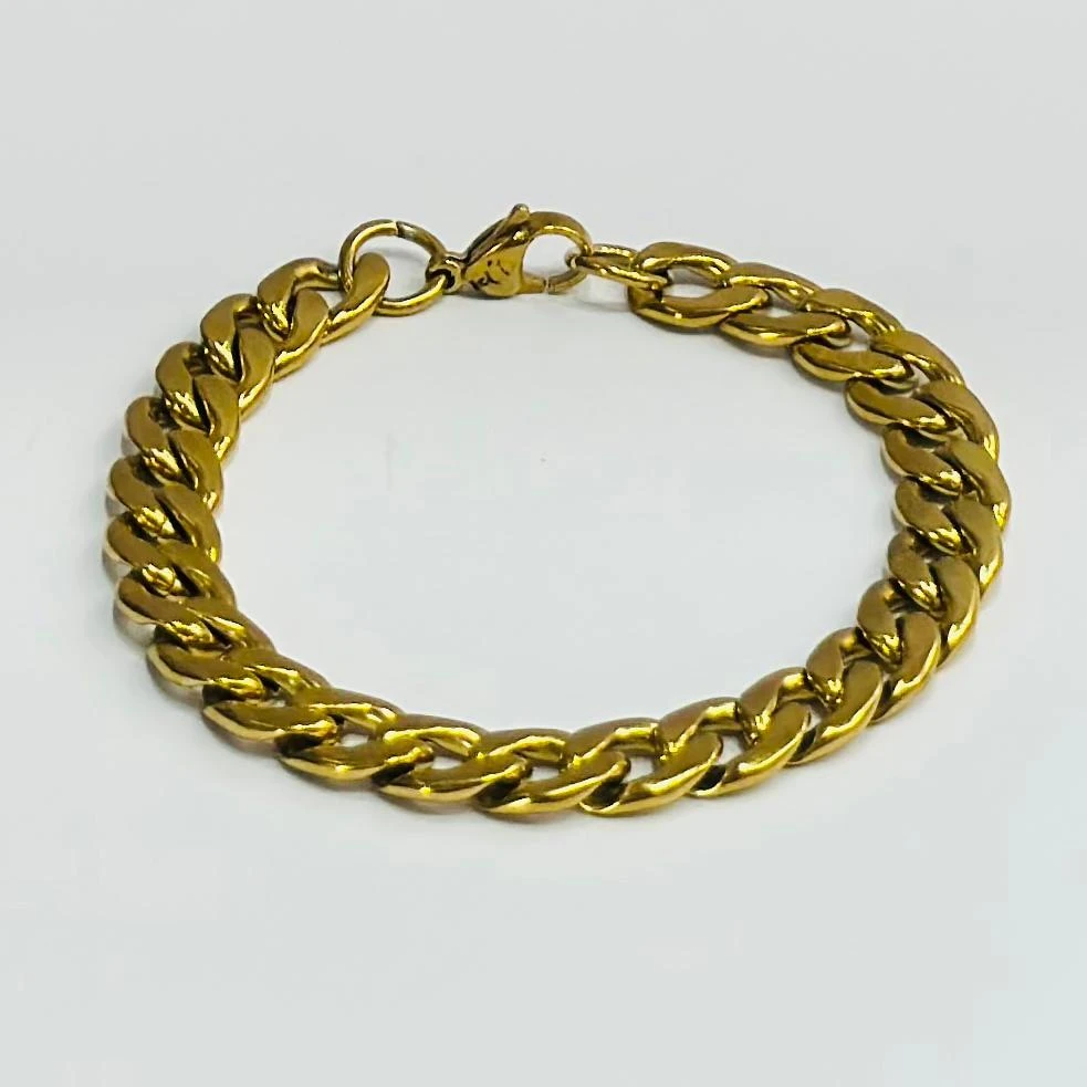 👉 Theme :-  Gold plated stainless steel curb chain bracelet.