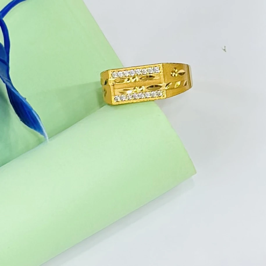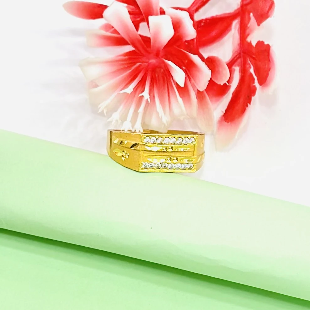 gold-plated fashion ring for men with a heavy design and cubic zirconia stones.