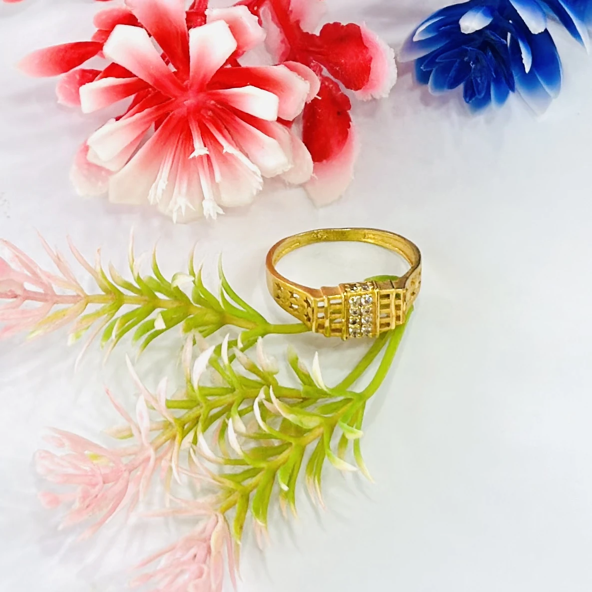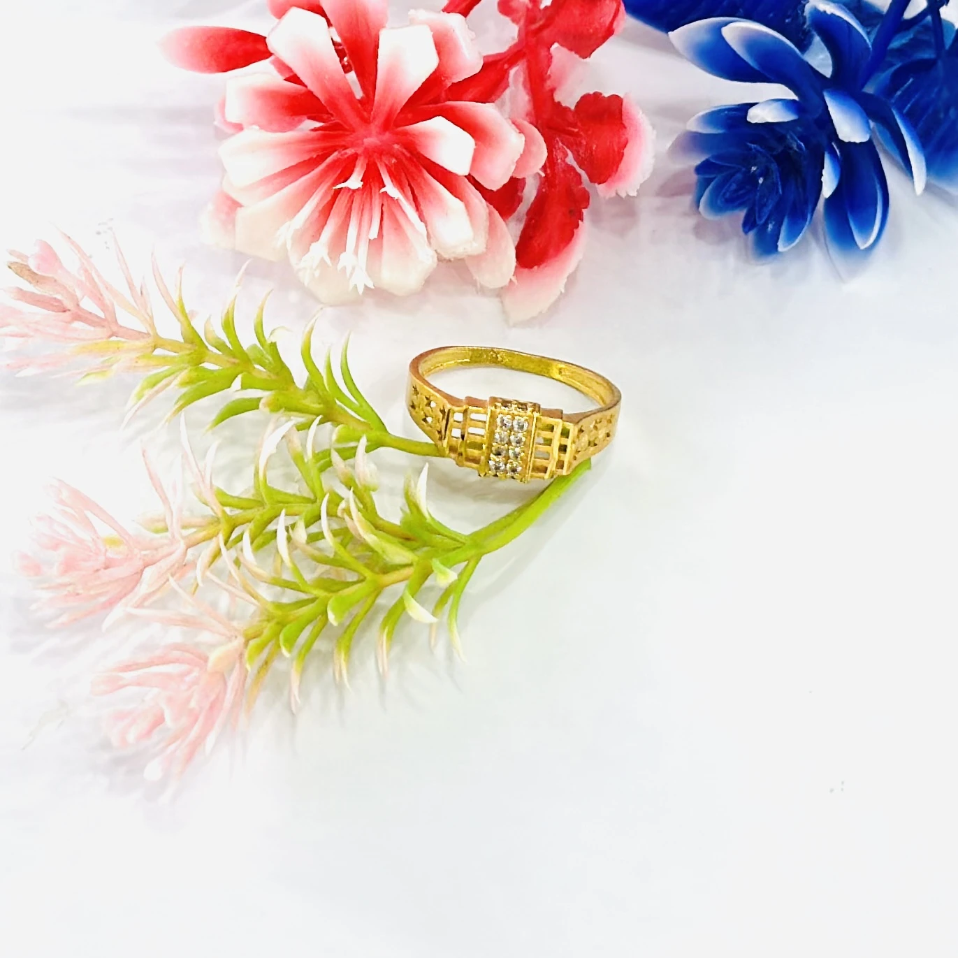 gold-plated men's finger ring with AD (American Diamond) stones, likely made of brass