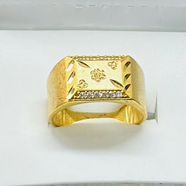 👉 Theme :- Gold plated men's ring with a square face featuring a grid of small, clear stones.