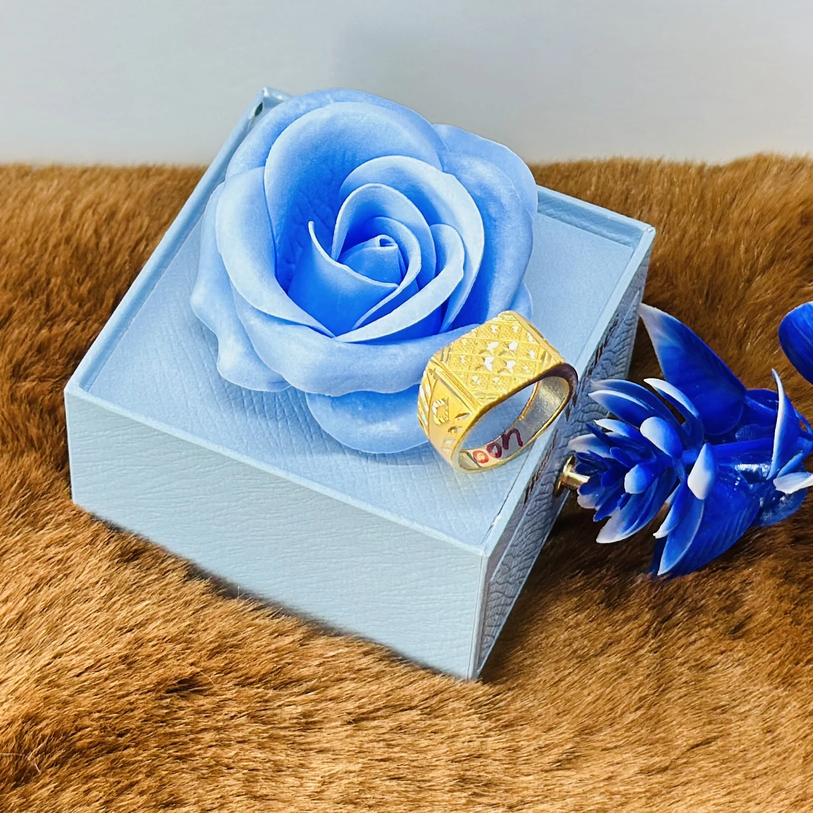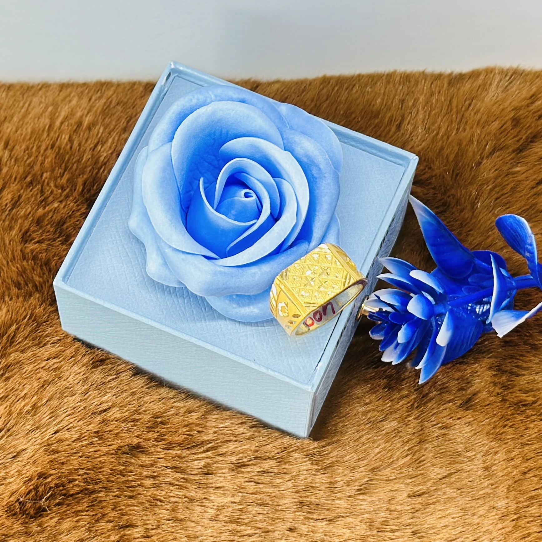 👉 Theme :- Gold plated men's ring with cubic zirconia stones.