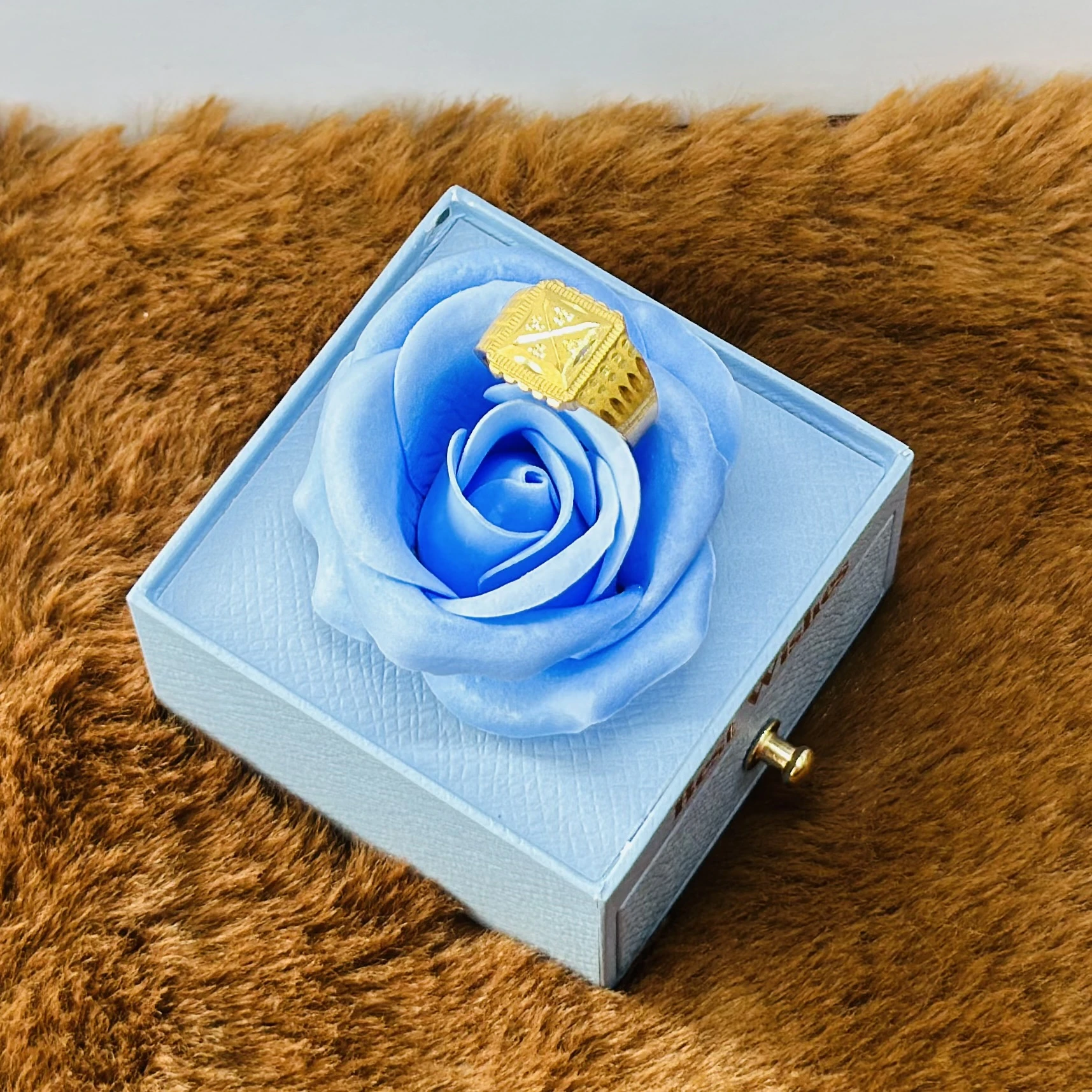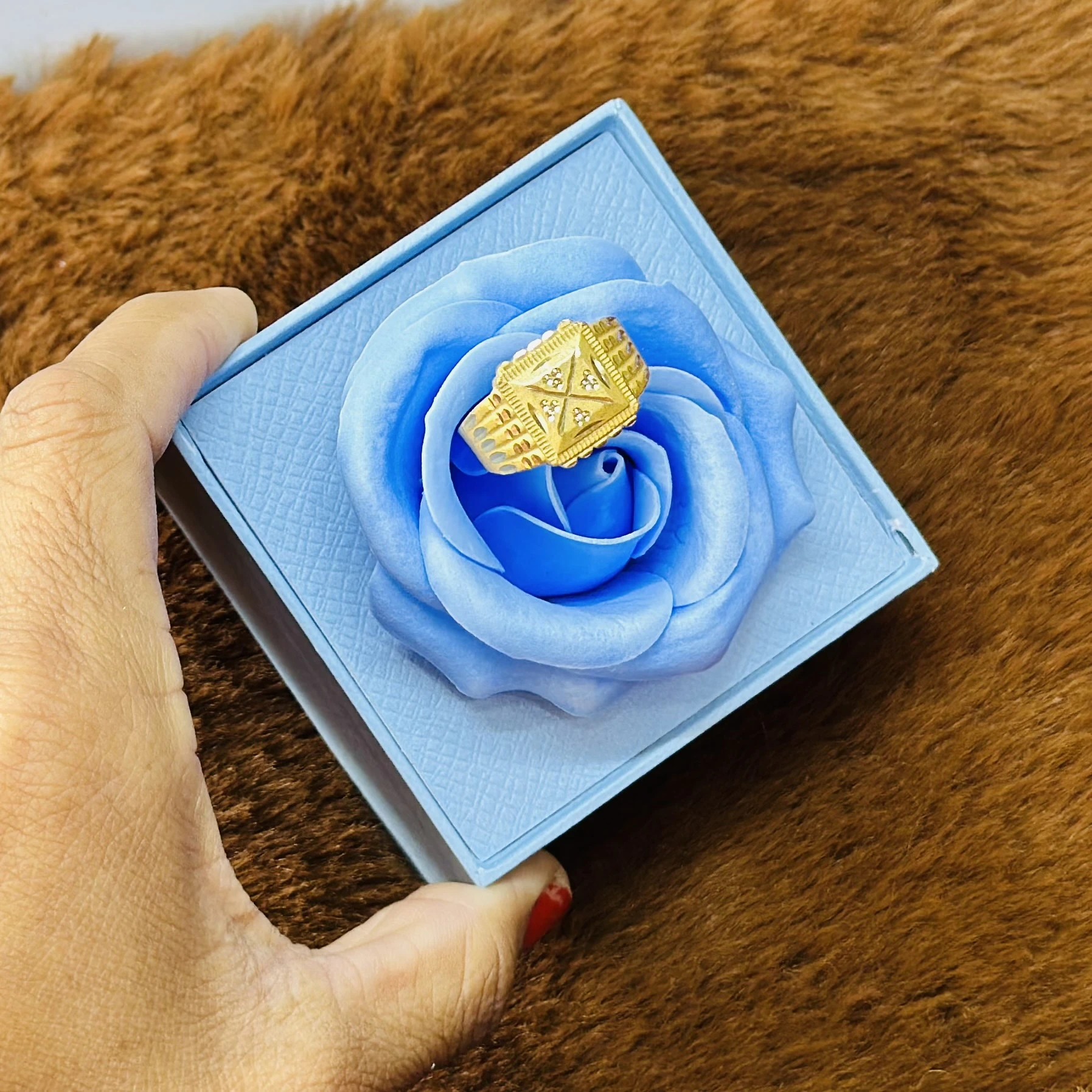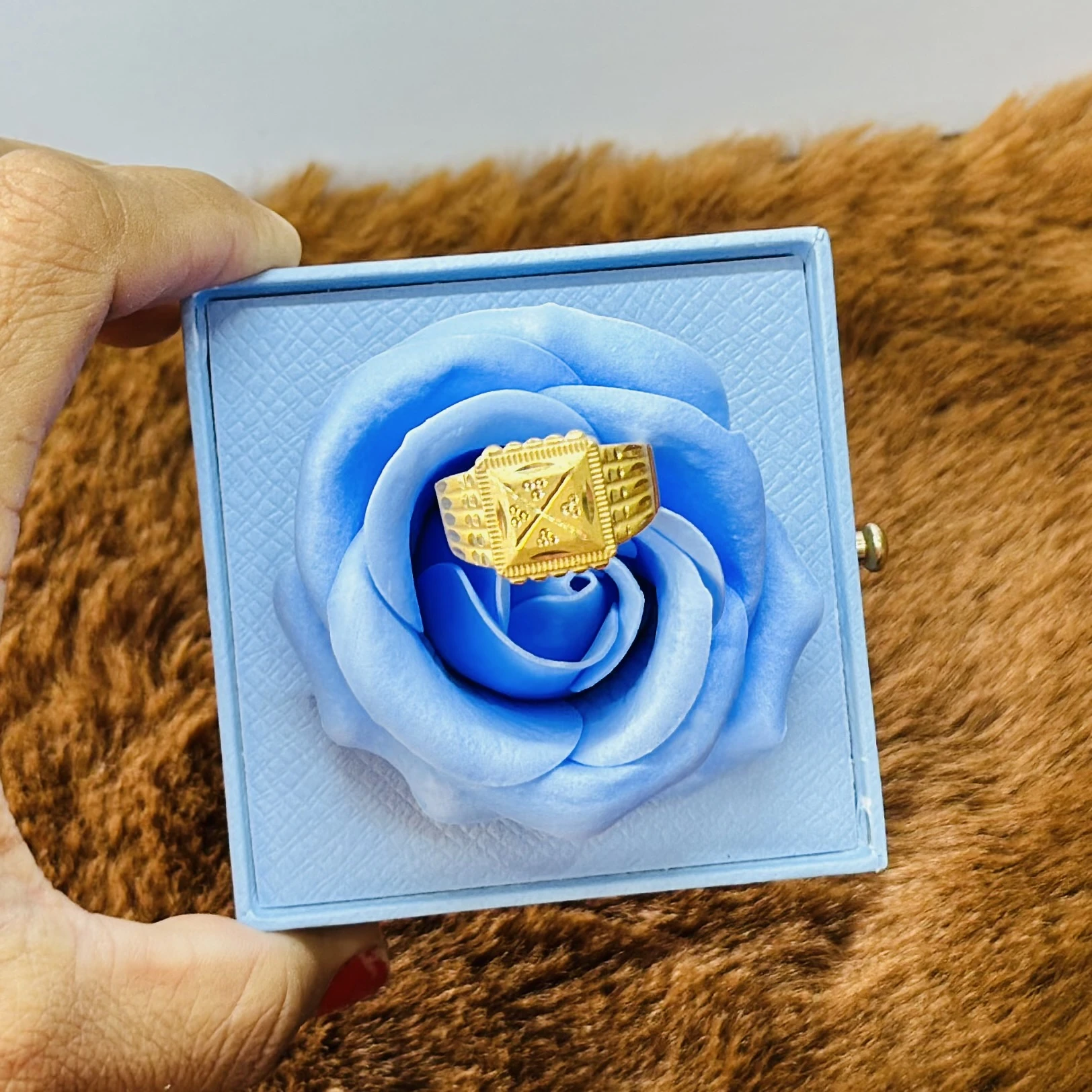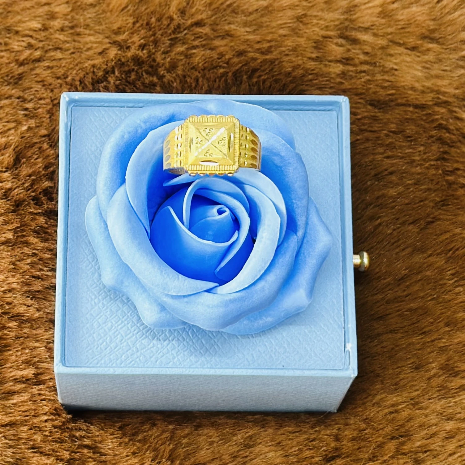 👉 Theme :- Gold gent's ring with a textured design and diamond accents.