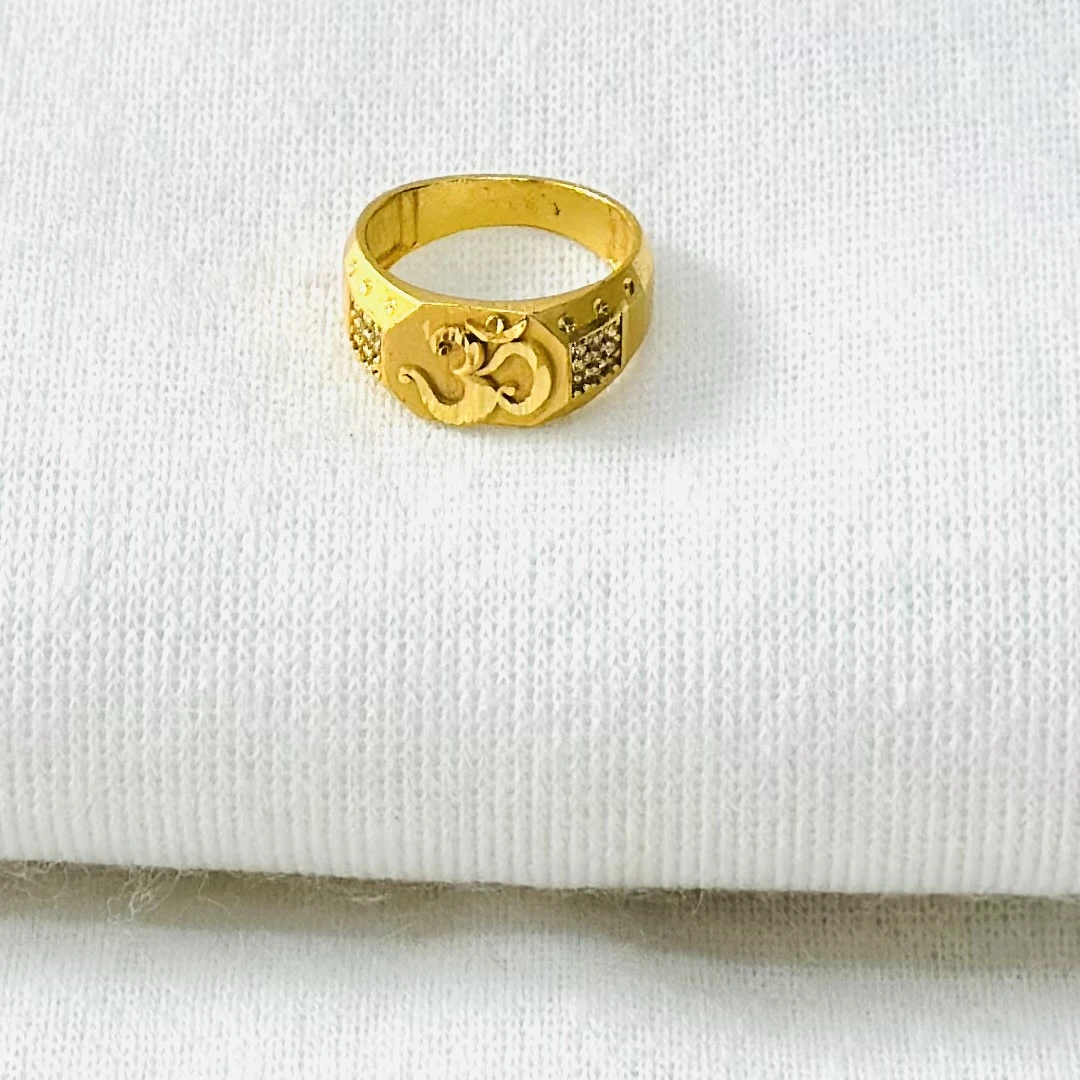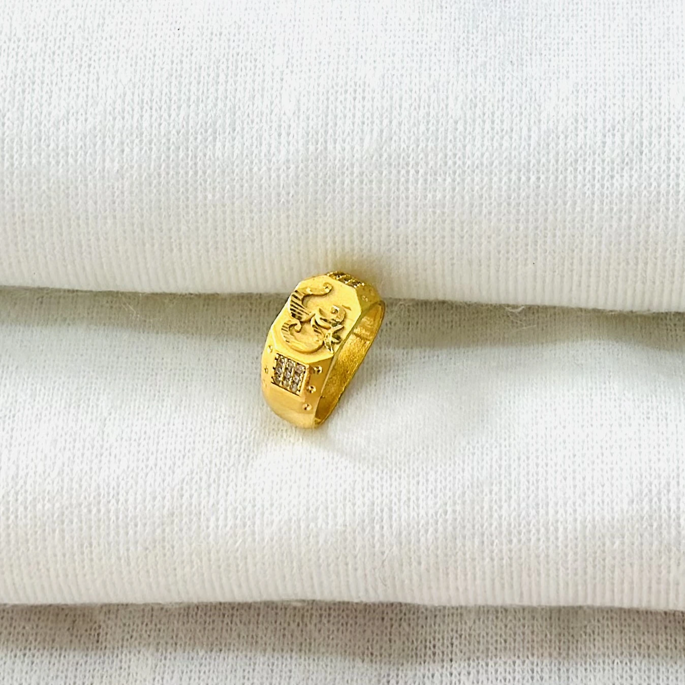 👉 Theme :- Gold gent's ring with a textured design and diamond accents.