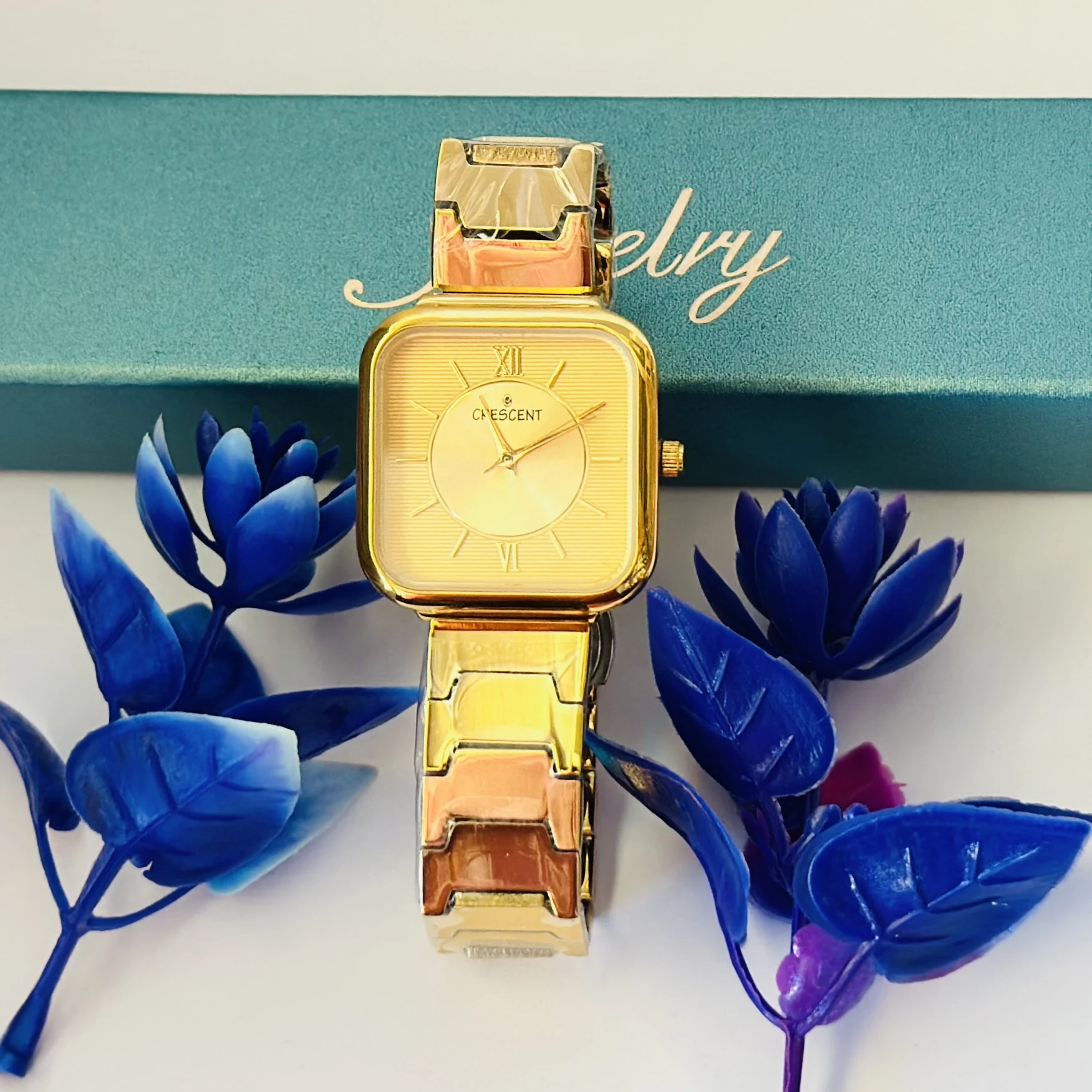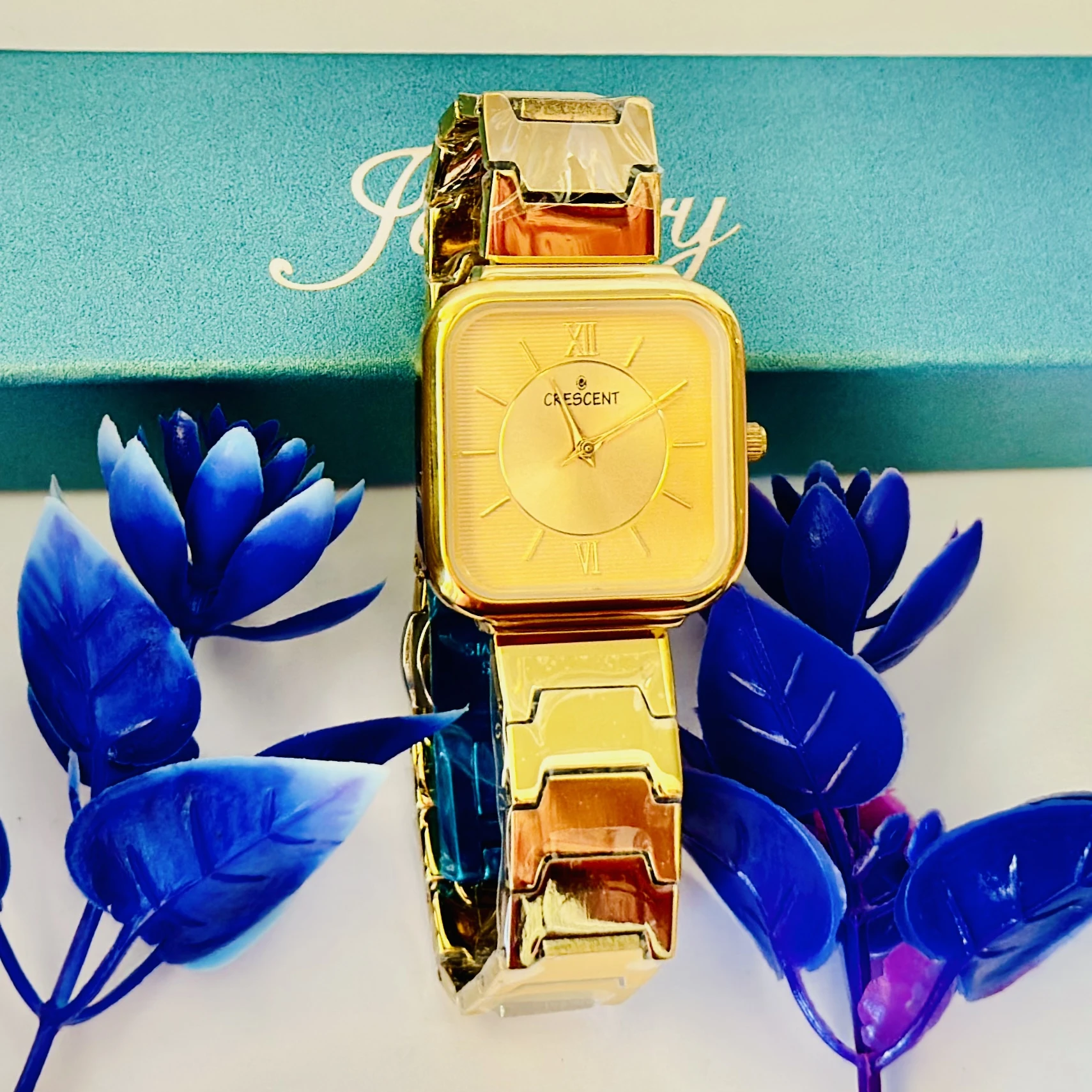 👉 Theme :- Gold tone Crescent women's analog wristwatch.