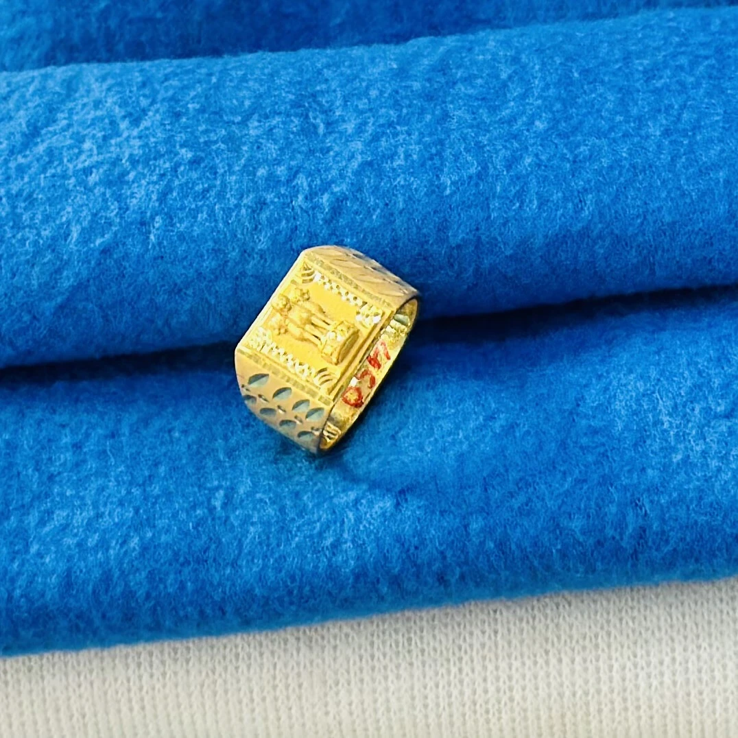 👉 Theme :- Gold gent's ring with a textured design and diamond accents.