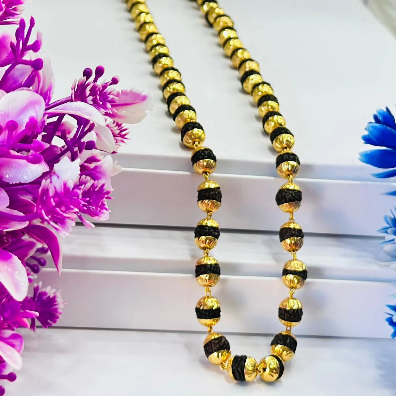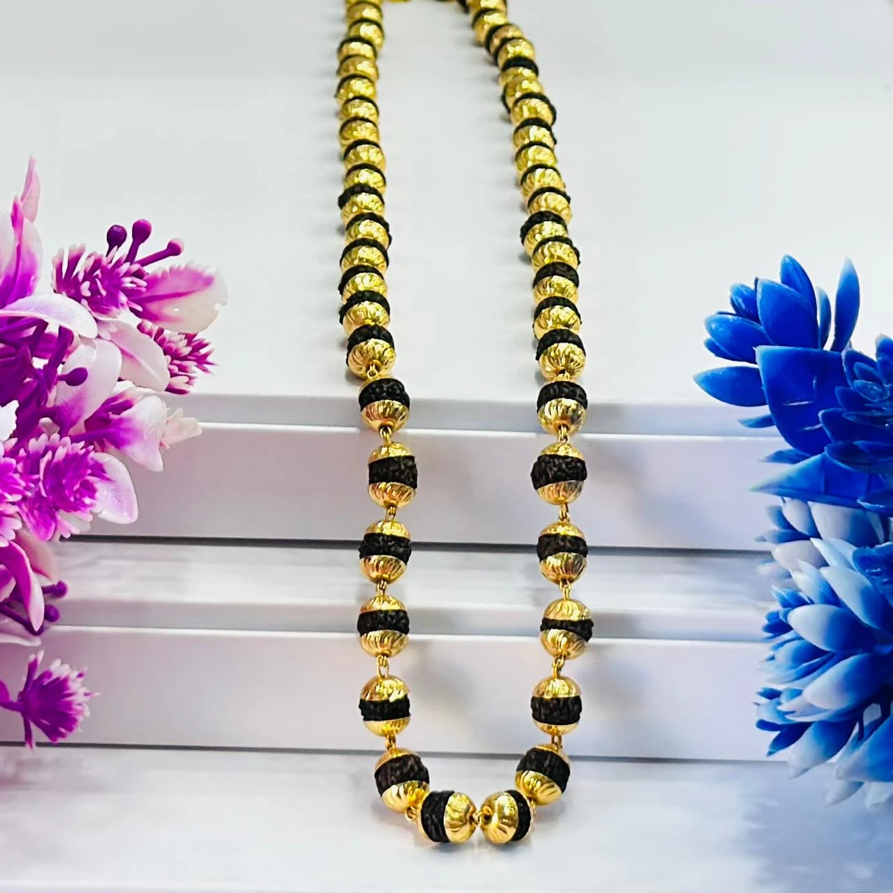 👉 Theme :- Golden Flower Brown Rudraksha Mala