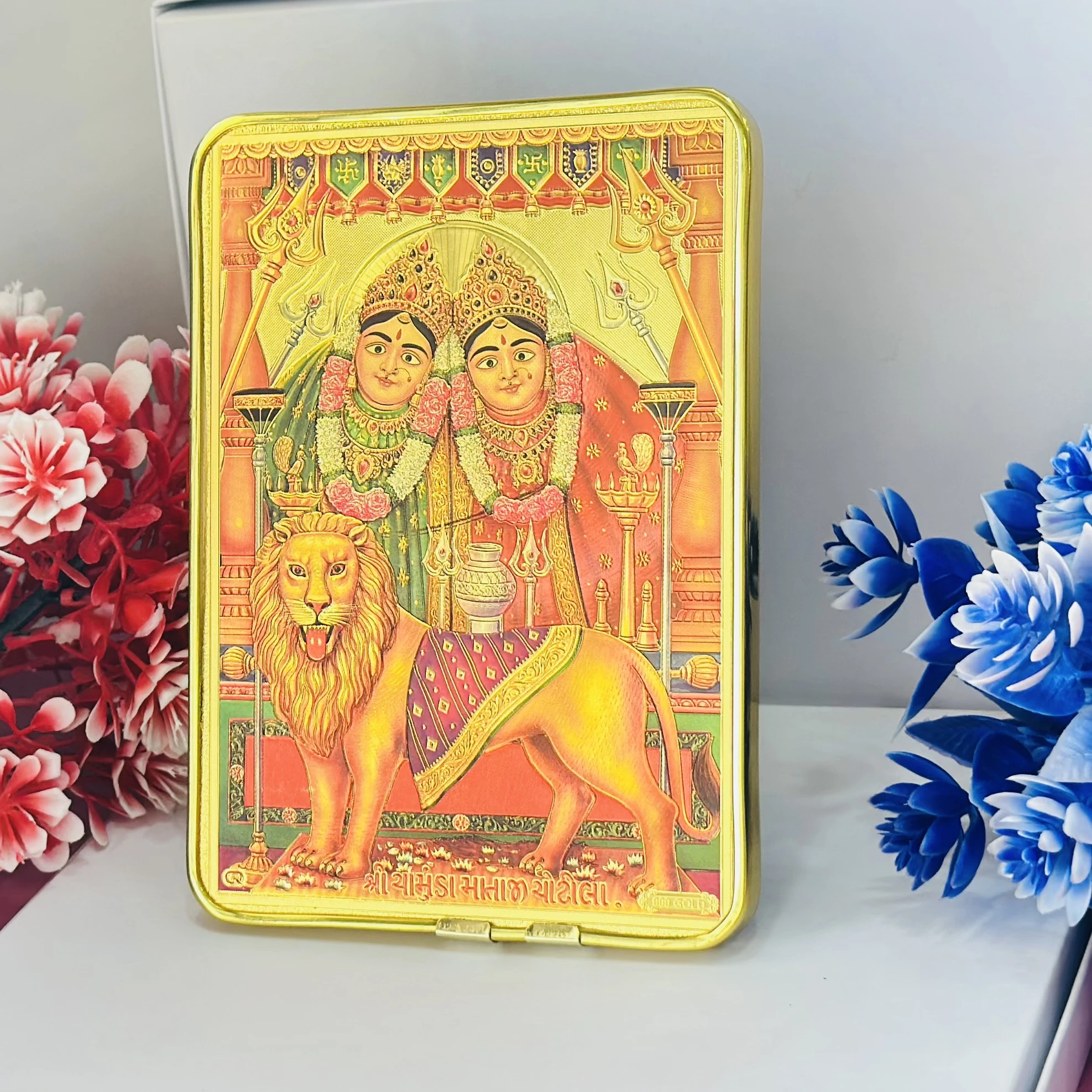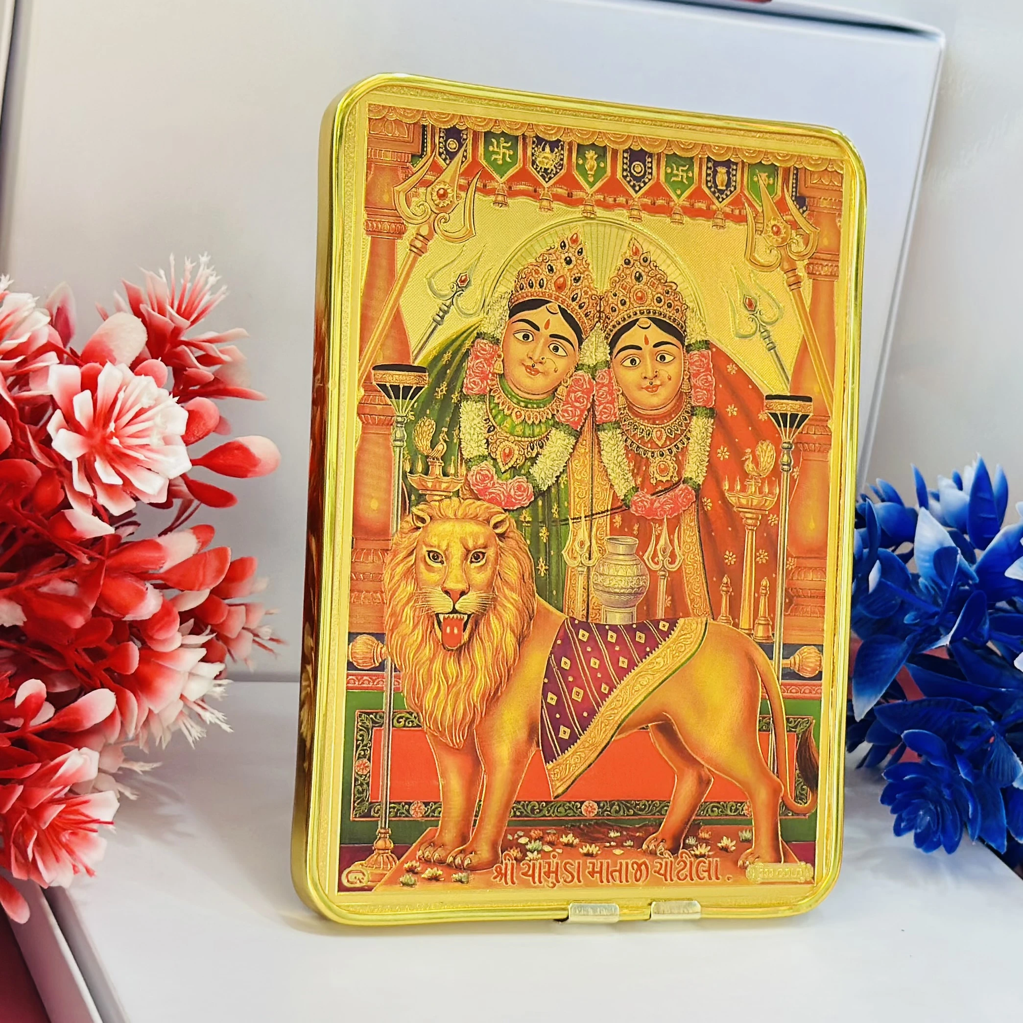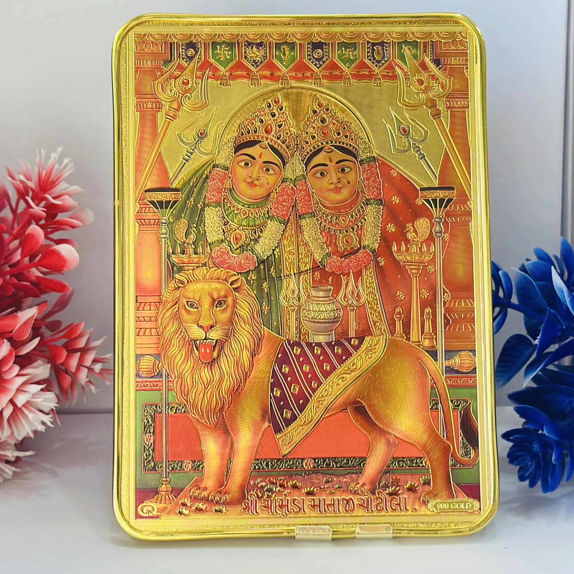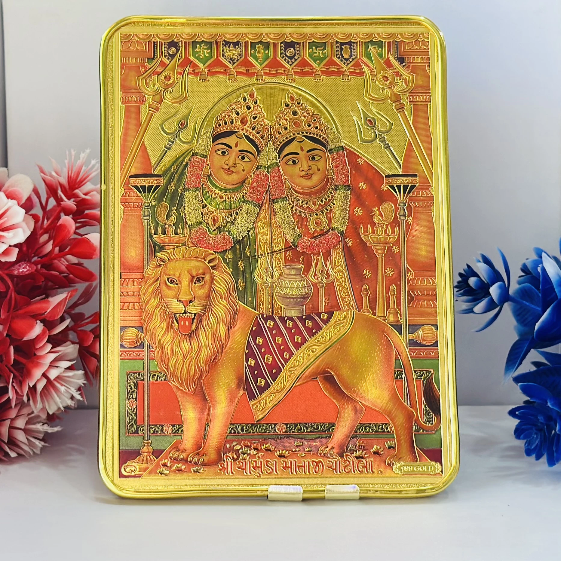 👉 Theme :- golden foil photo frame of Shri Chamunda Mataji.