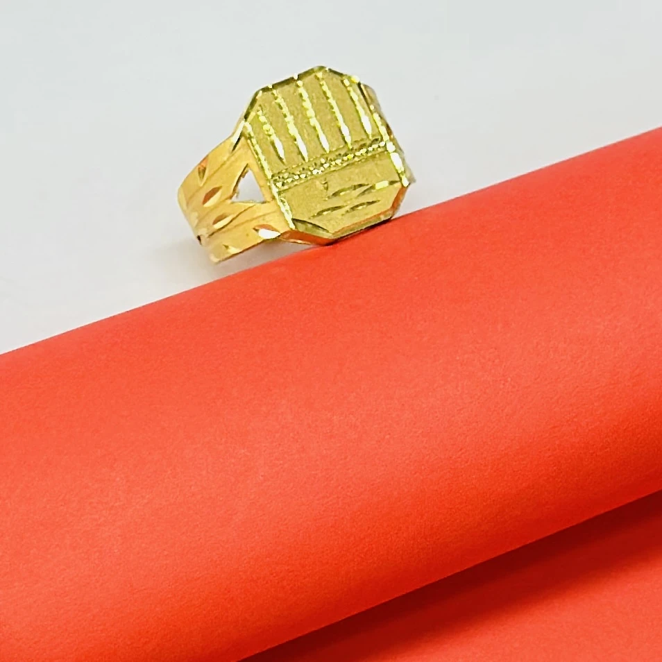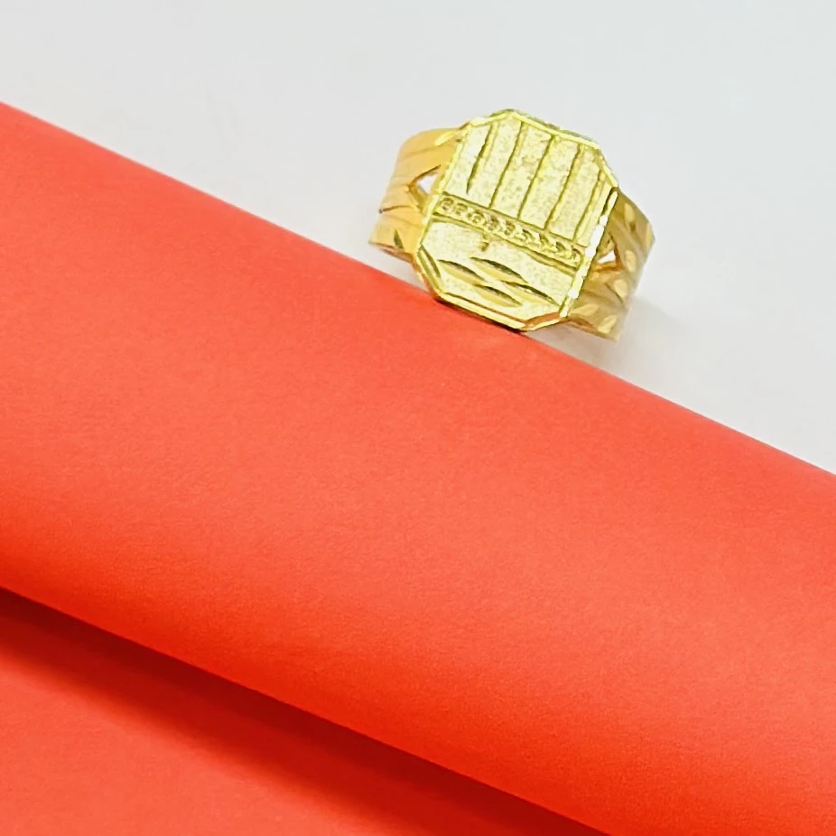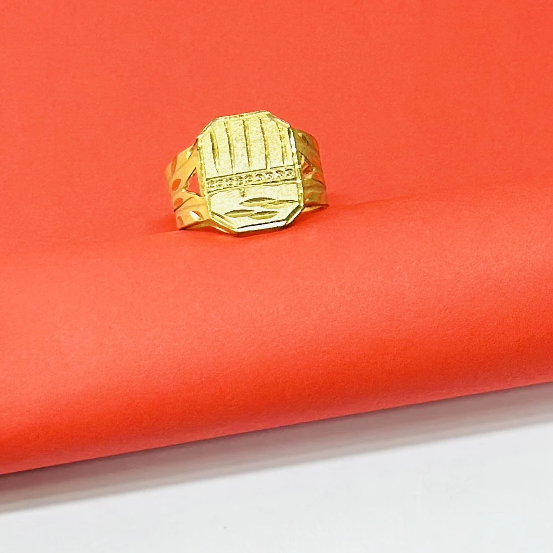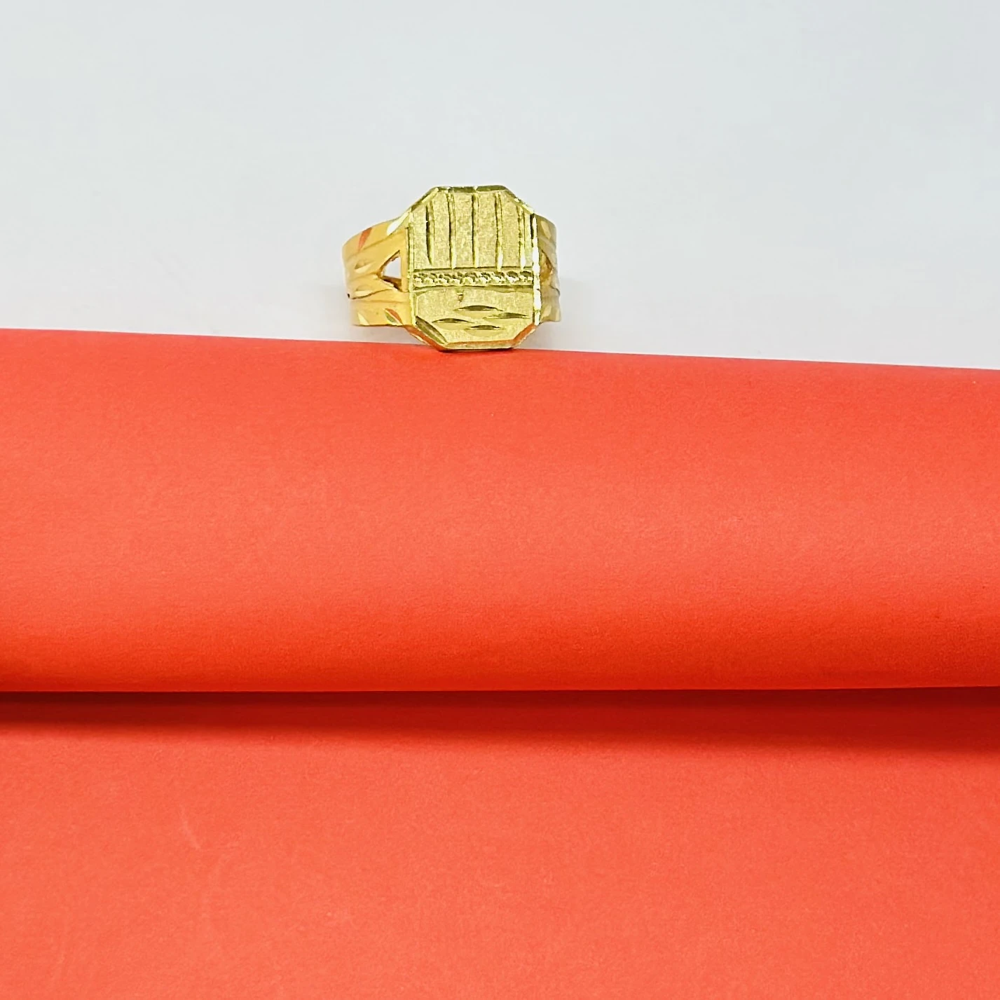 👉 Theme :- Gold gent's ring with a textured design and diamond accents.
