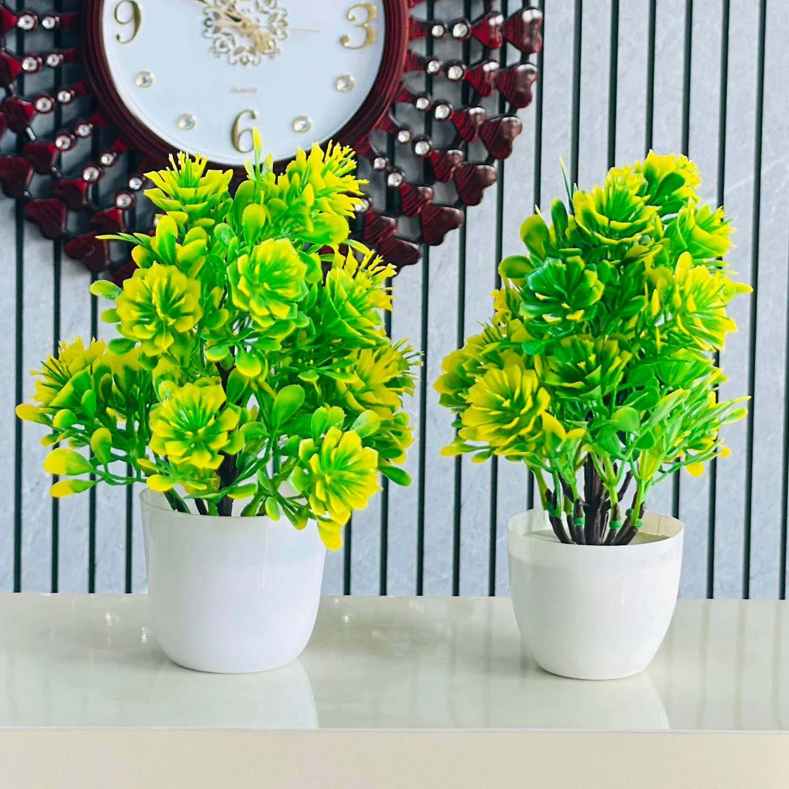👉 Theme :- set of artificial potted plants with Green leaves.
