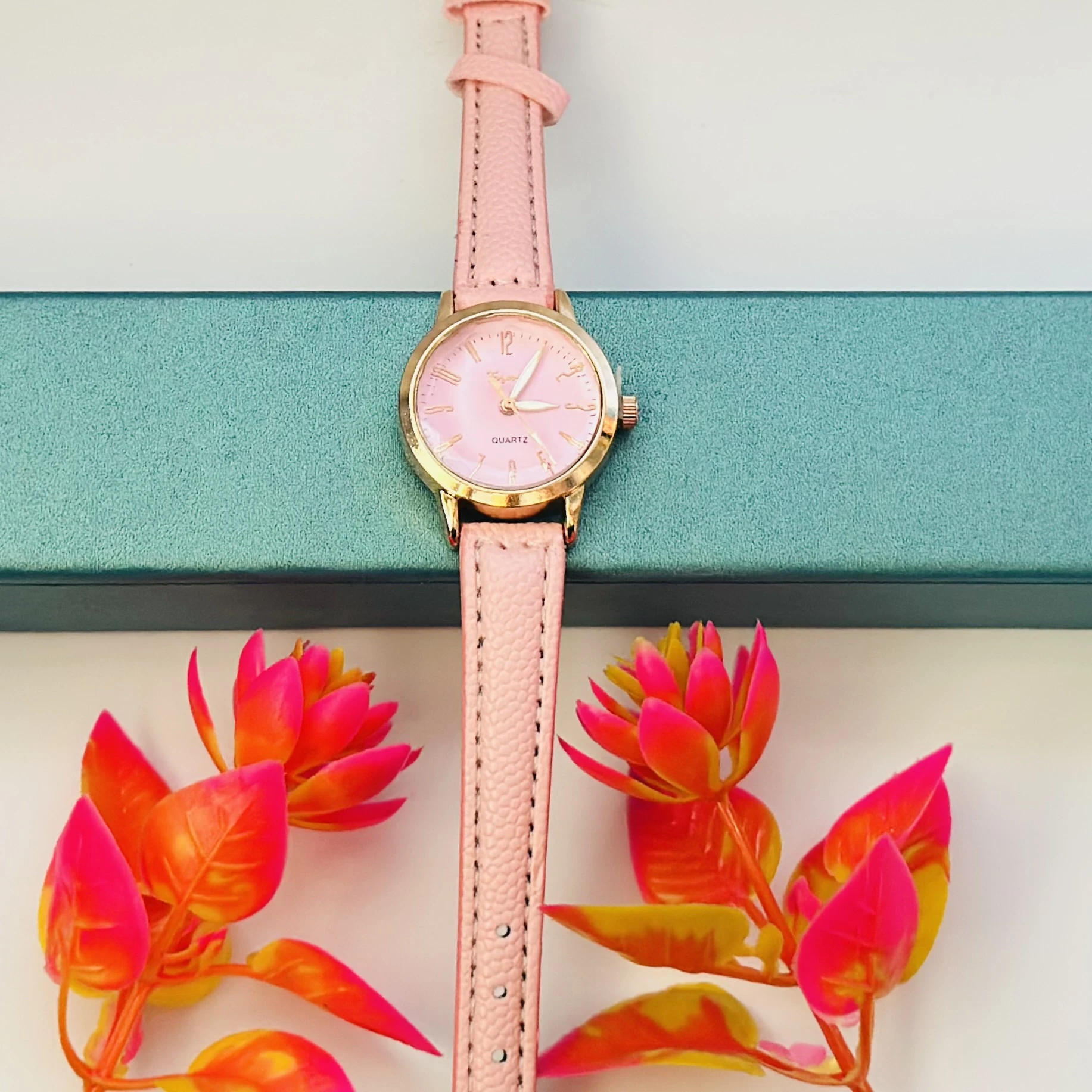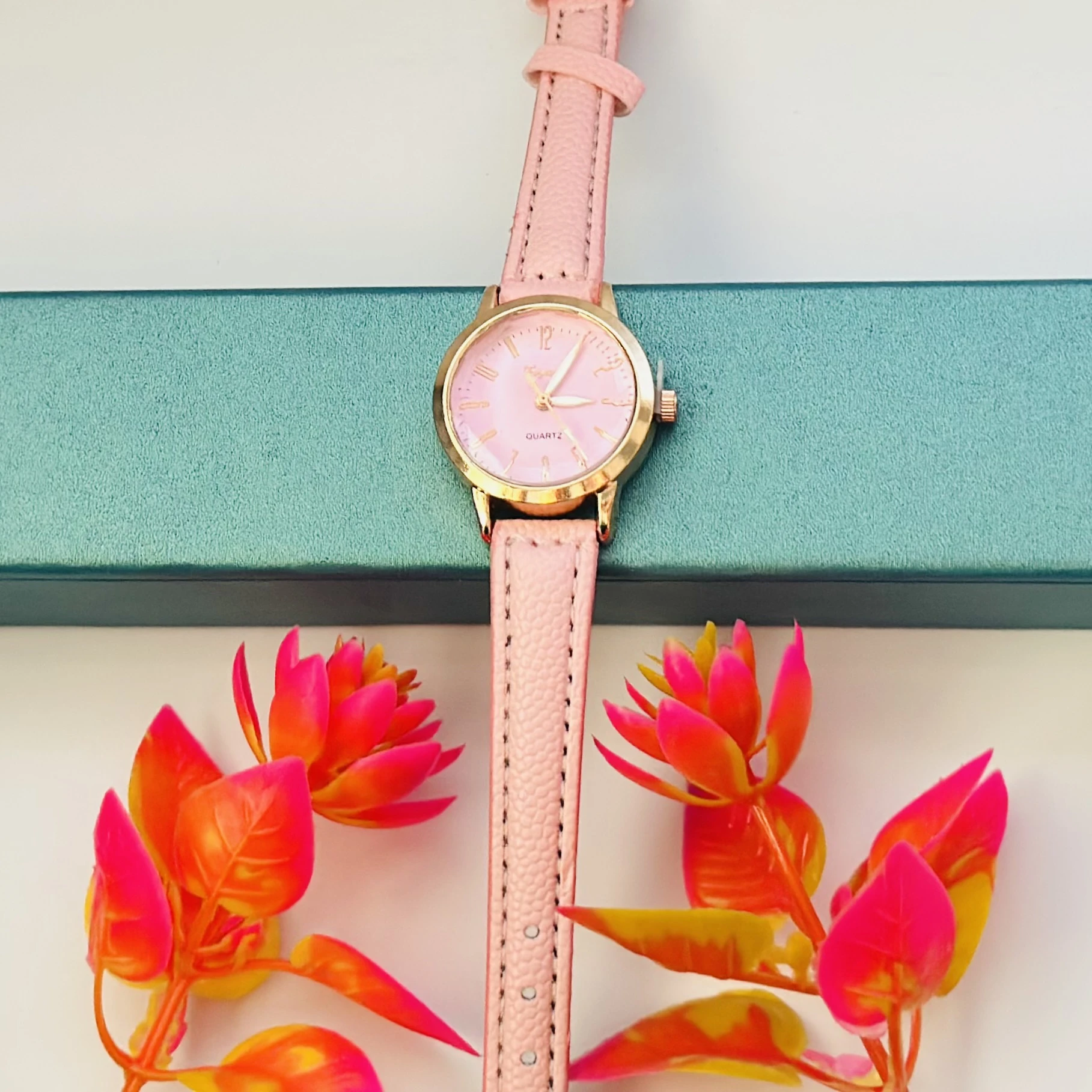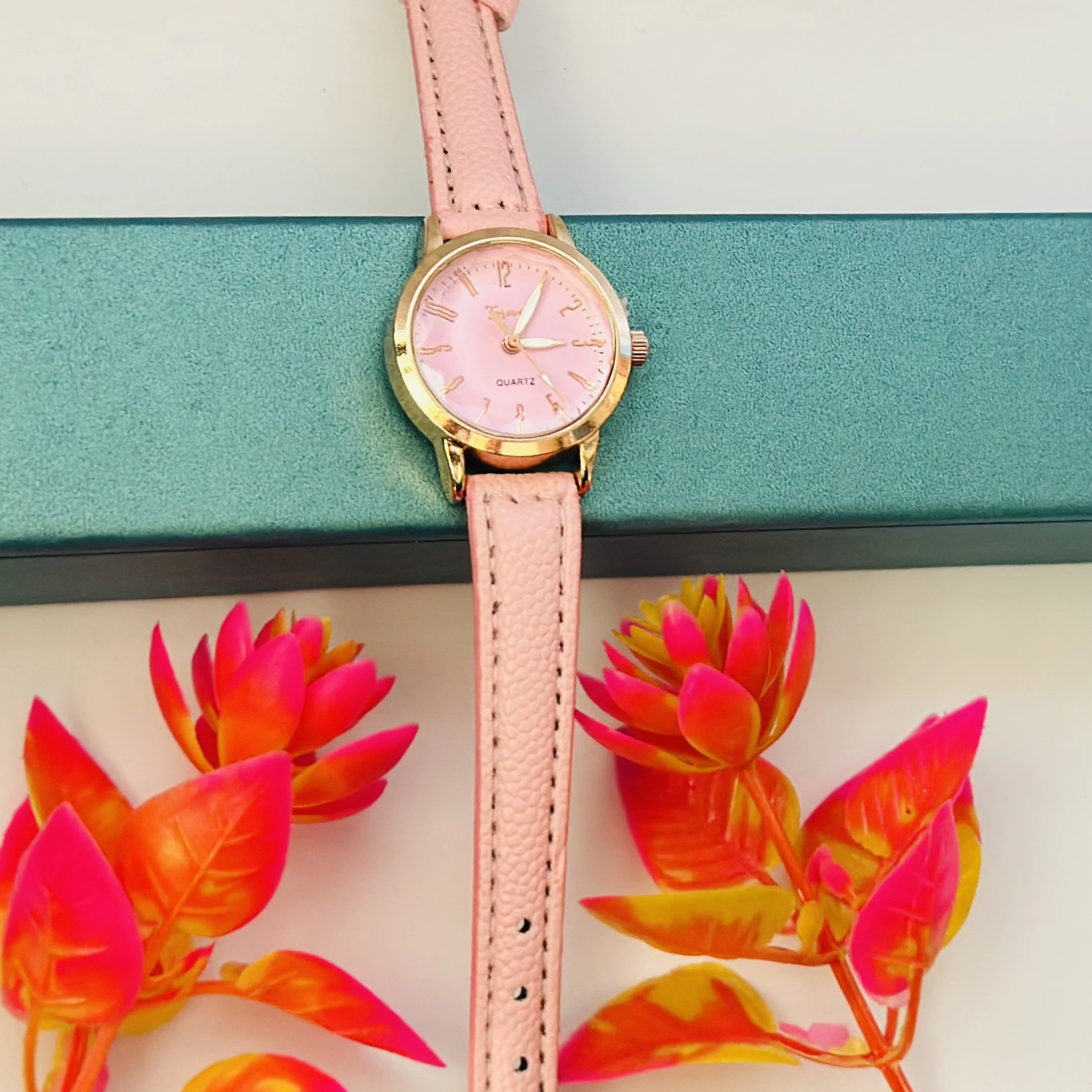 👉 Theme :- Gucci G-Timeless women's watch with a pink leather strap and a mother-of-pearl dial.