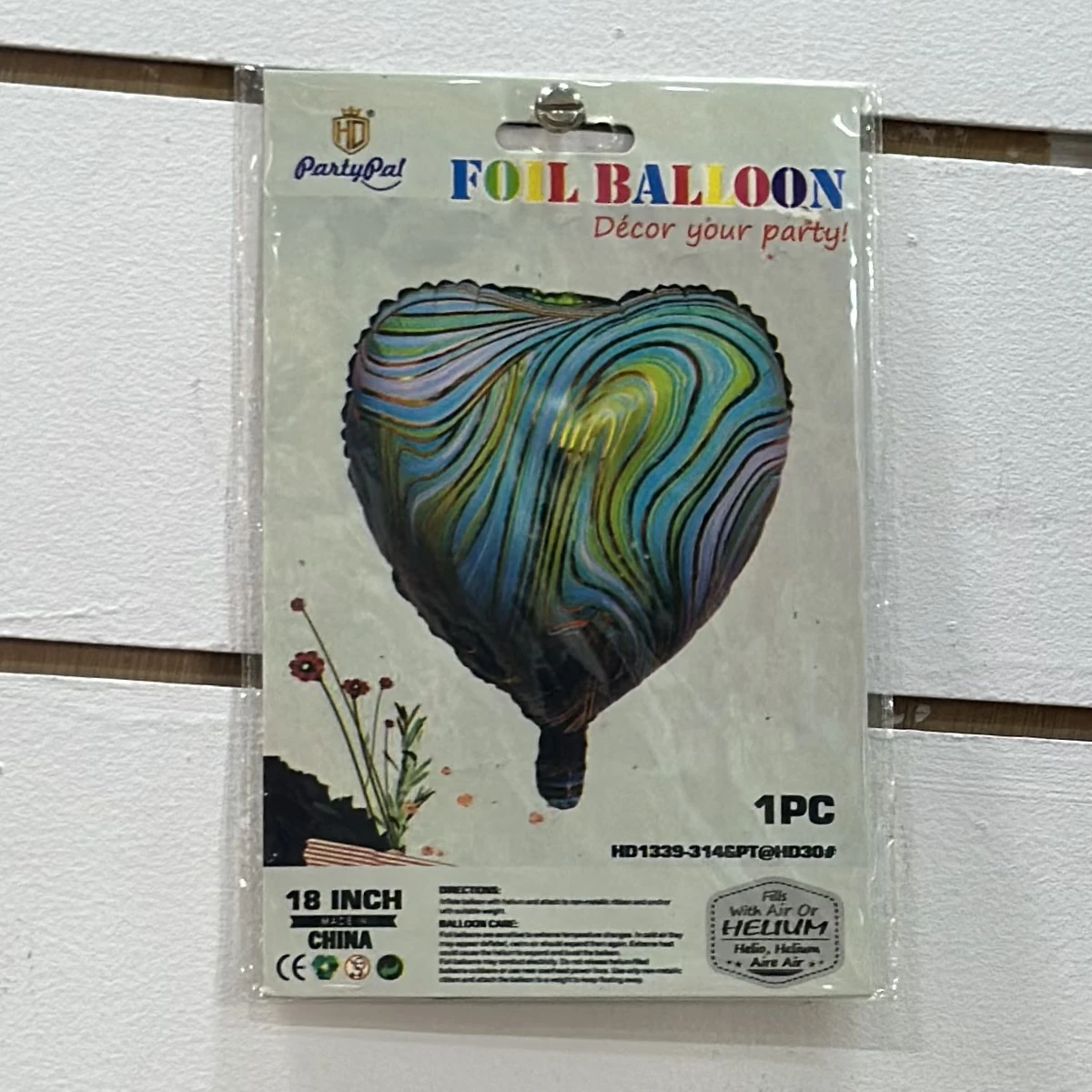 👉Theme :- 18-inch heart-shaped foil balloon with a green and blue marble pattern, a single item manufactured by PartyPal.