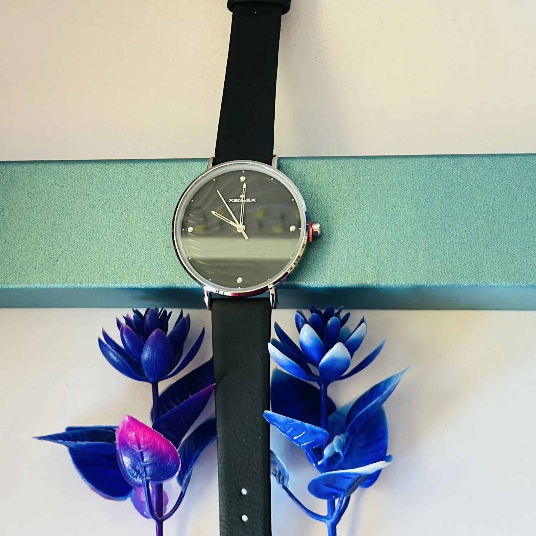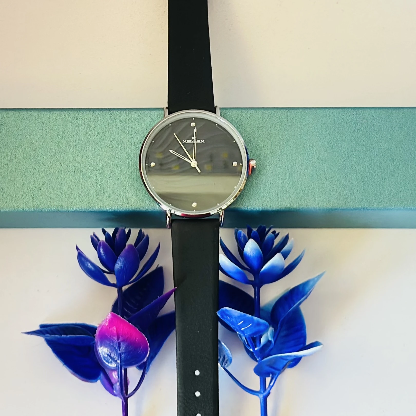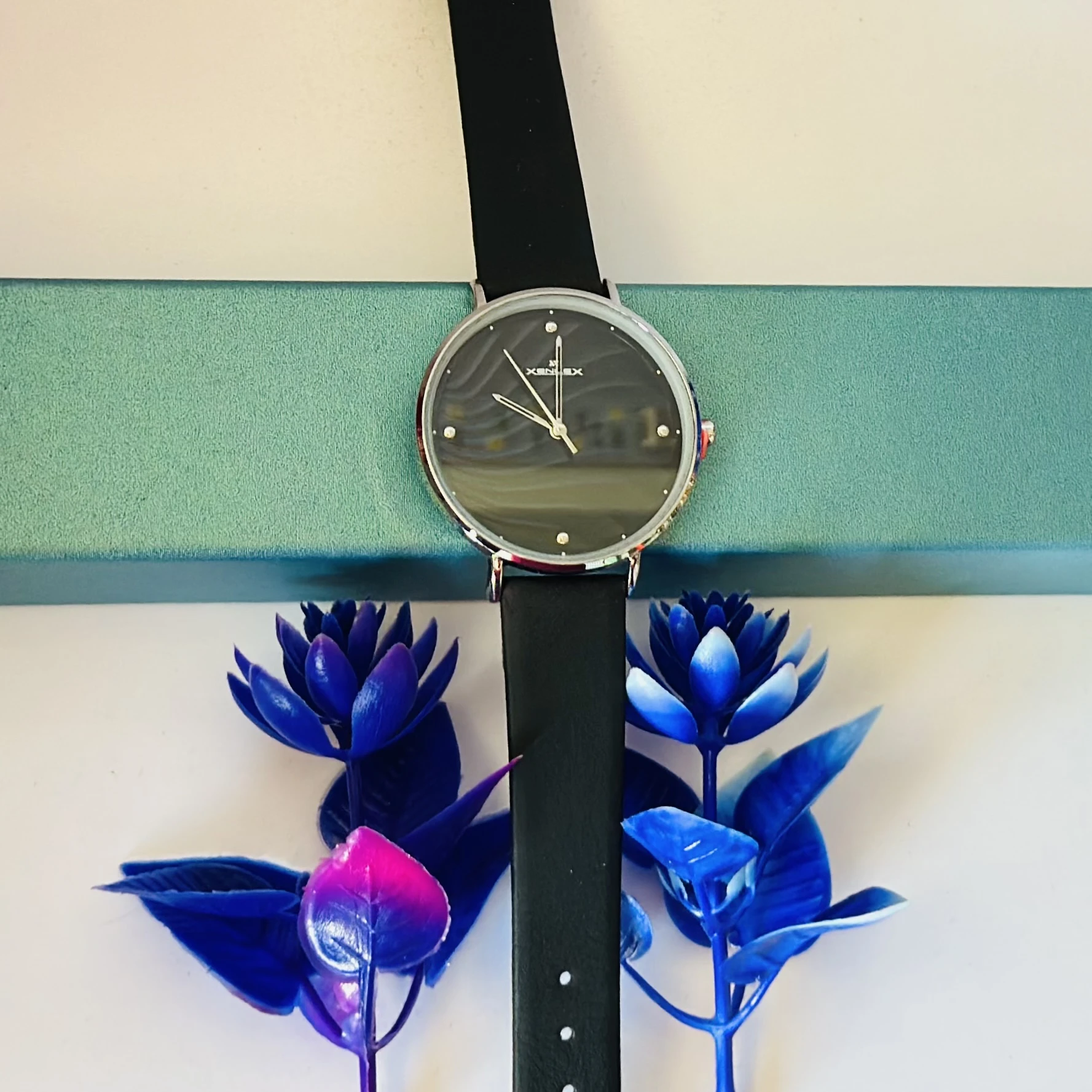 👉 Theme :- Jims Honey women's watch with a black leather strap and black dial.