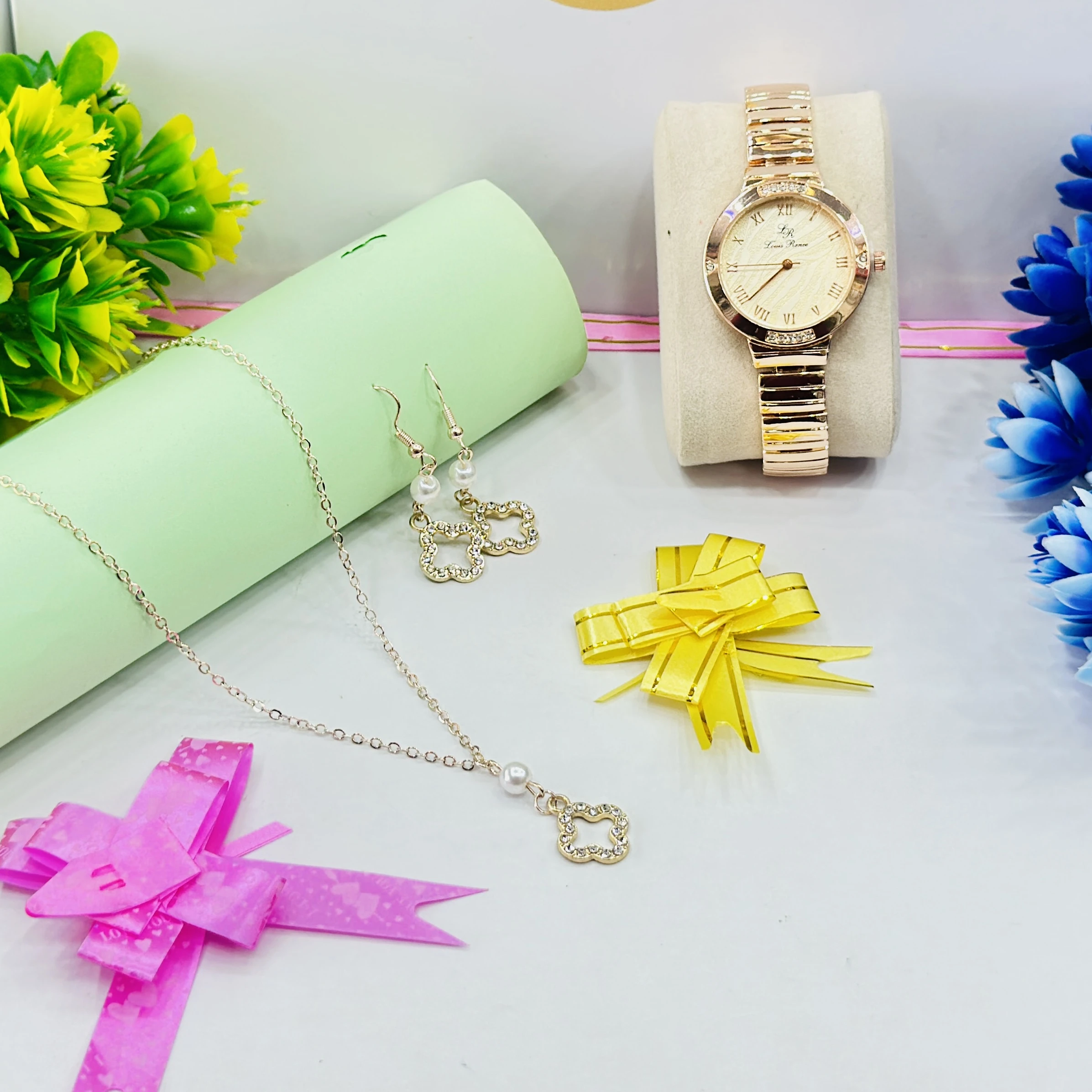 Rose gold watch and jewelry gift set