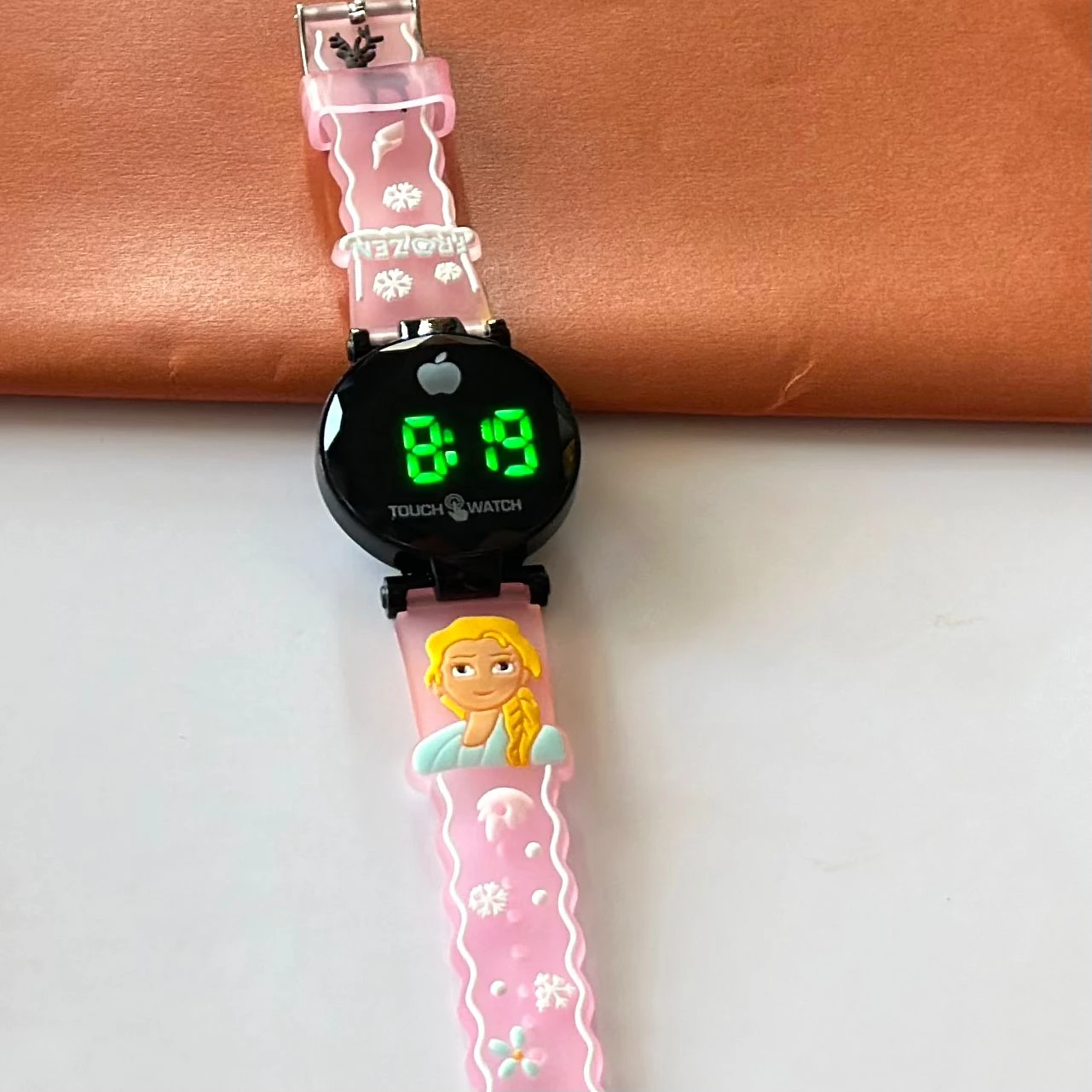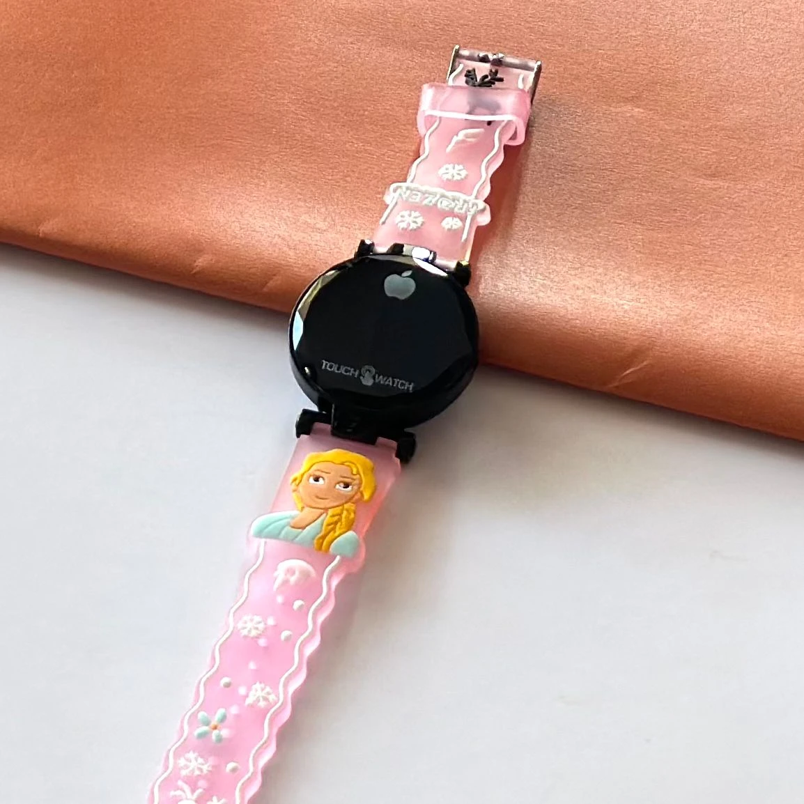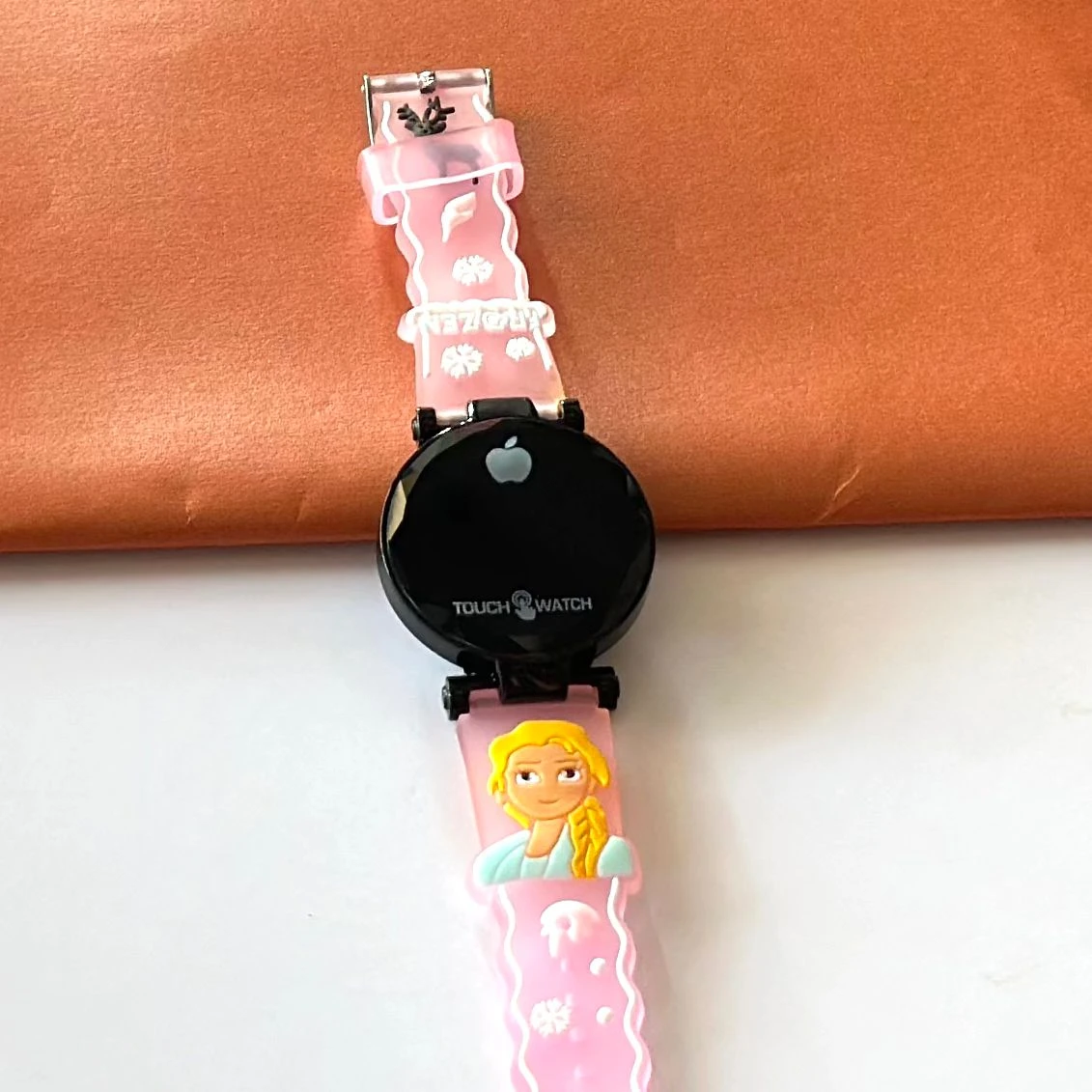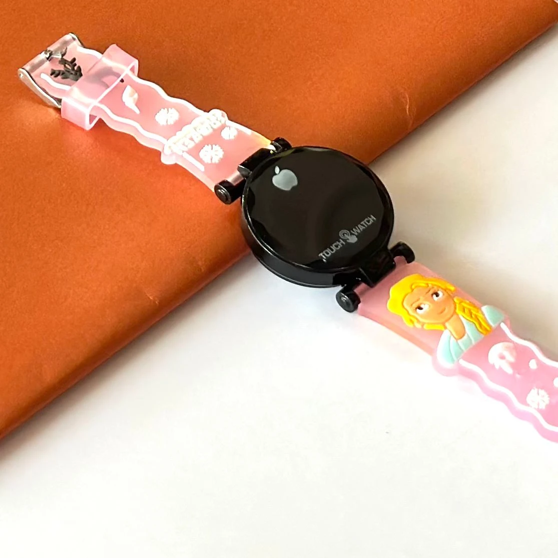 👉 Theme :- kids' analog watch with a pink silicone strap