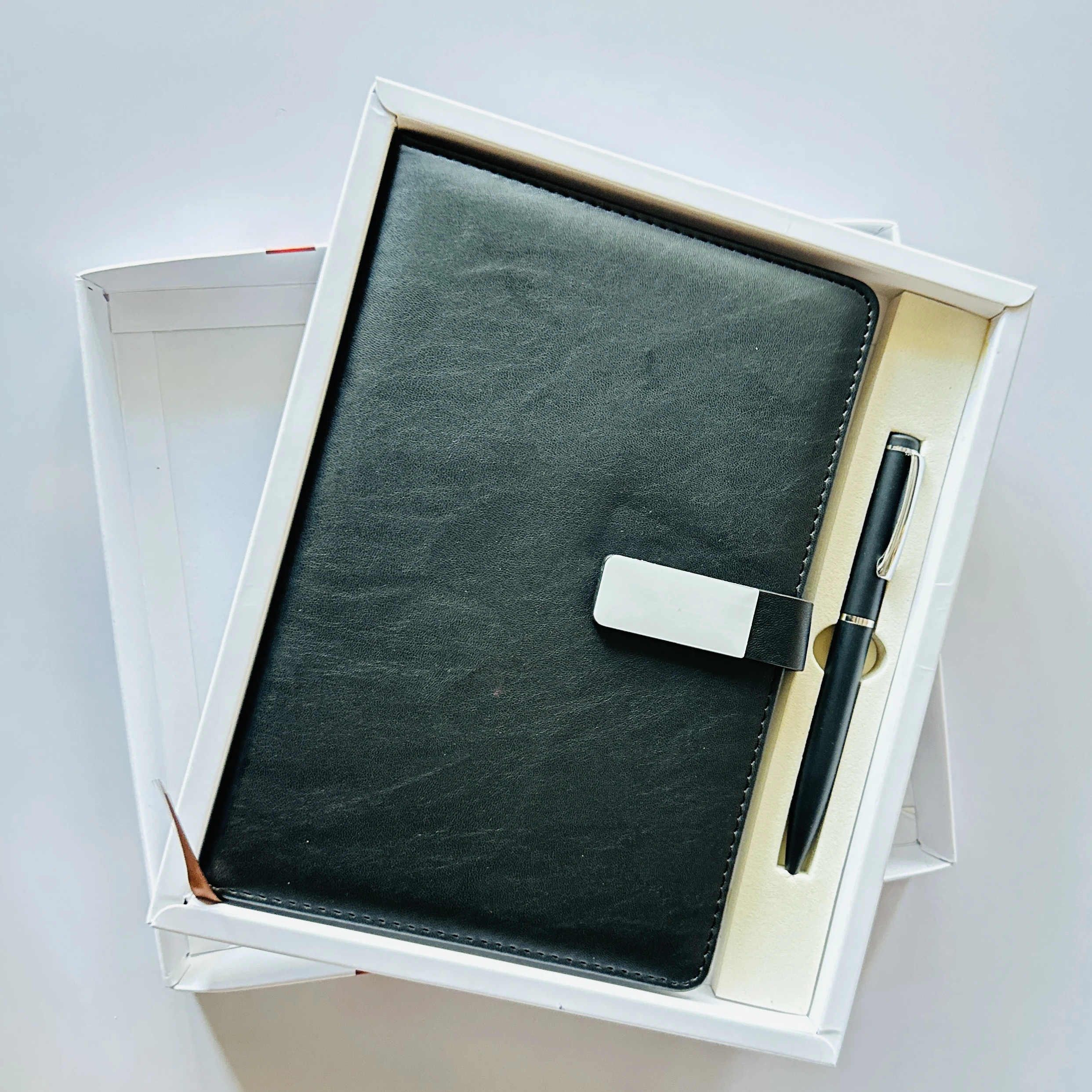 👉 Theme :- corporate gift set containing a leatherette notebook and a matching pen