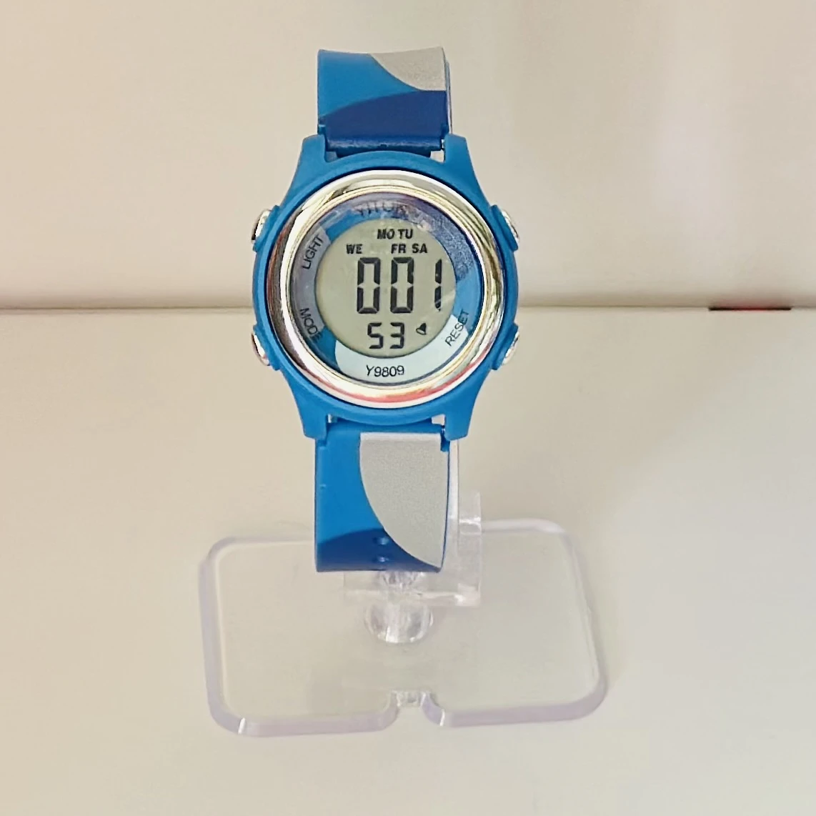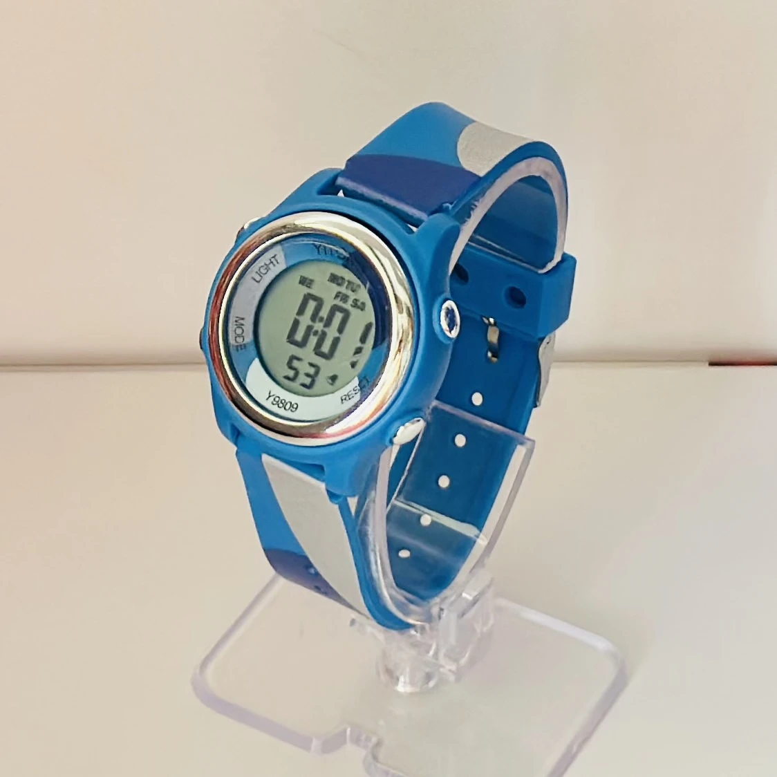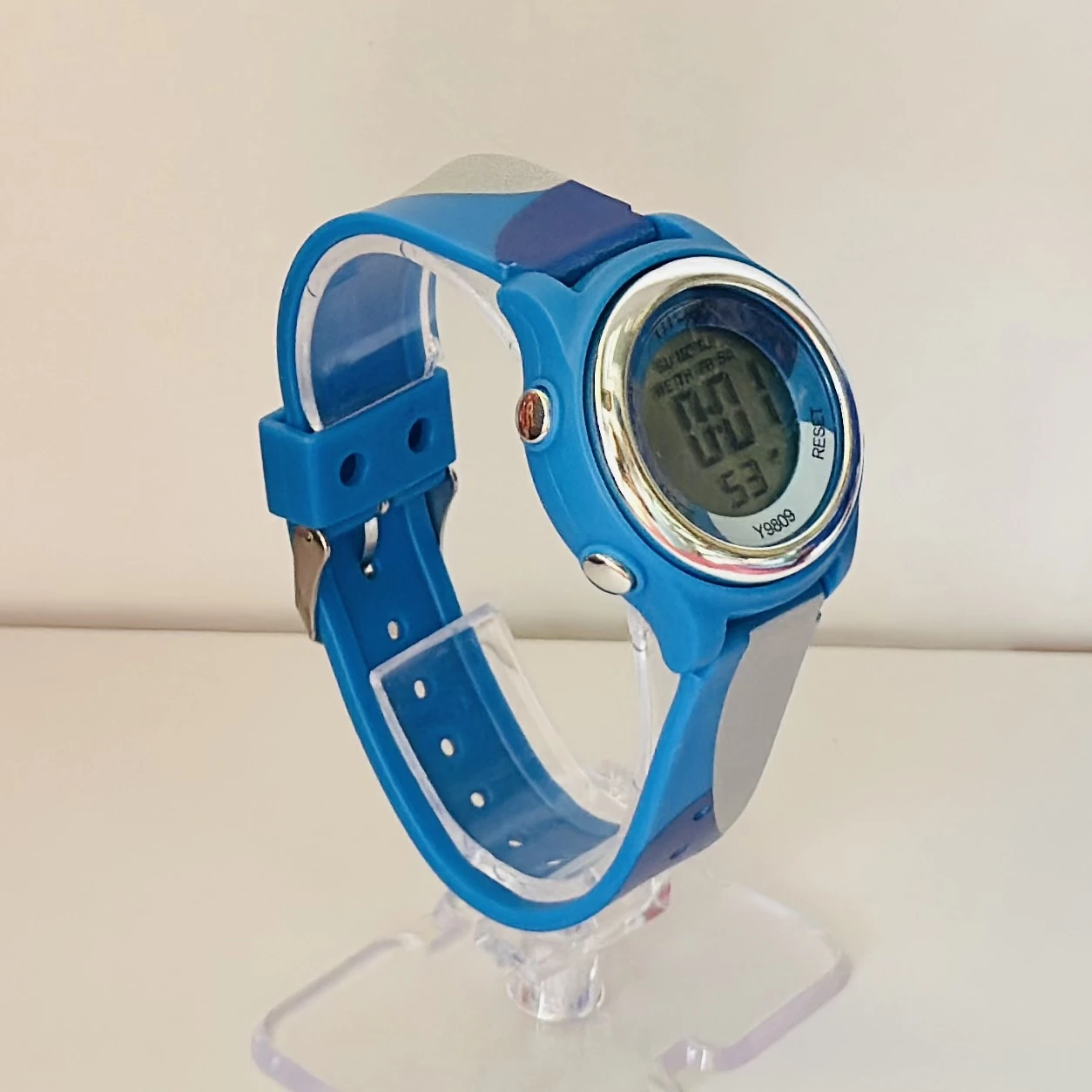 Features: Waterproof, alarm, and stopwatch.