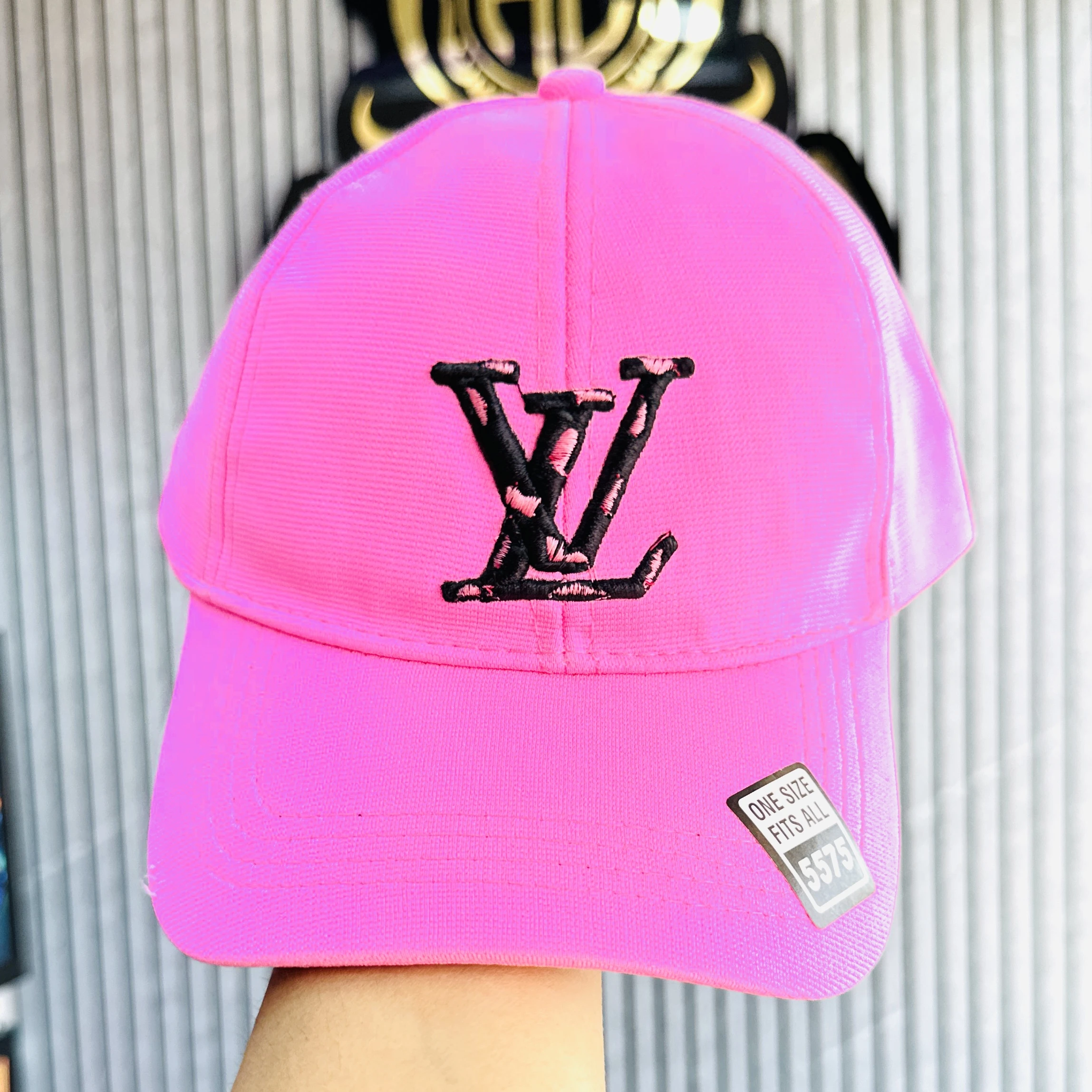 Louis Vuitton LV Signature cap in a pink cotton material.