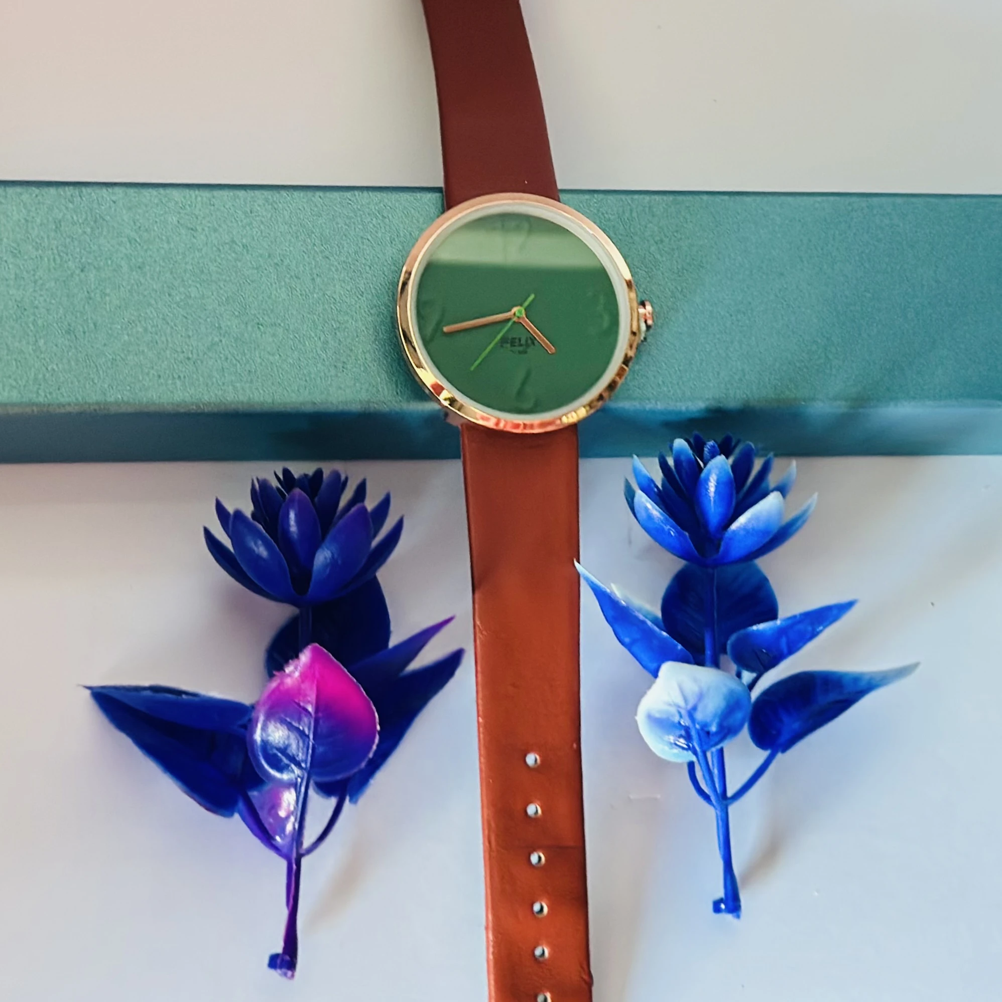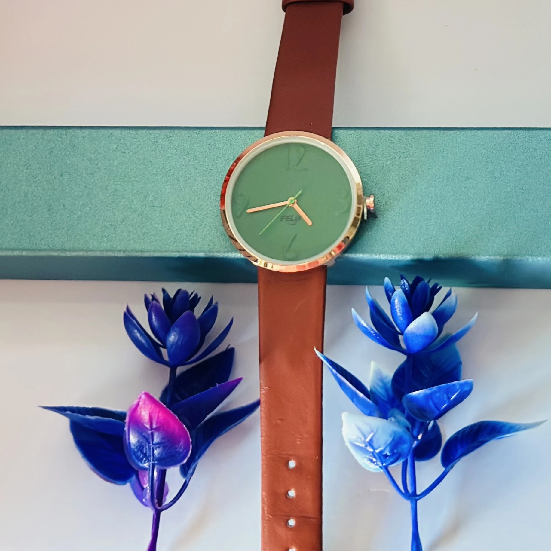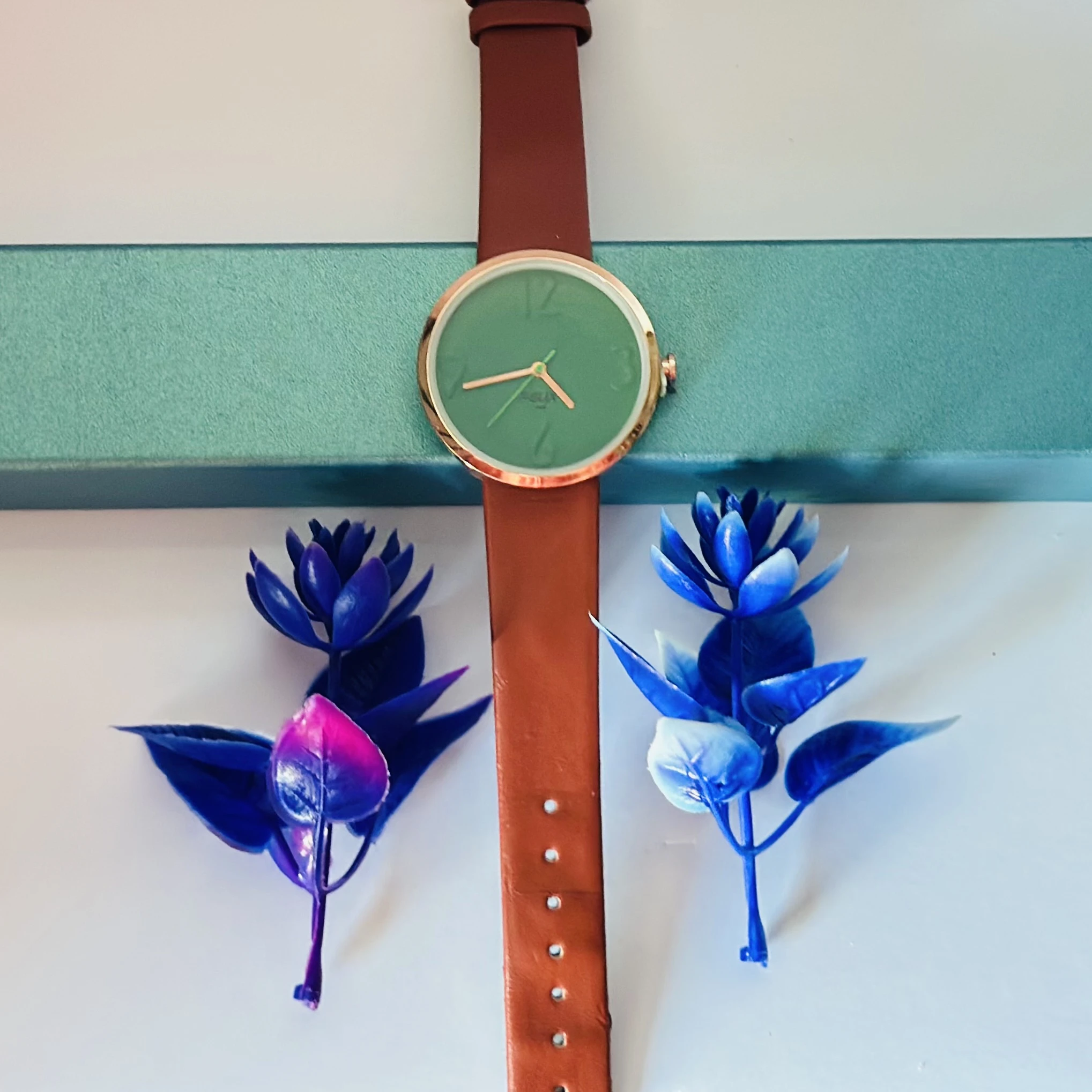 👉 Theme :- Maven Dusty Olive watch with a brown Italian leather strap and a champagne gold brushed sand bezel.