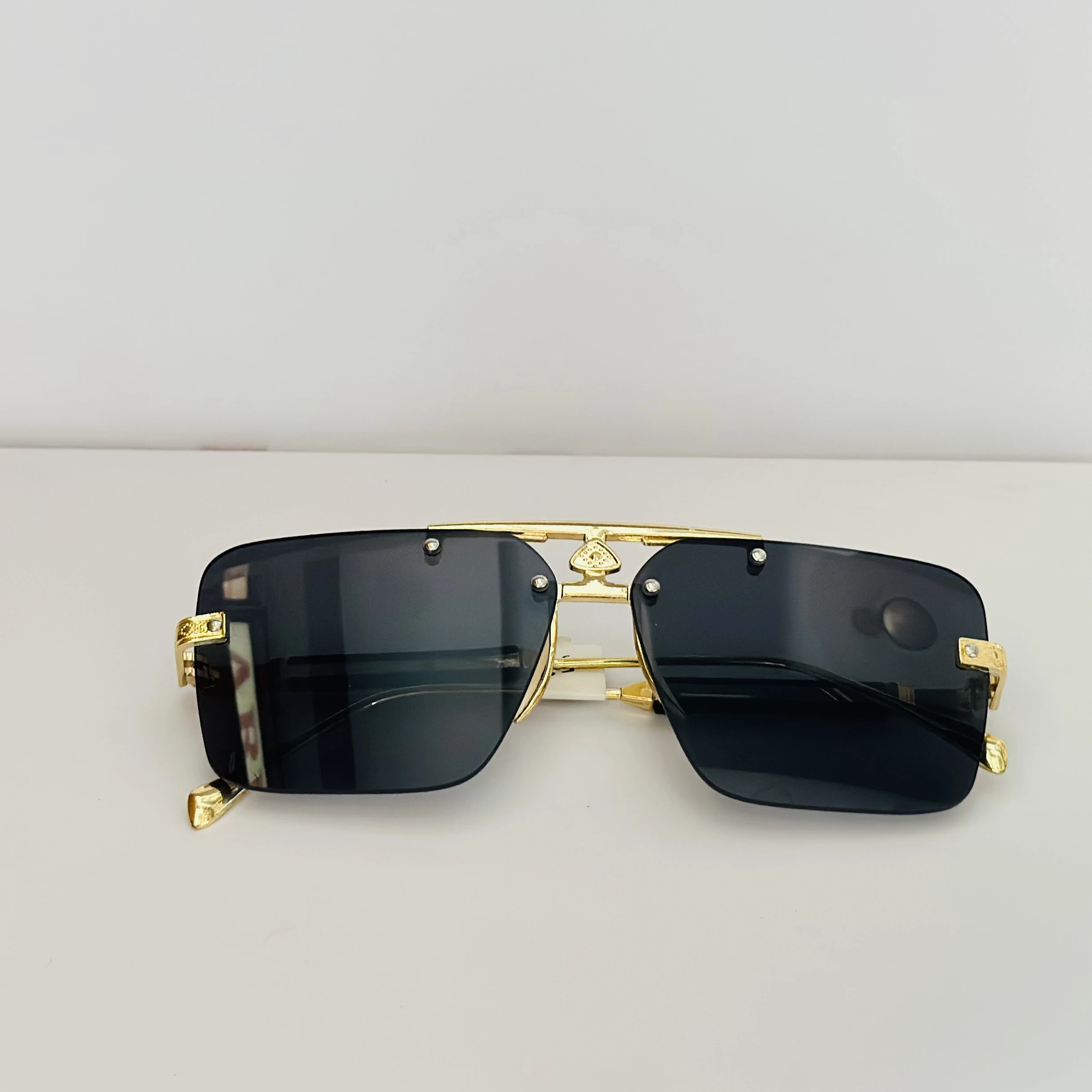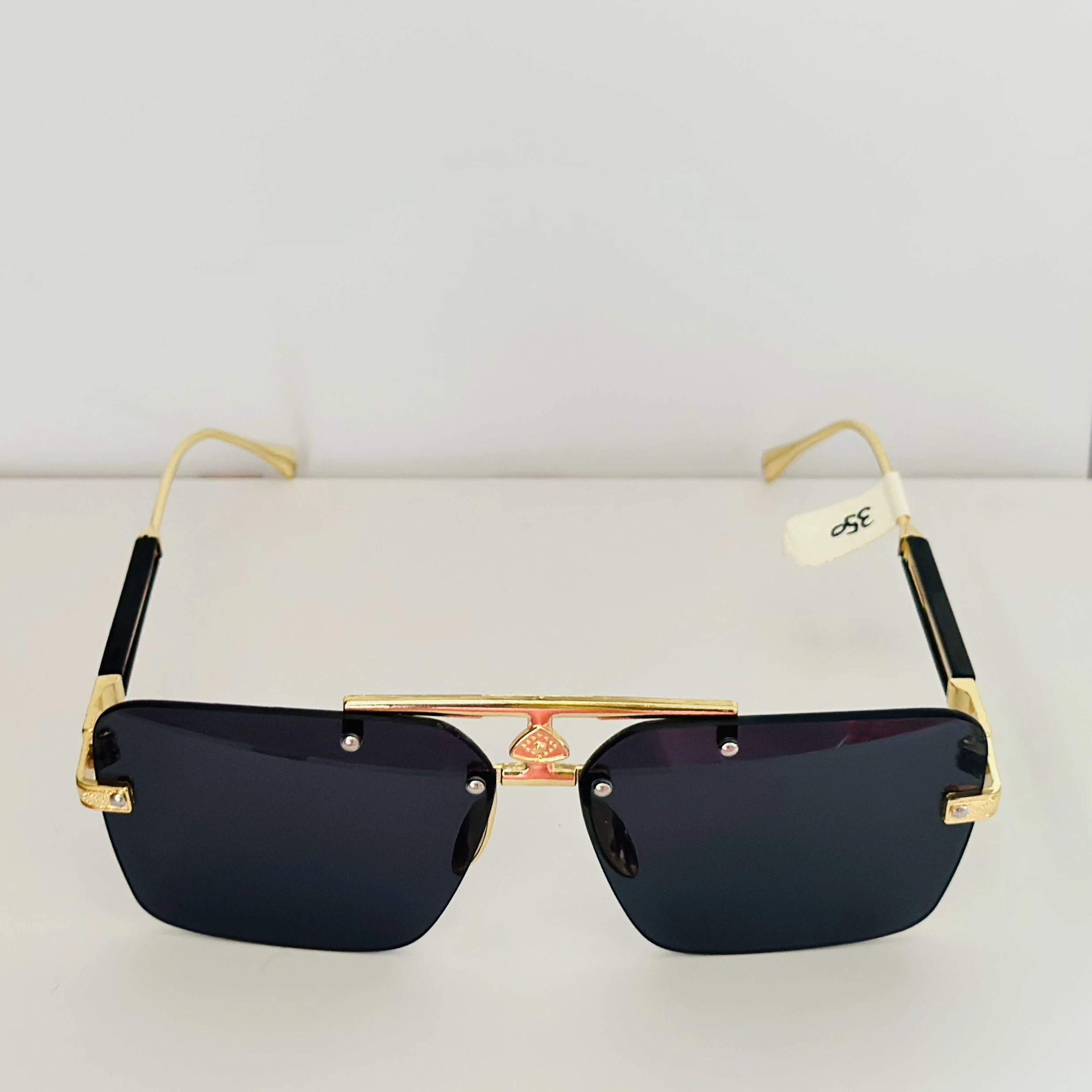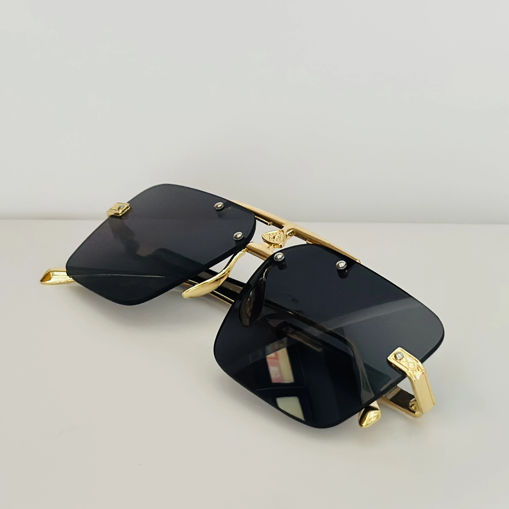 👉 Theme :- Maybach square gold-framed sunglasses with black lenses.