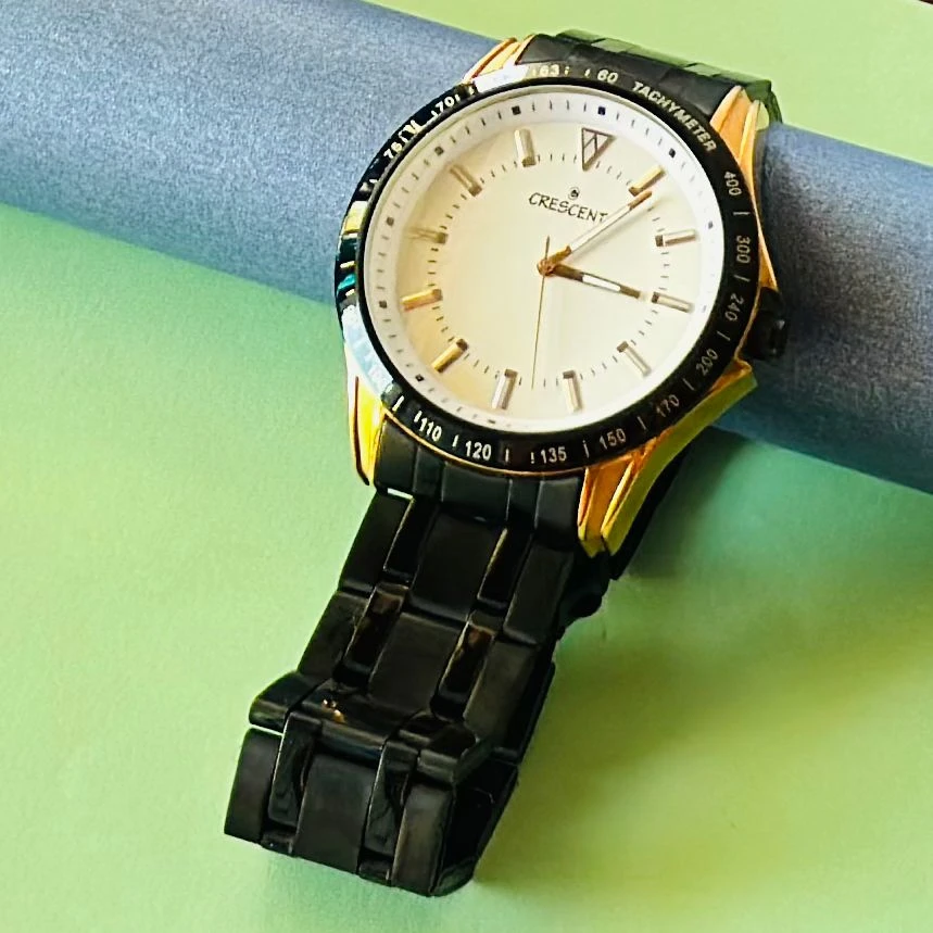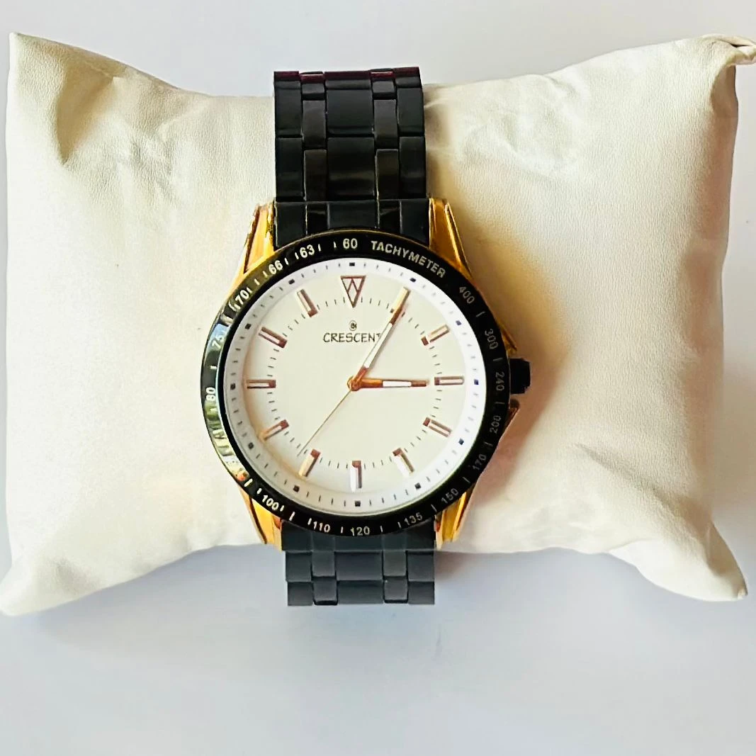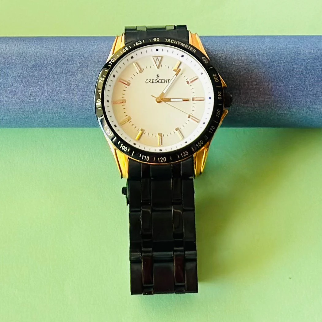👉 Theme :- men's analog watch from the Crescent collection, likely by Guess.