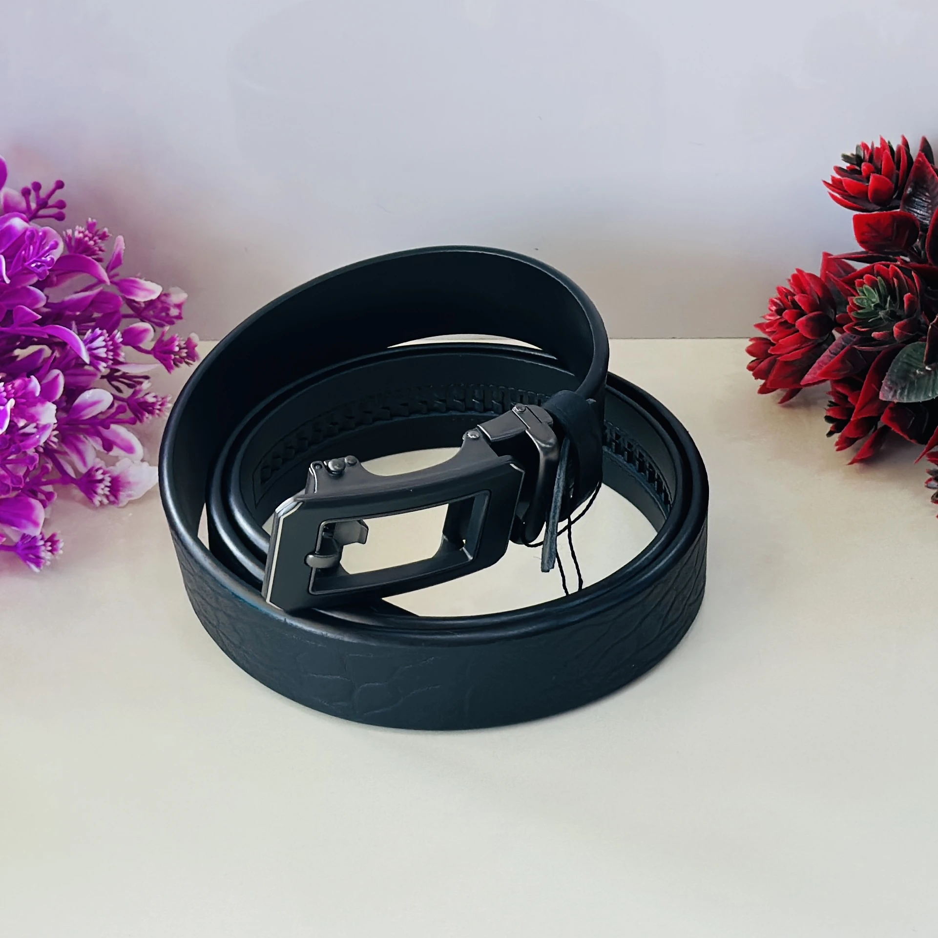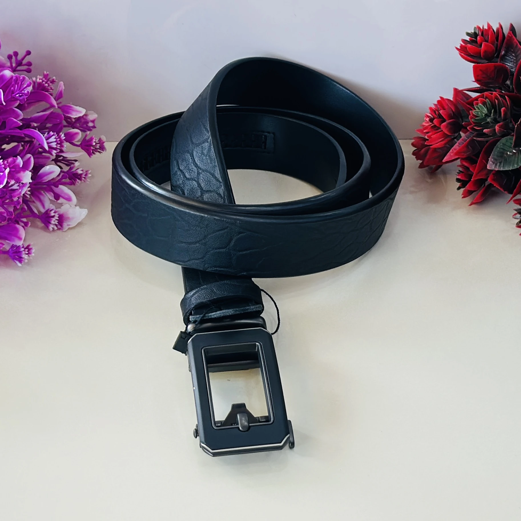 👉 Theme :- Black artificial leather auto-lock buckle belt for men.