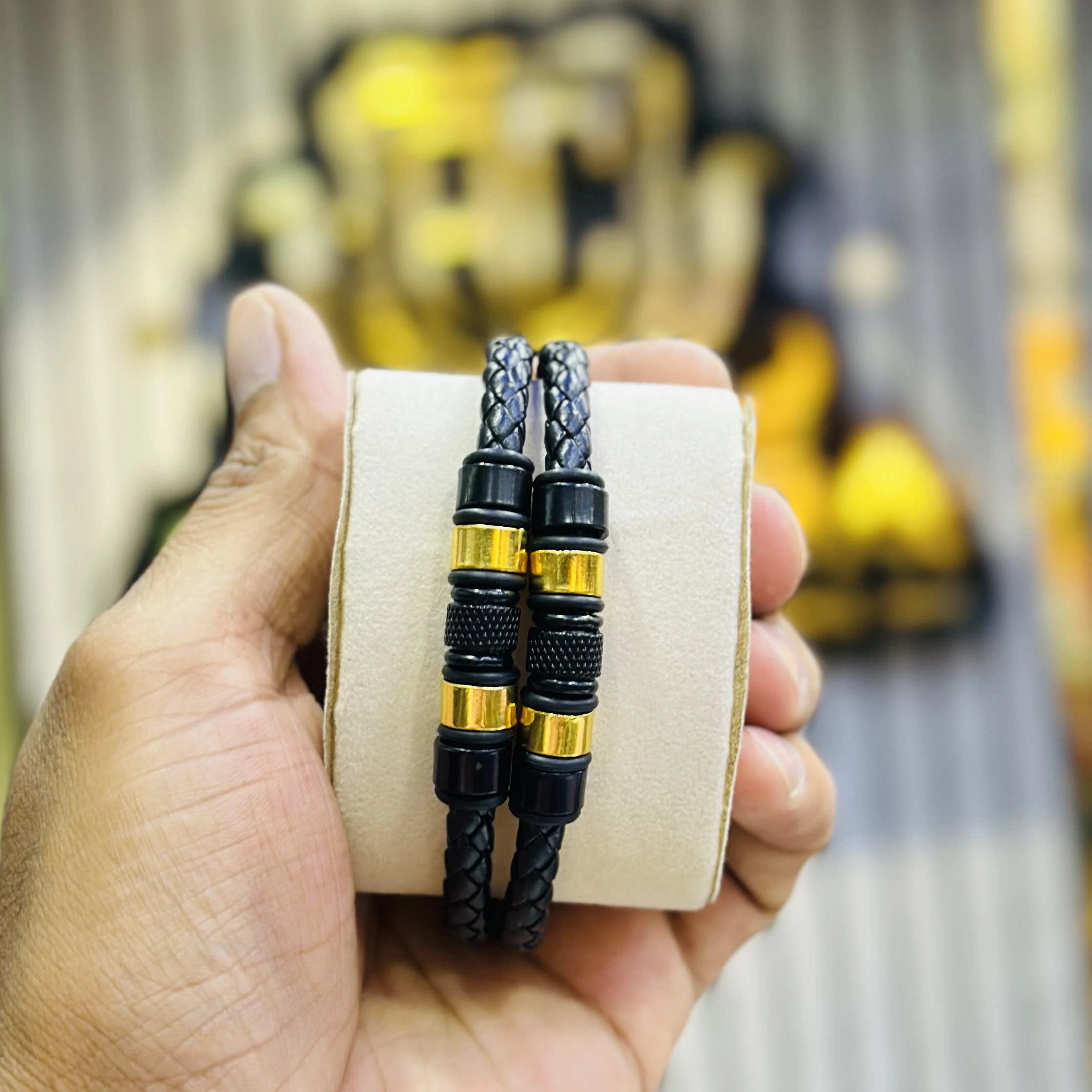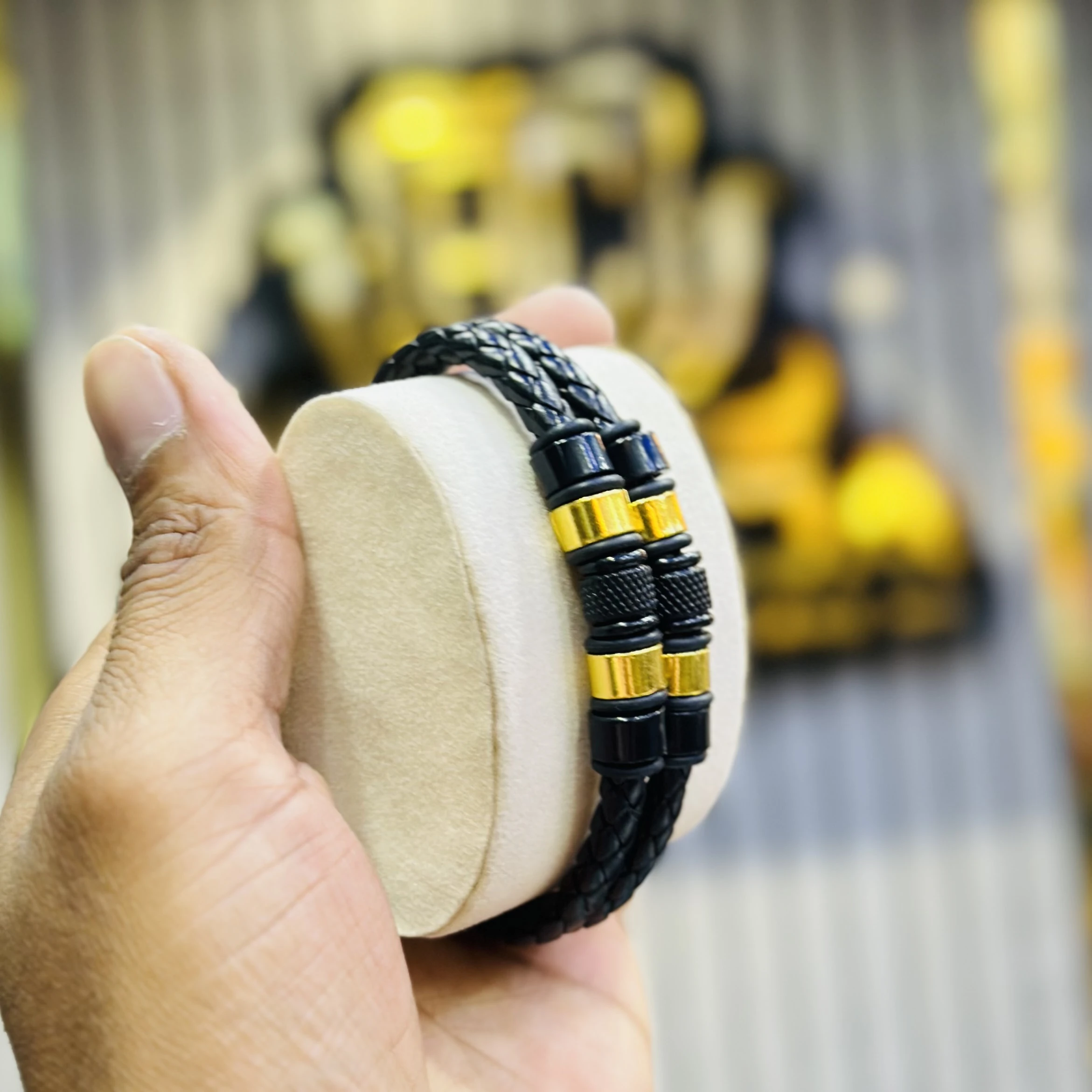 👉 Theme :- Men’s black braided leather and lava stone bead multi-layer bracelet