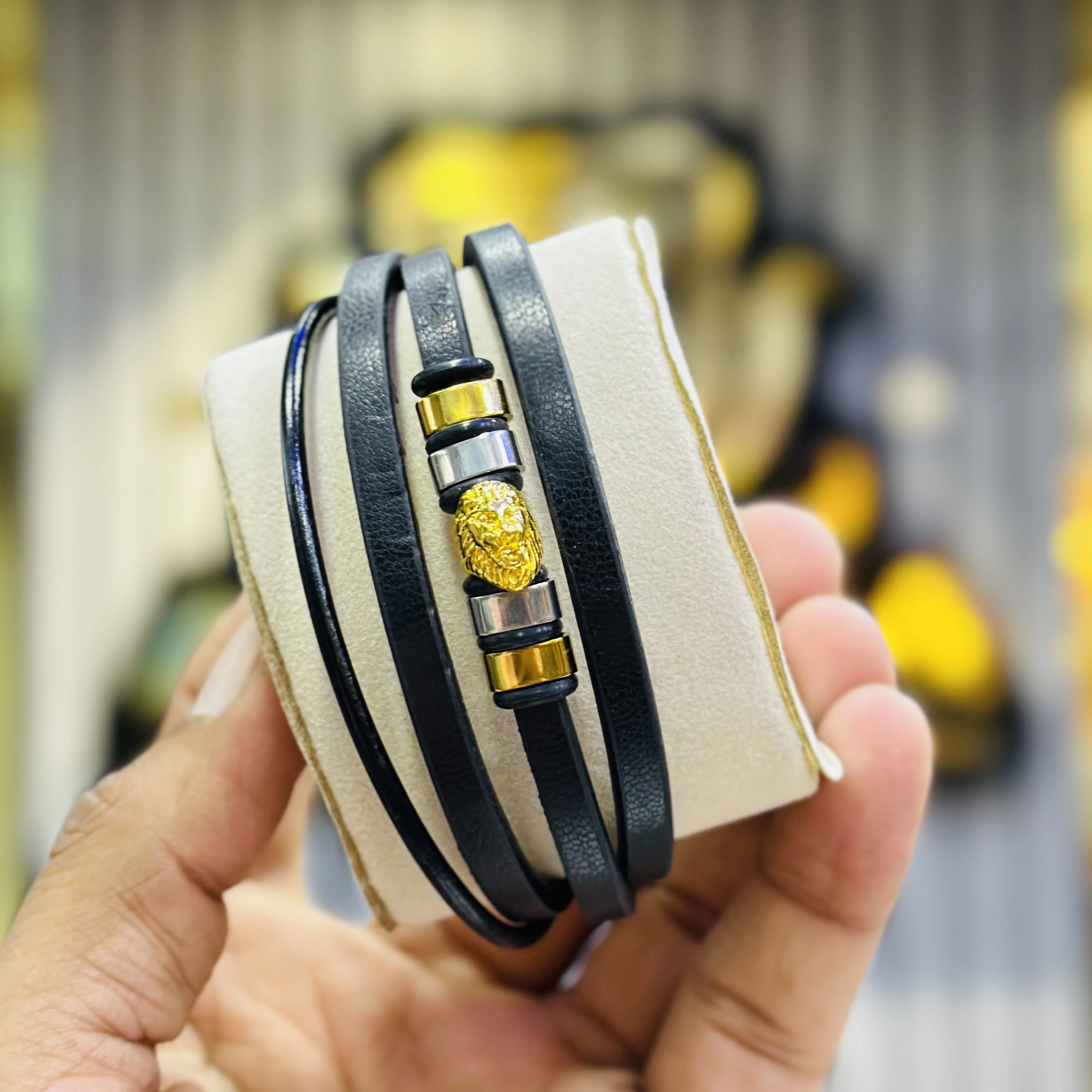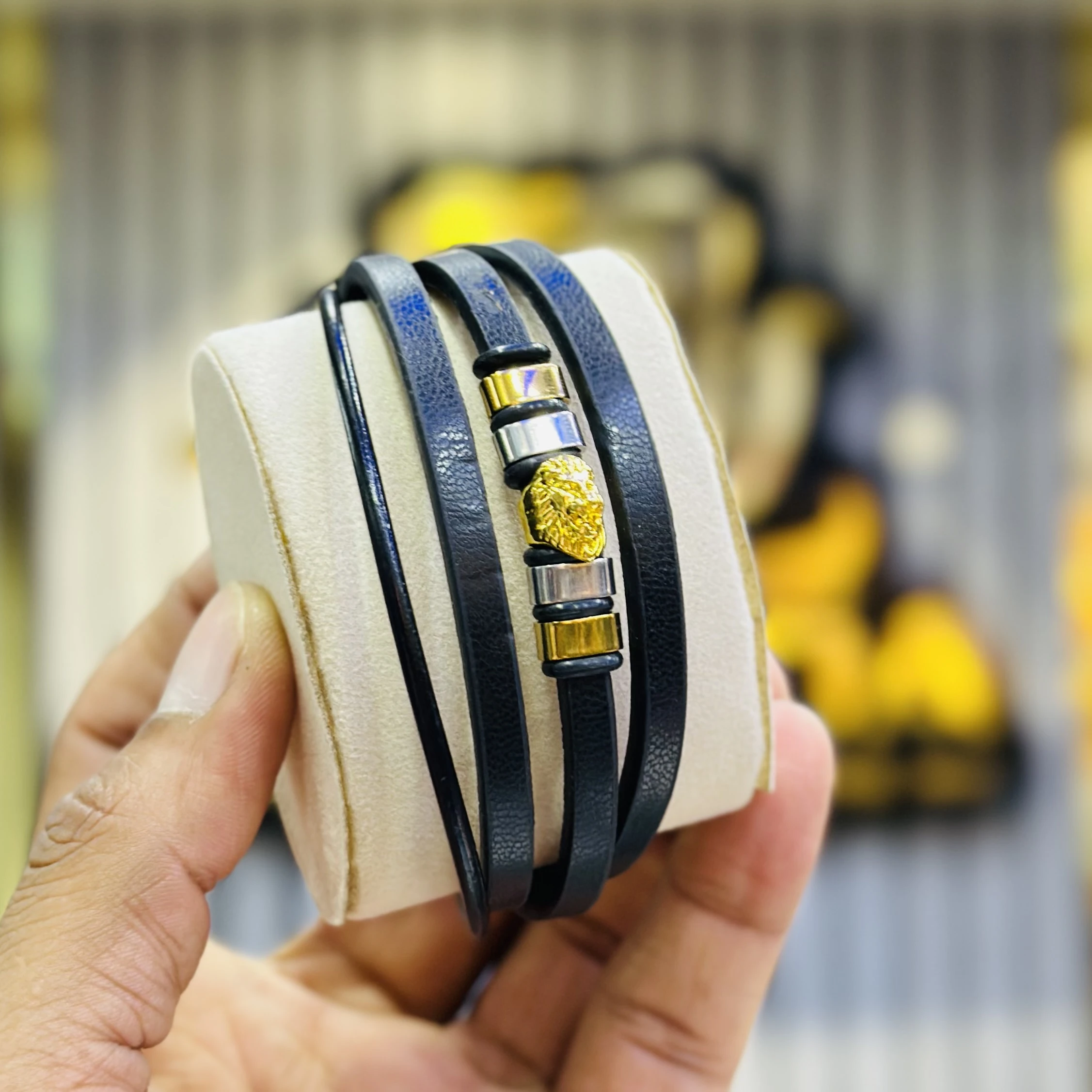 👉 Theme :- Men’s black braided leather and lava stone bead multi-layer bracelet