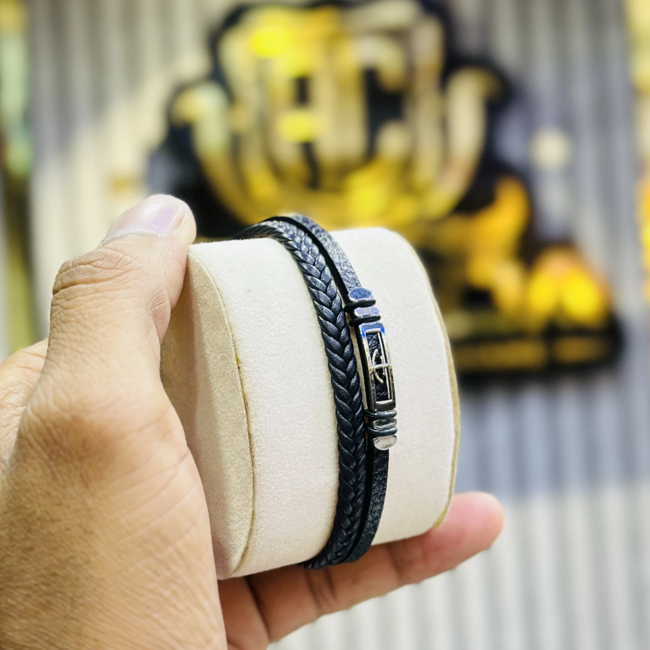 👉 Theme :- Men’s black braided leather and lava stone bead multi-layer bracelet