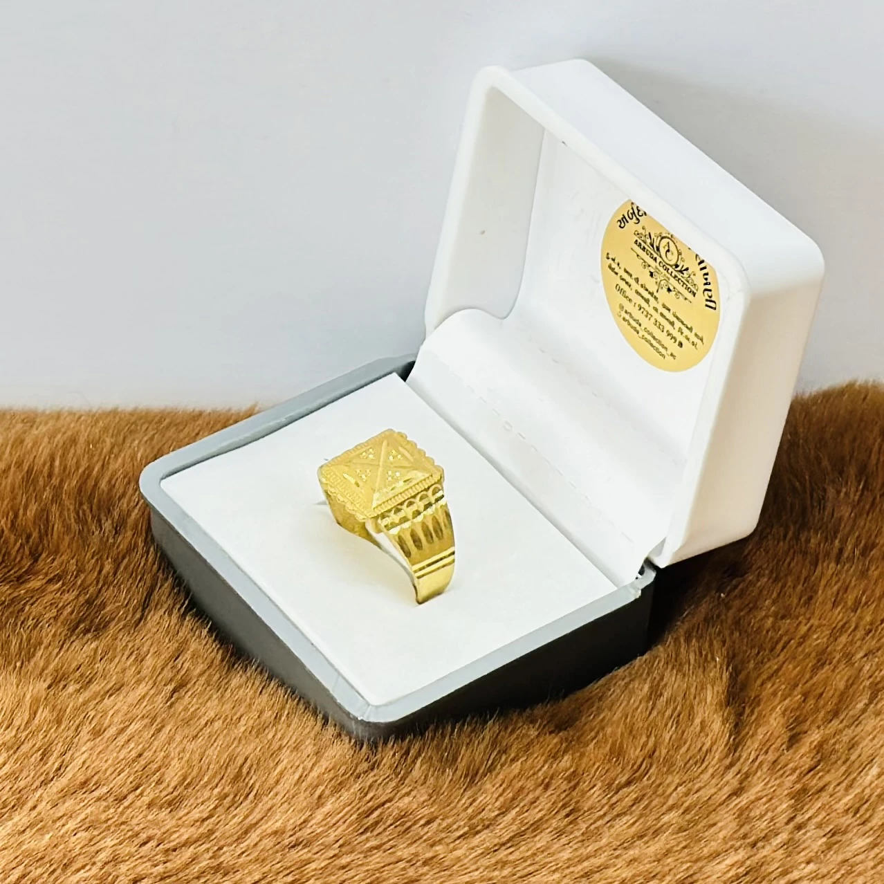 👉 Theme :- Gold plated men's ring with cubic zirconia stones.