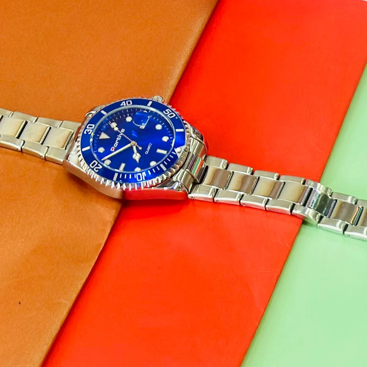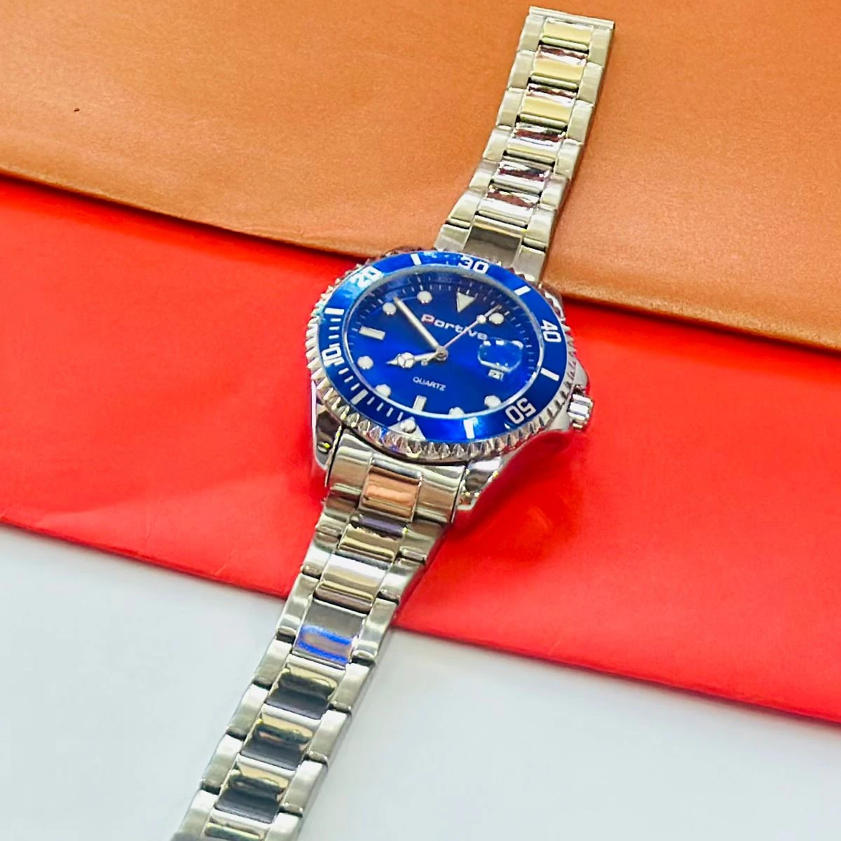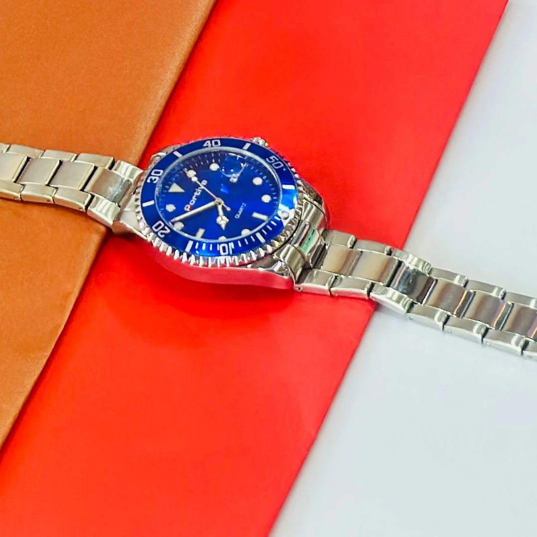 👉 Theme :- Men's Luminous Waterproof Quartz Watch with a blue dial and stainless steel band