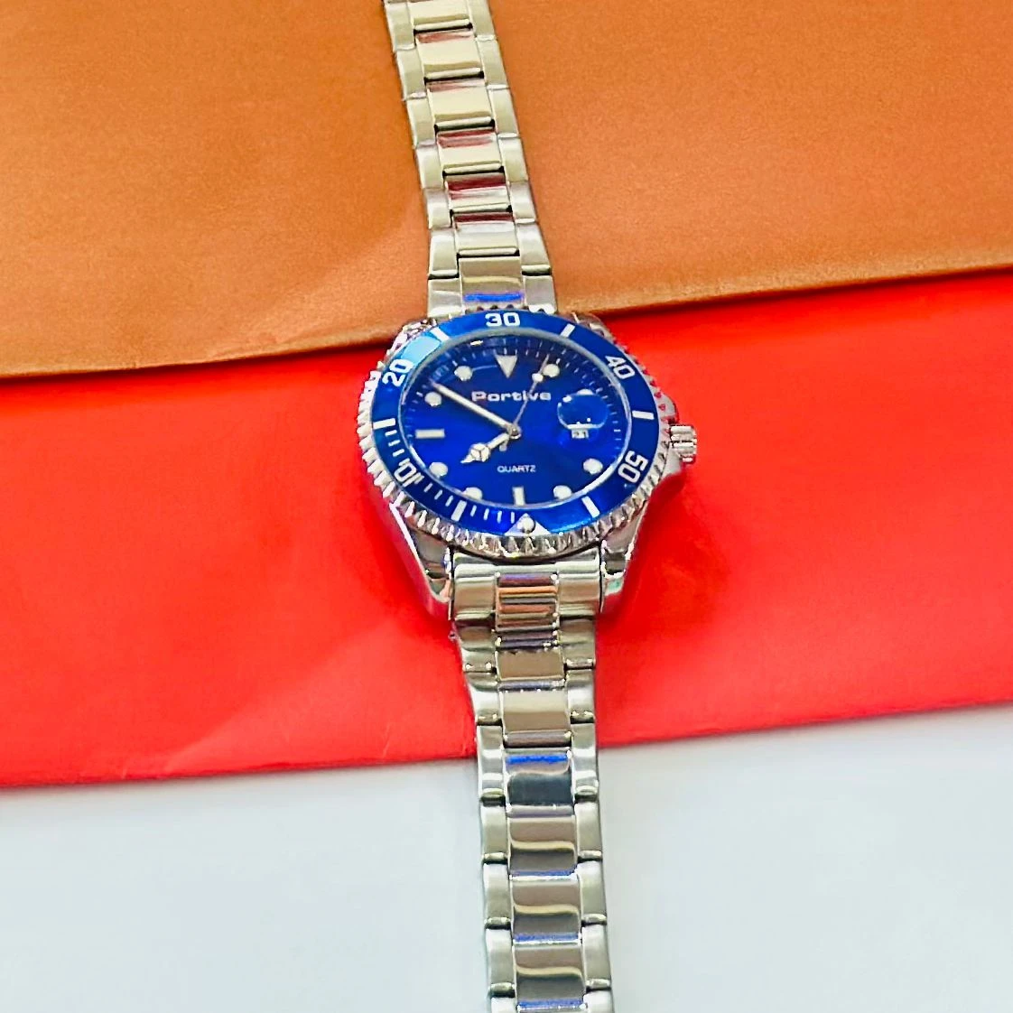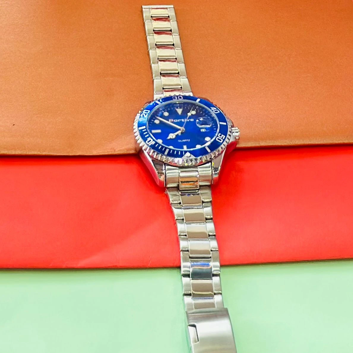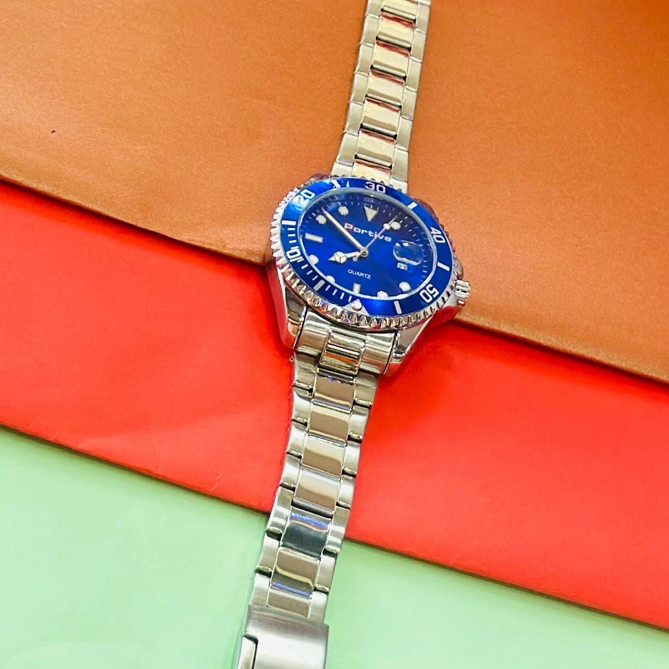 👉 Theme :- Men's Luminous Waterproof Quartz Watch with a blue dial and stainless steel band