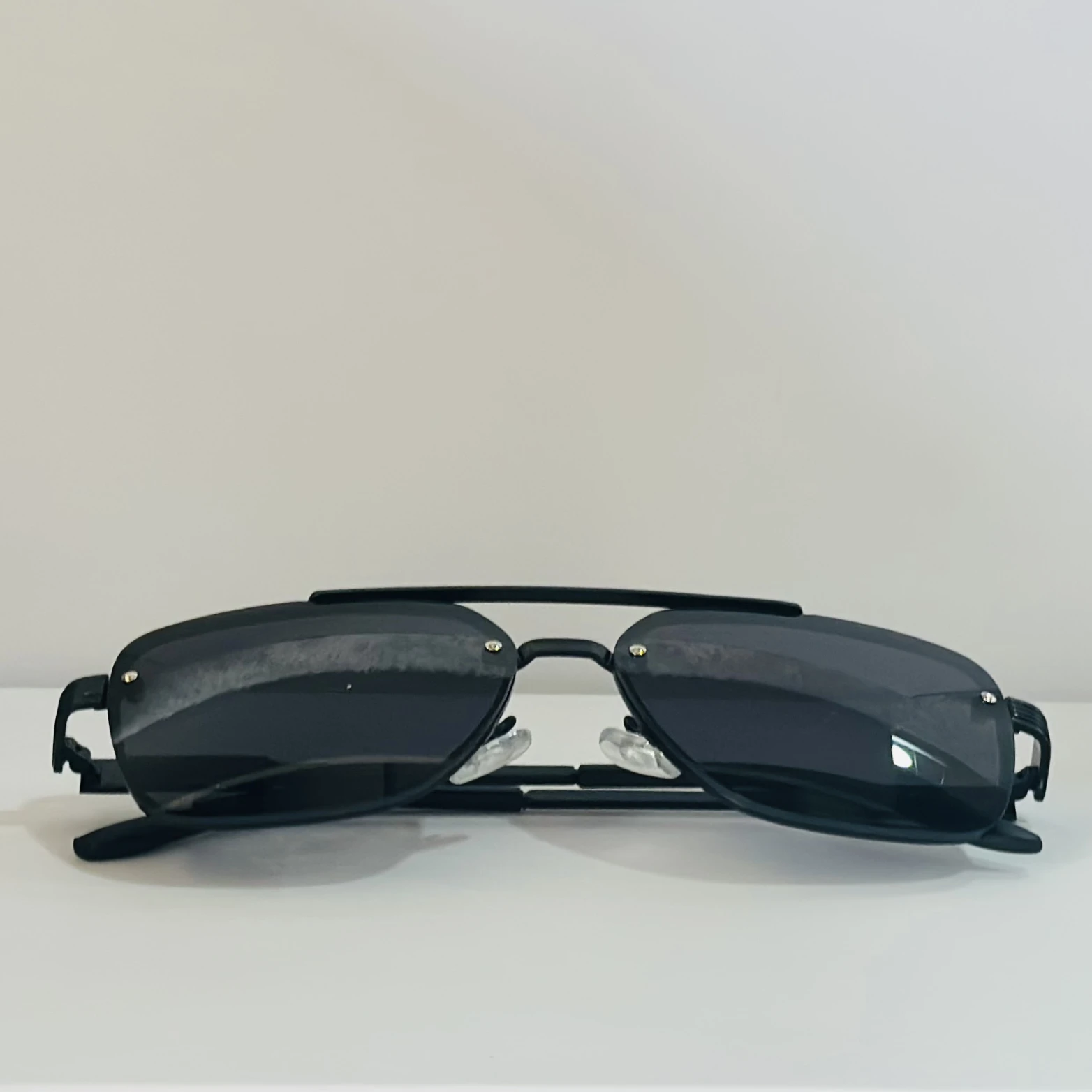 👉 Theme :- Mens Luxury Rimless Rectangle Mafia Metal Rim Racer Mob Sunglasses in black