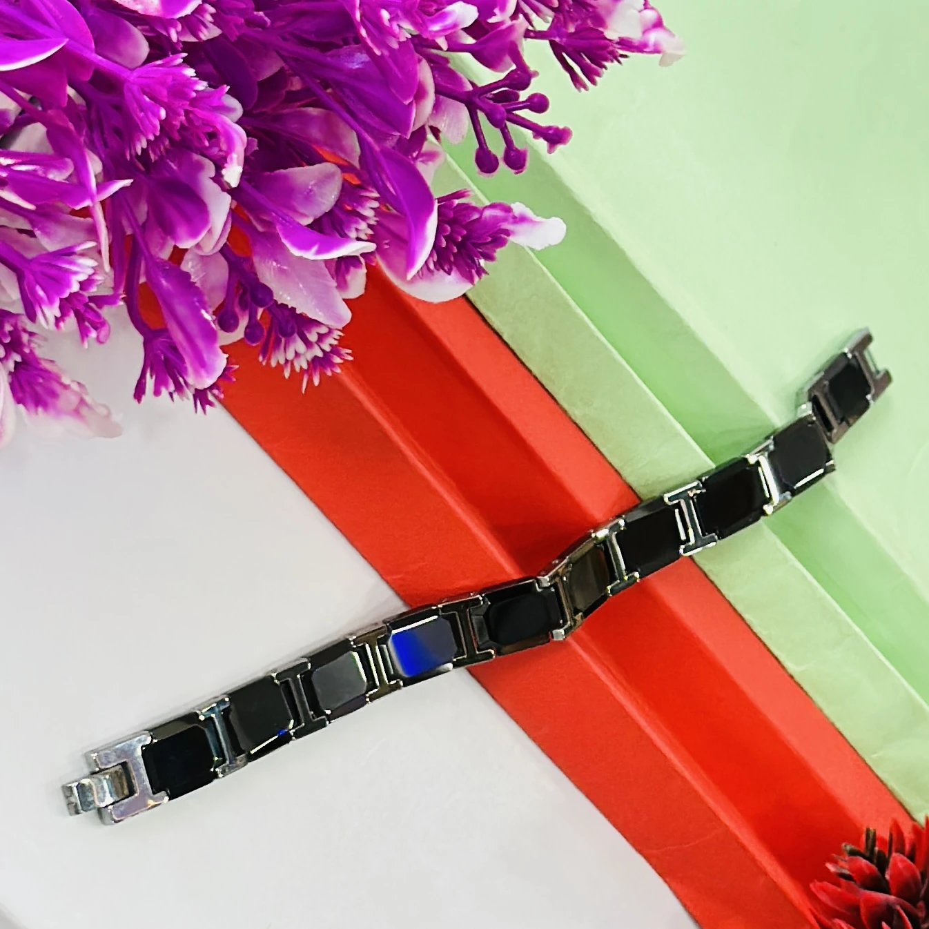 👉Theme :- men's stainless steel and black ceramic (or rubber) link bracelet.
