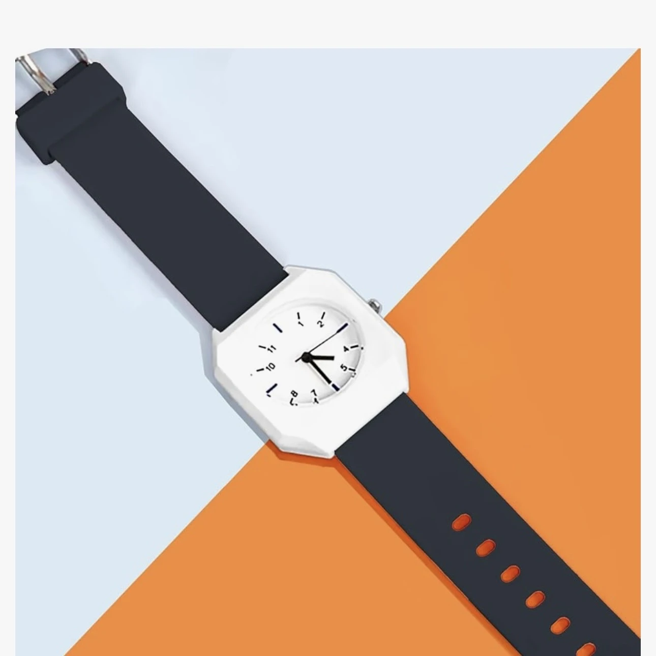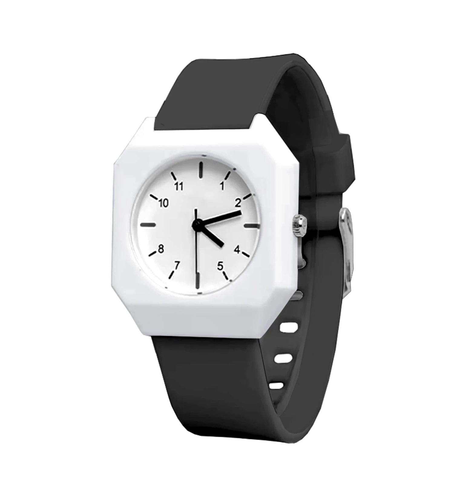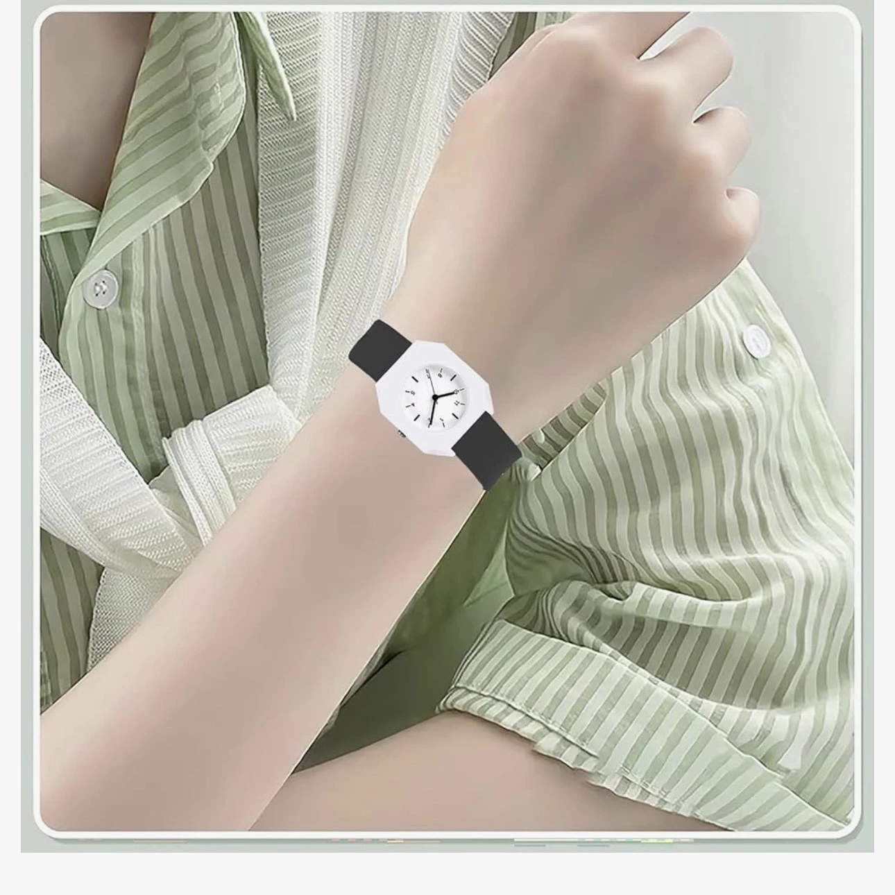 👉 Theme :- Mingrui Unisex Analog Quartz Watch with a white case and black strap.