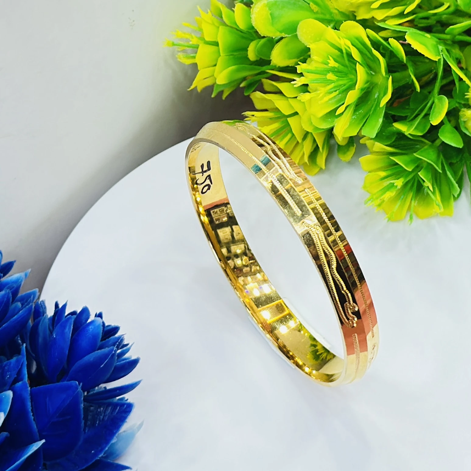 👉 Theme :- Gold plated stainless steel men's Punjabi Kada bracelet.